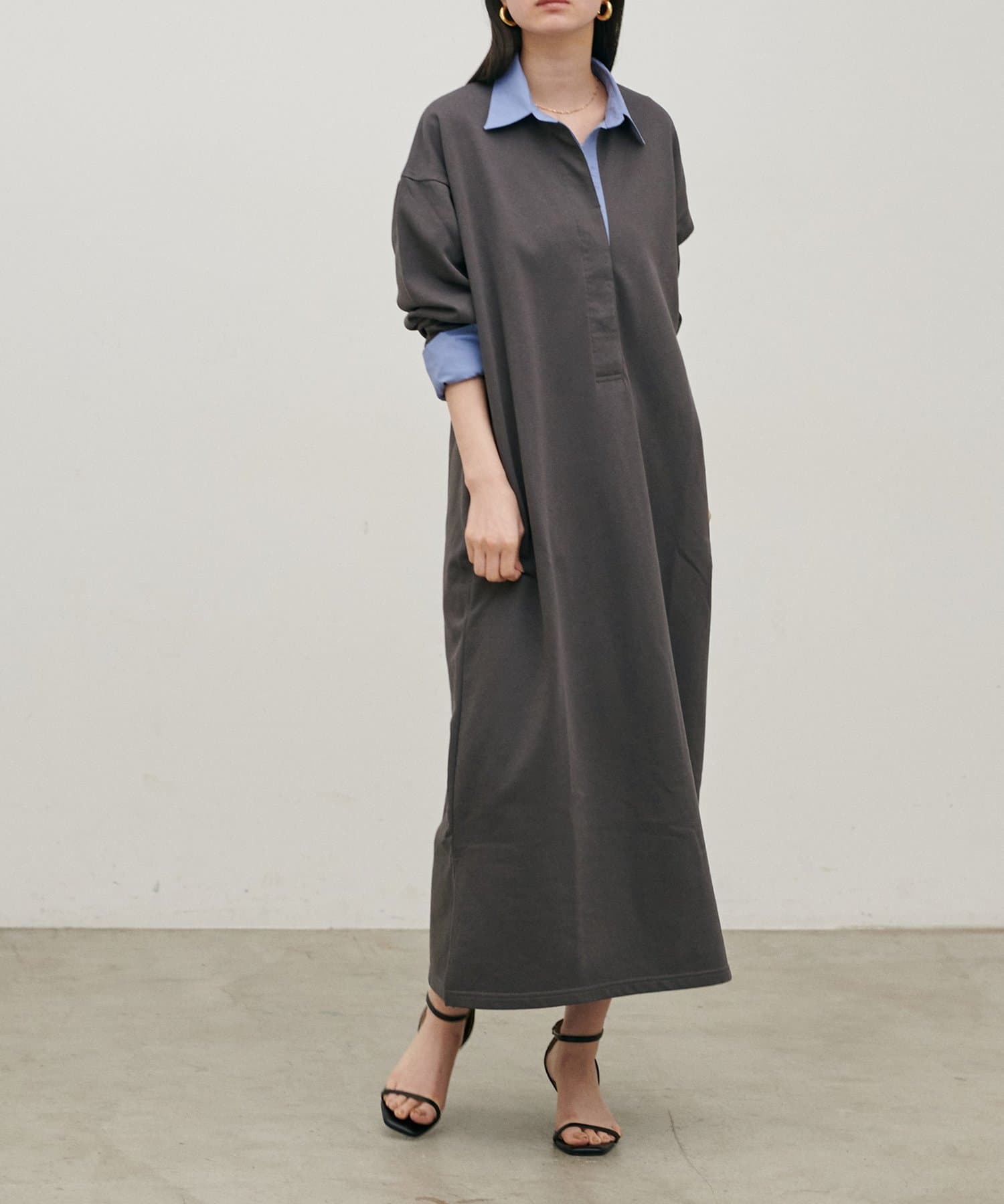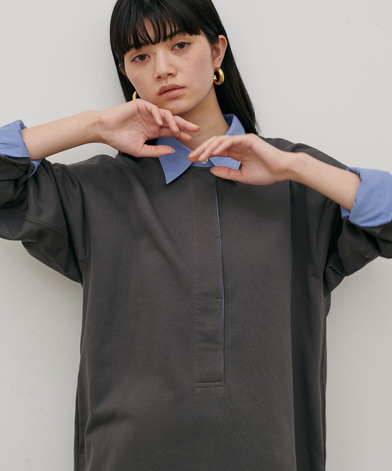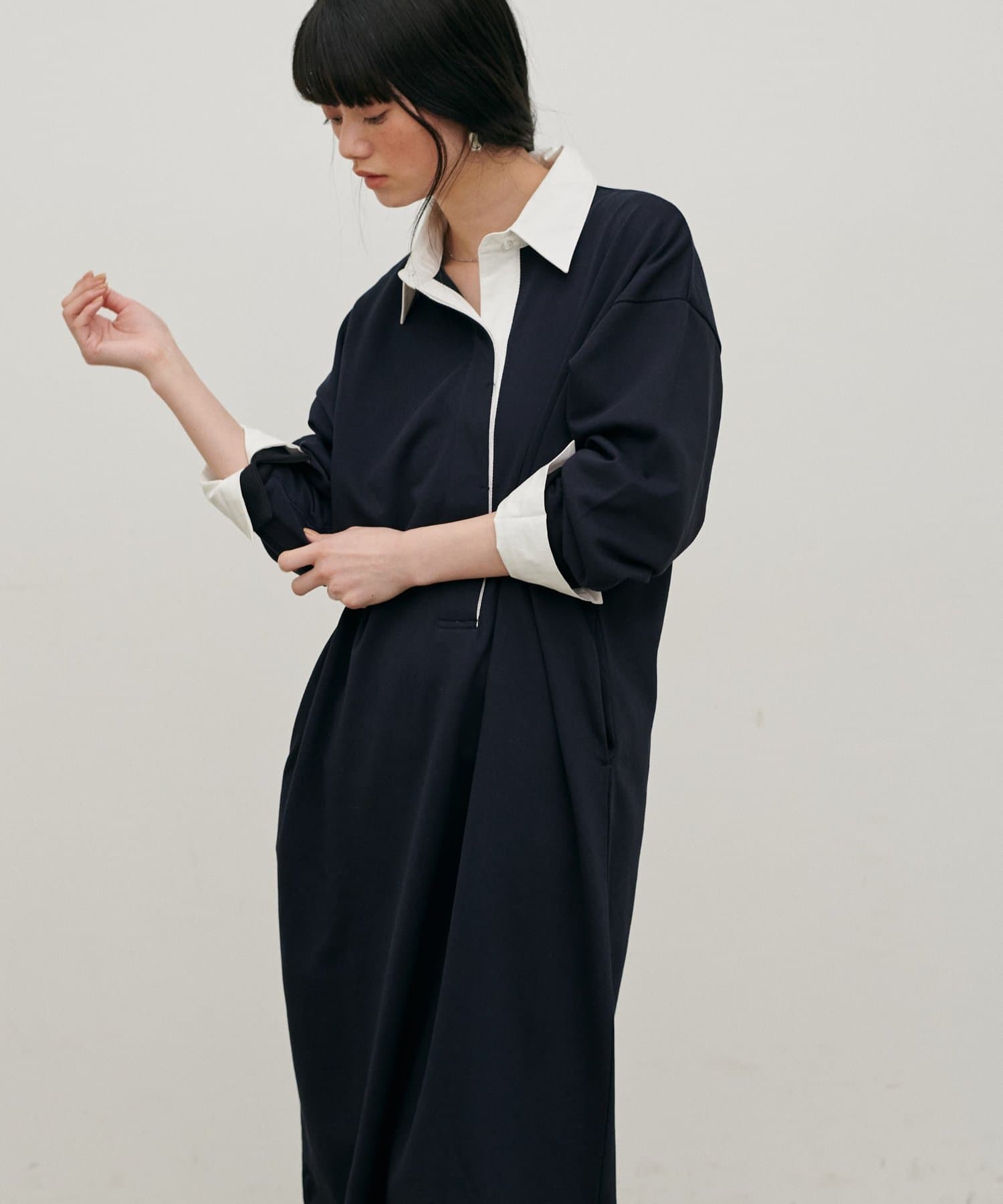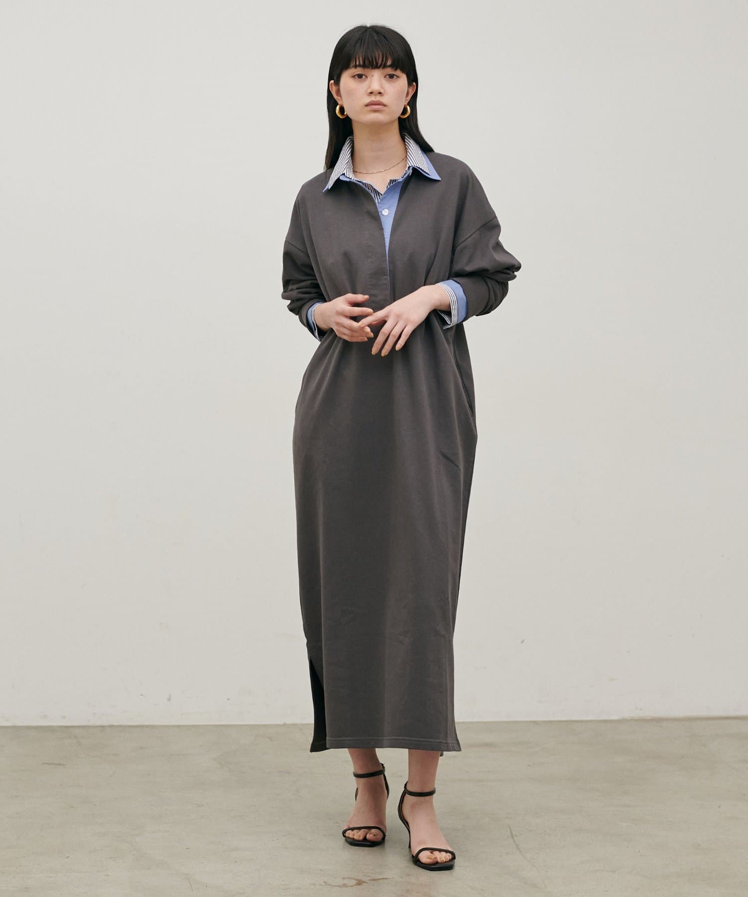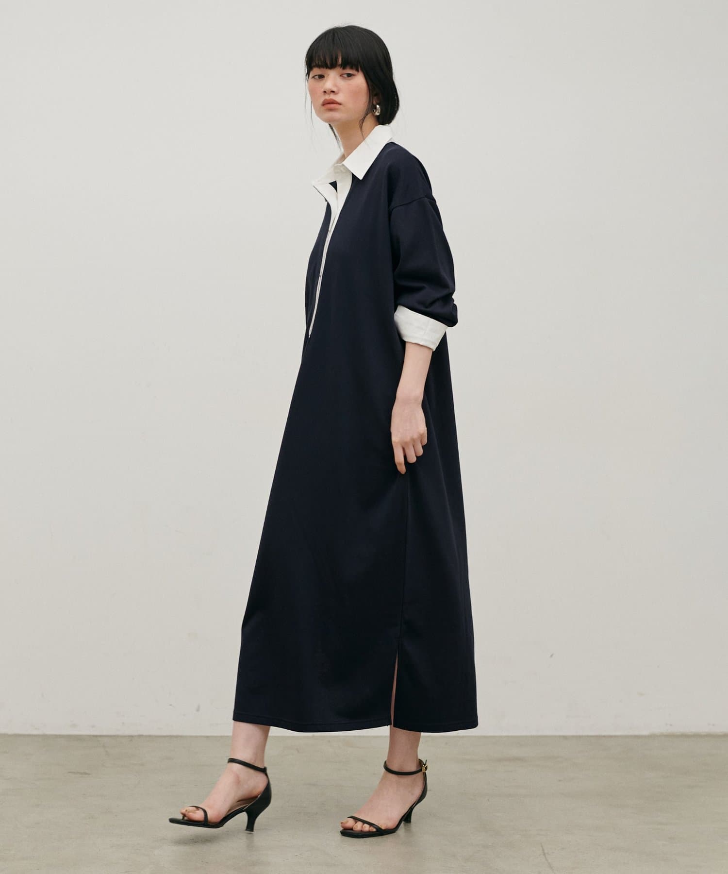 ポロシャツのディテールを取り入れた、リラックス感のあるスウェットカットソーワンピース。