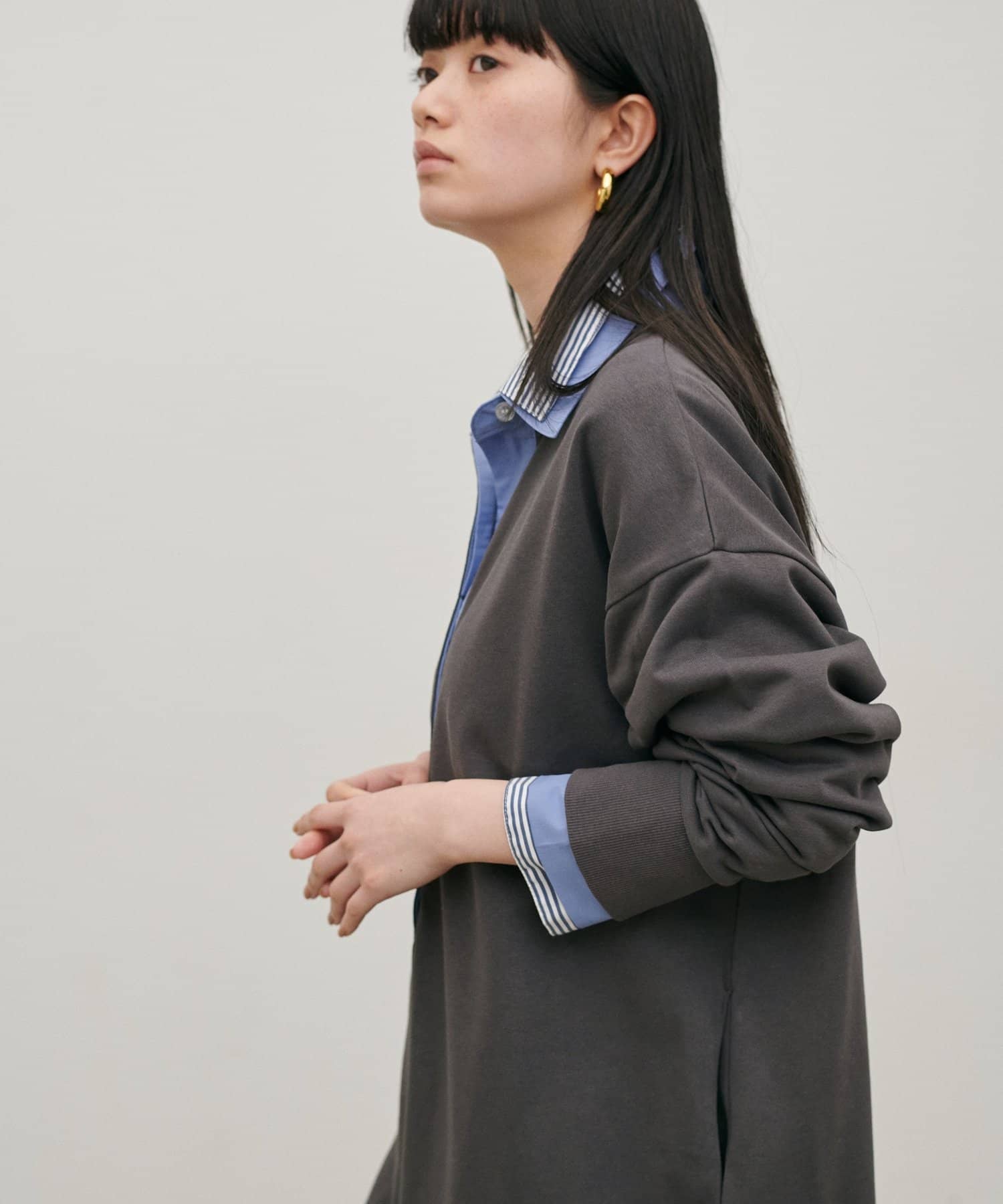 襟付きデザインが程よくきちんと感をプラスし、カジュアルになりすぎない大人のバランスに仕上げました。