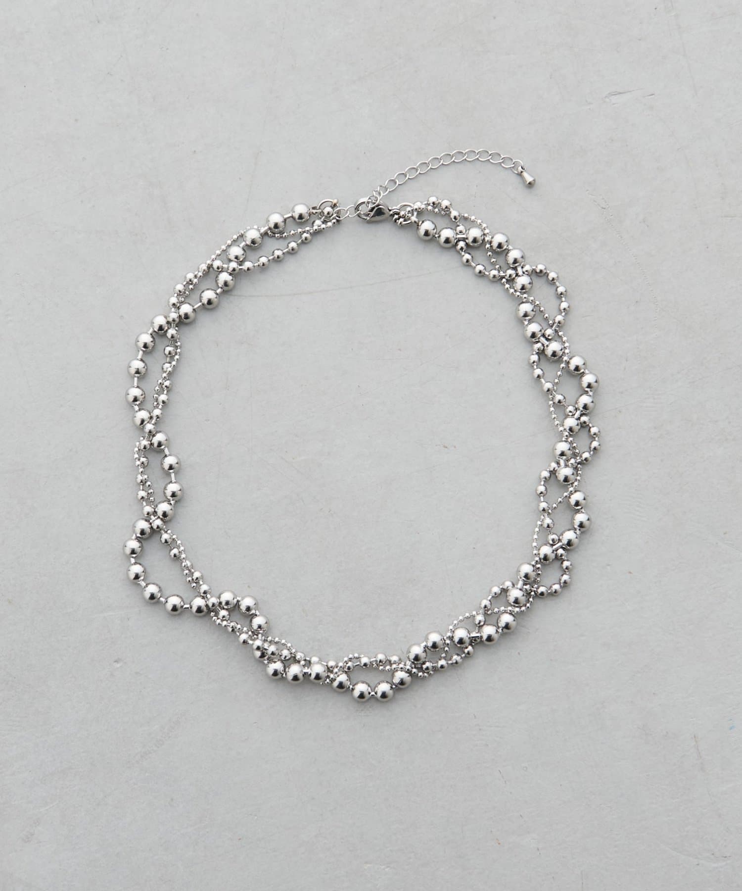 異なるサイズのボールをつなぎ合わせたニュアンス感のあるチェーンネックレス。