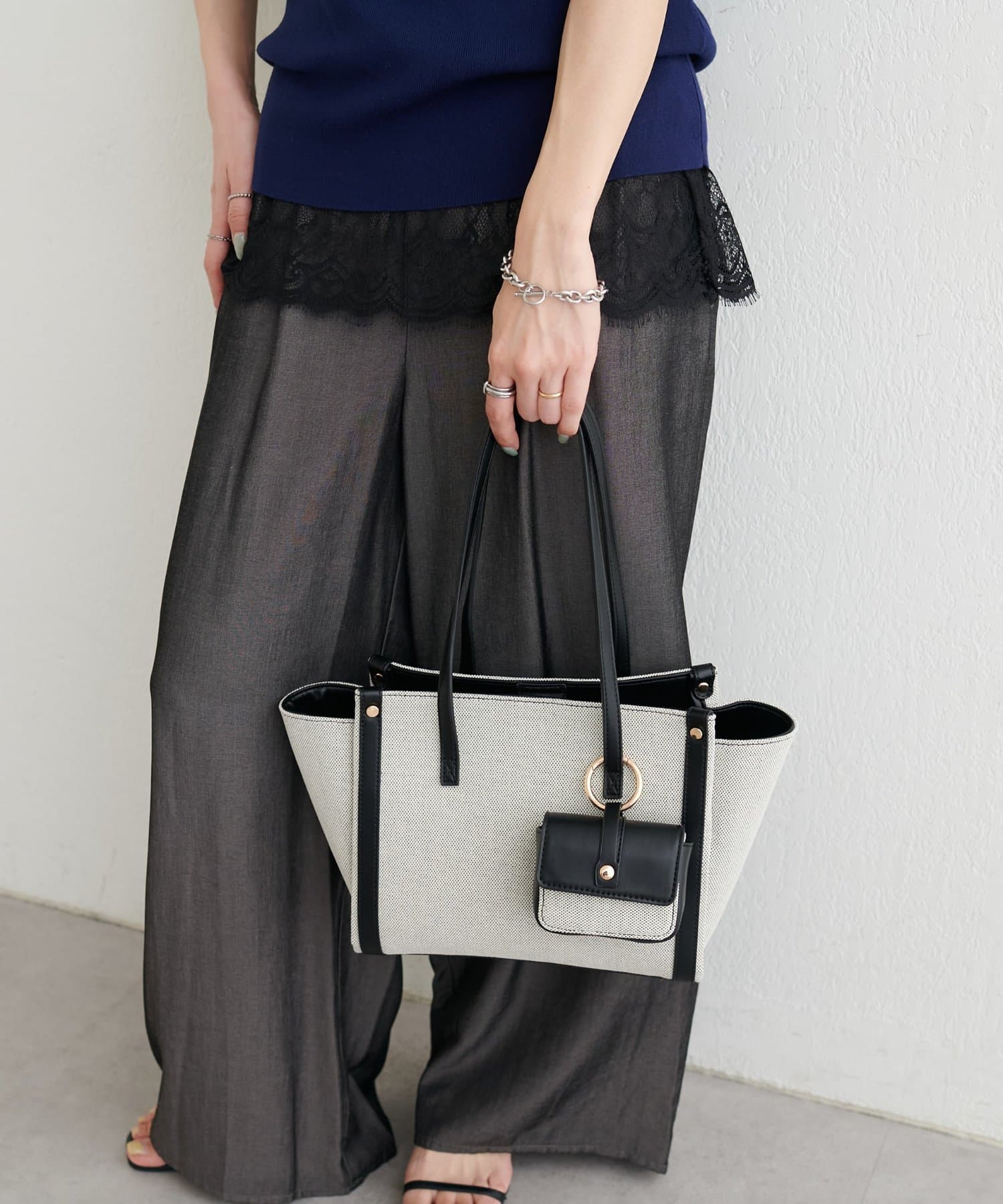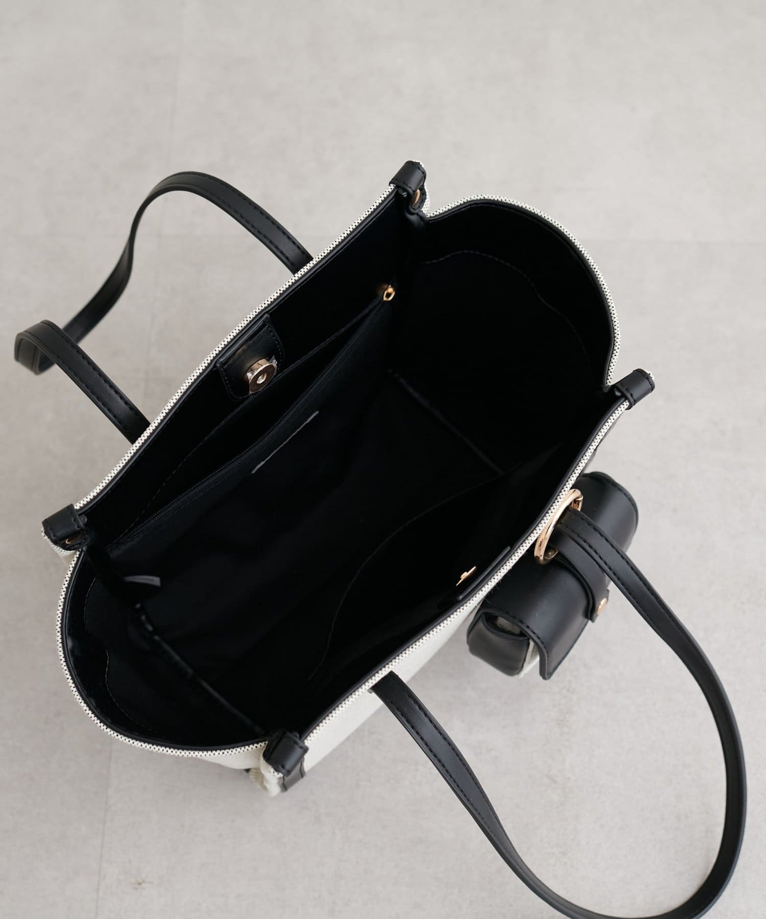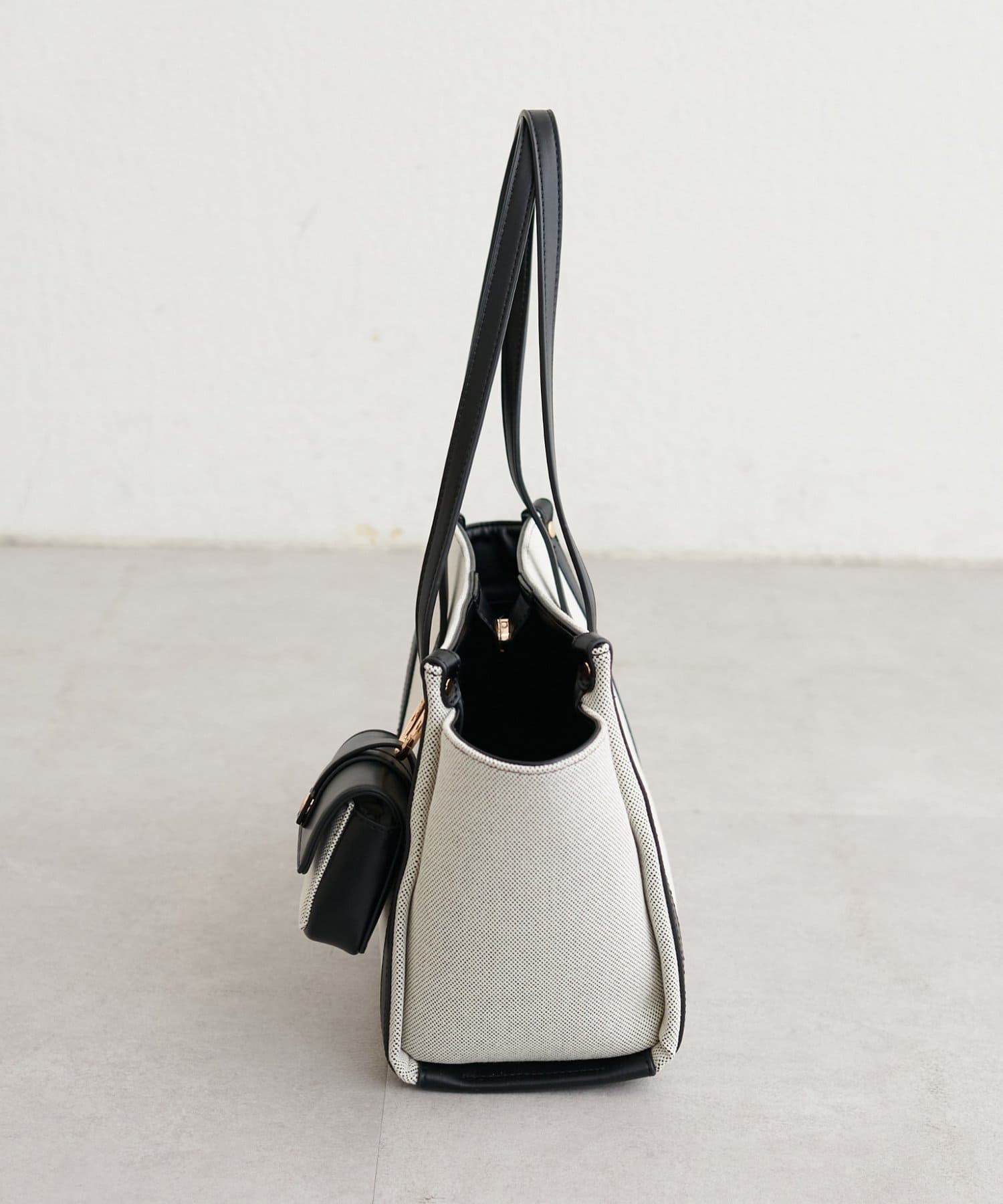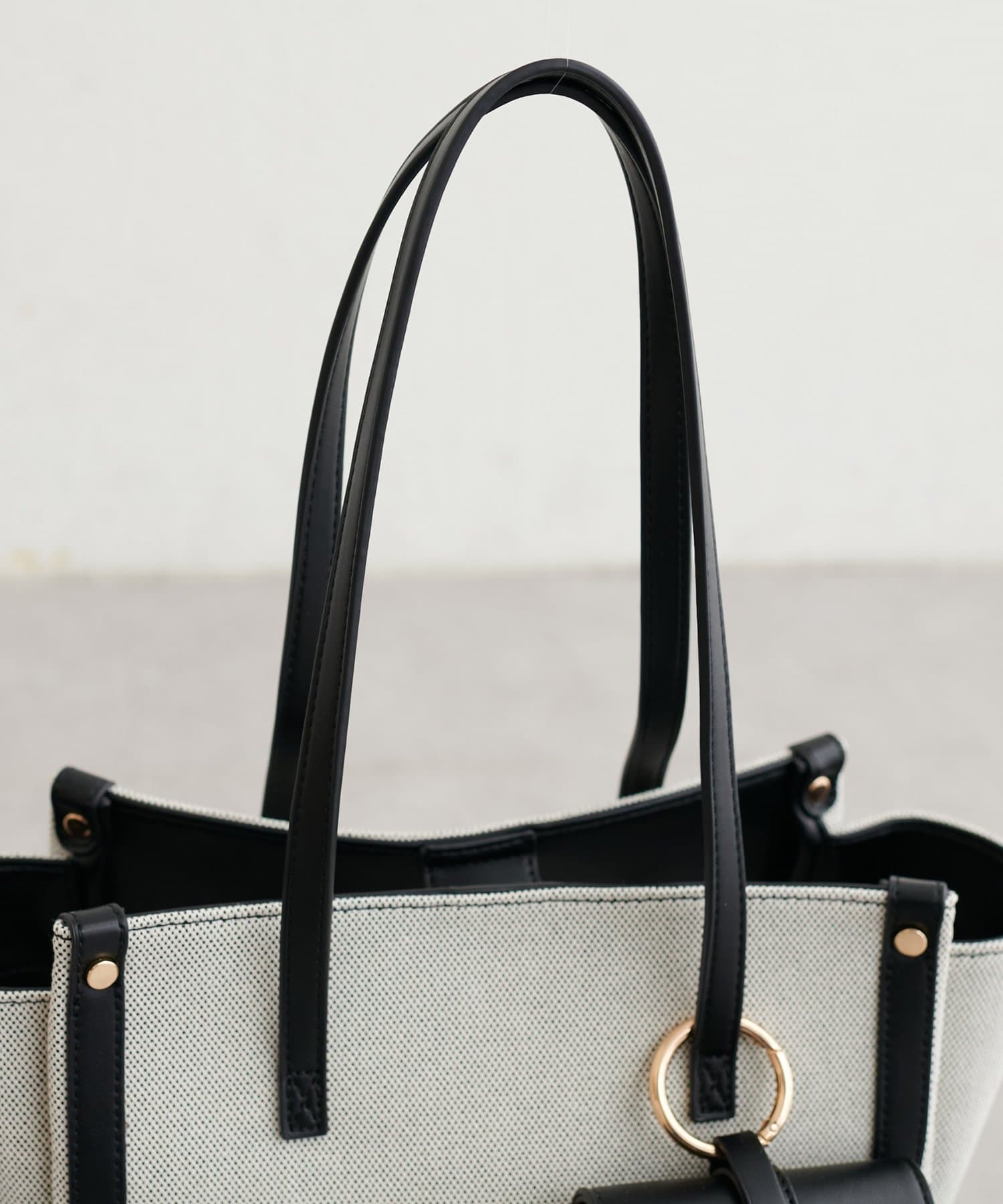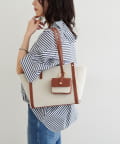 バイカラーデザインが目を惹く、上品なトートバッグ。