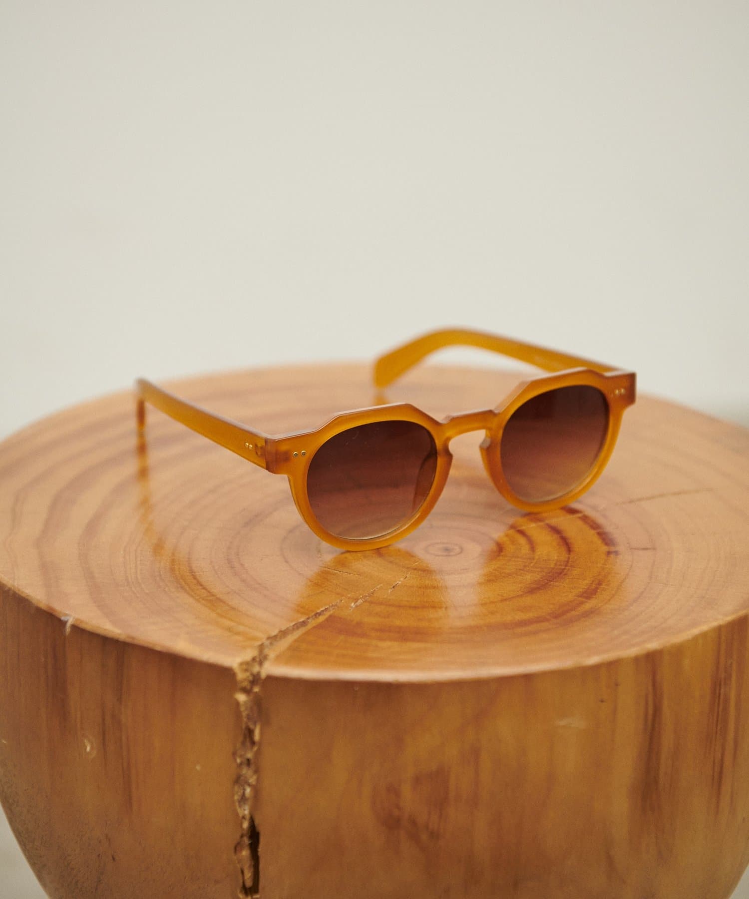 グラデーションのカラーレンズが、強くなりすぎずこなれた印象に。