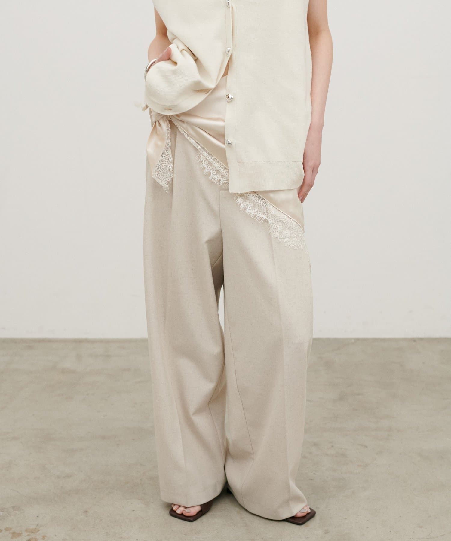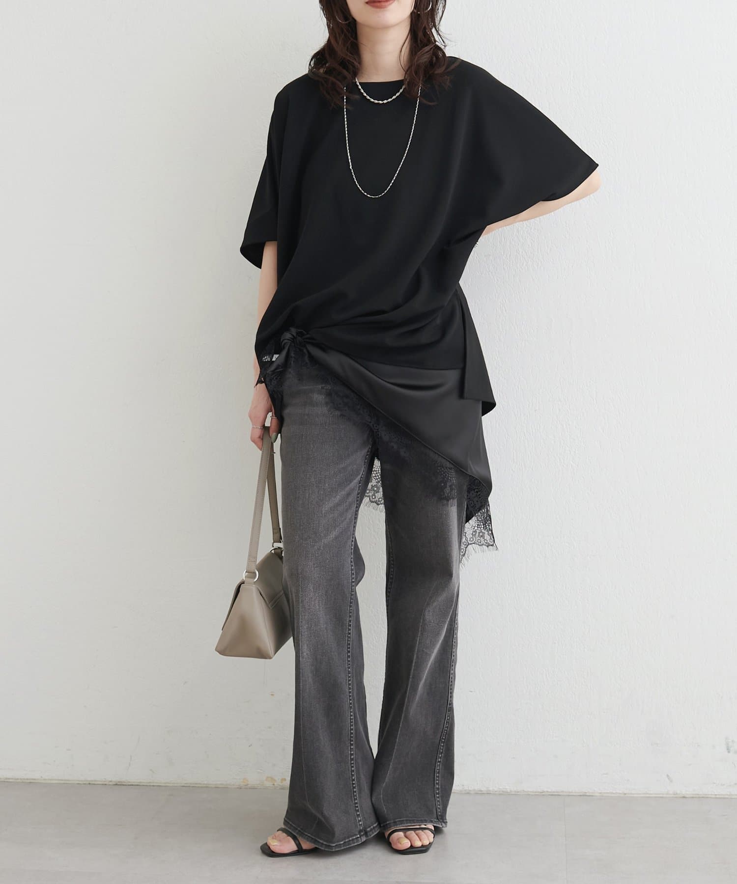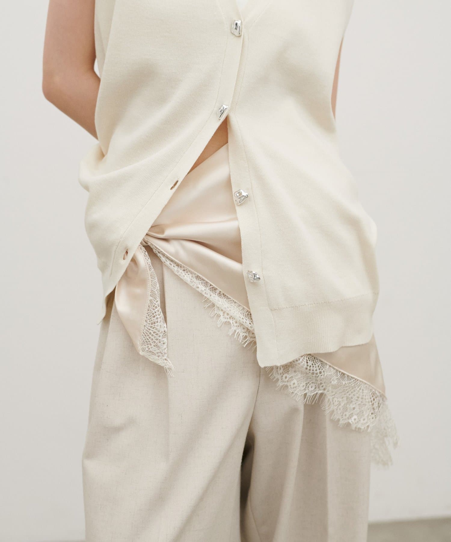 縁に施されたレースディテールがさりげないアクセントとなり、シンプルながらも華やかな印象に。