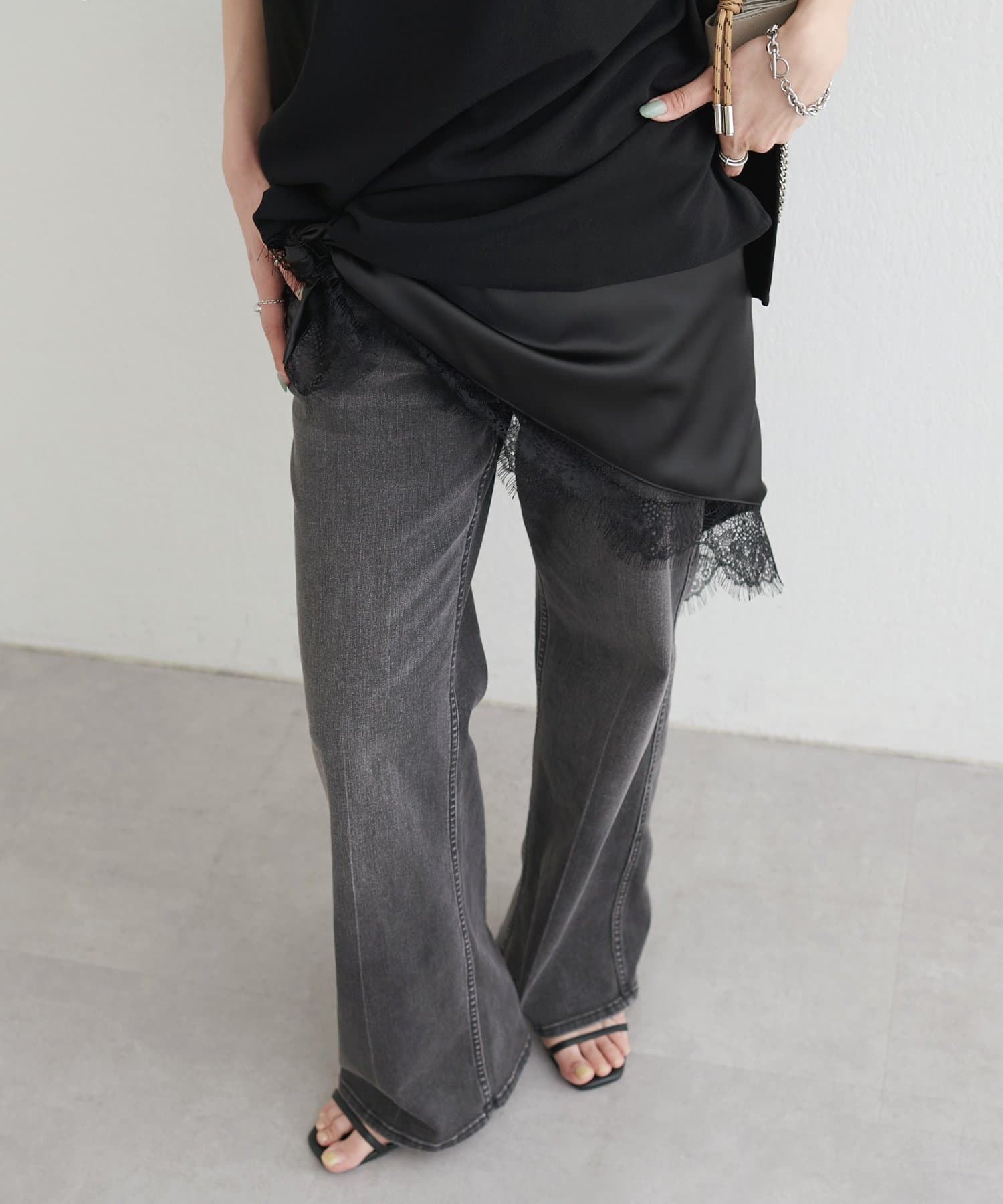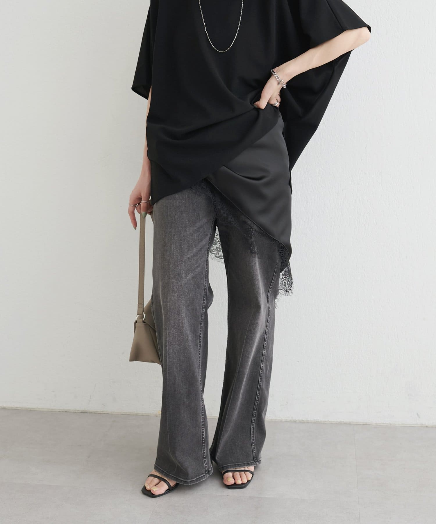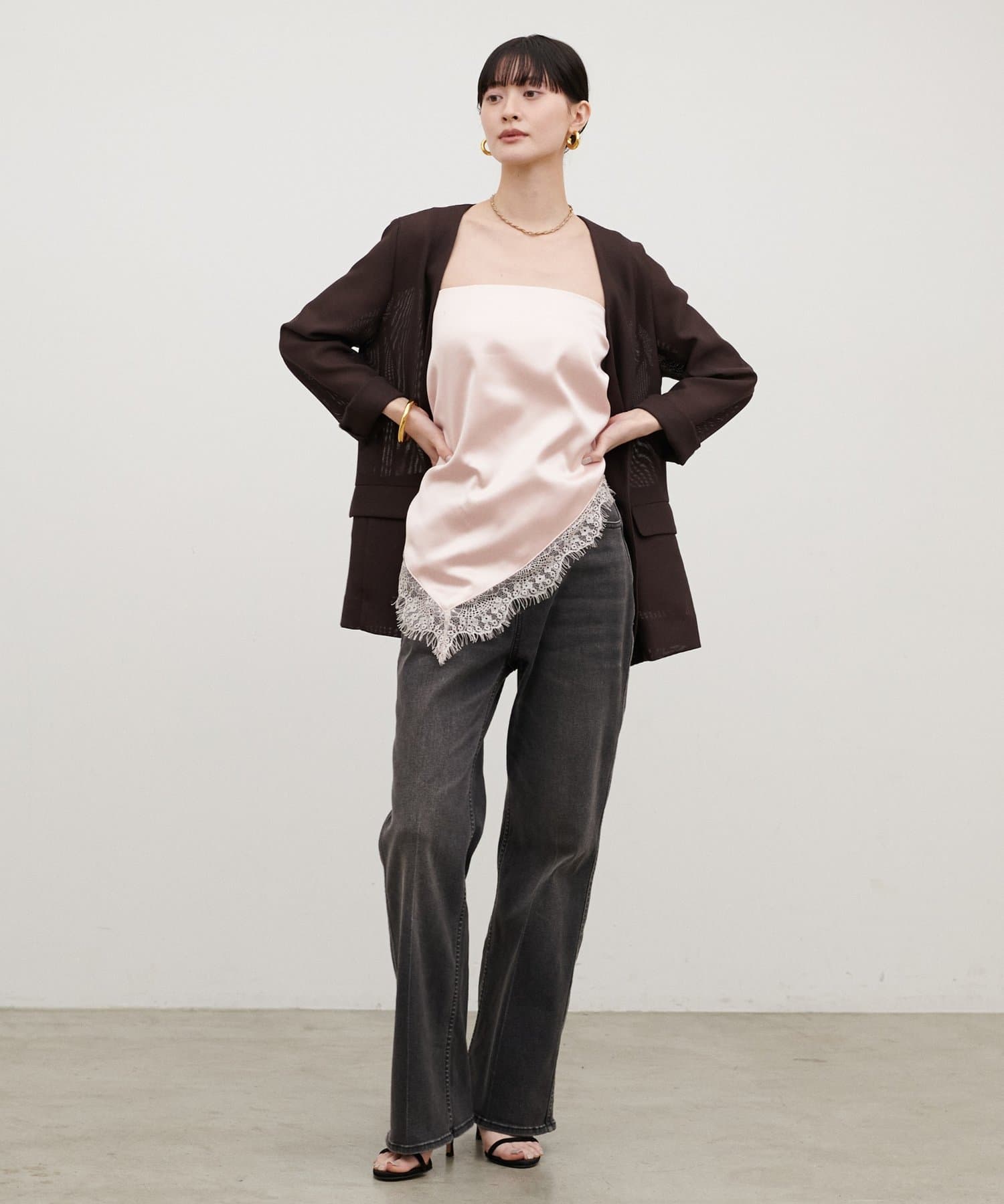 縁に施されたレースディテールがさりげないアクセントとなり、シンプルながらも華やかな印象に。