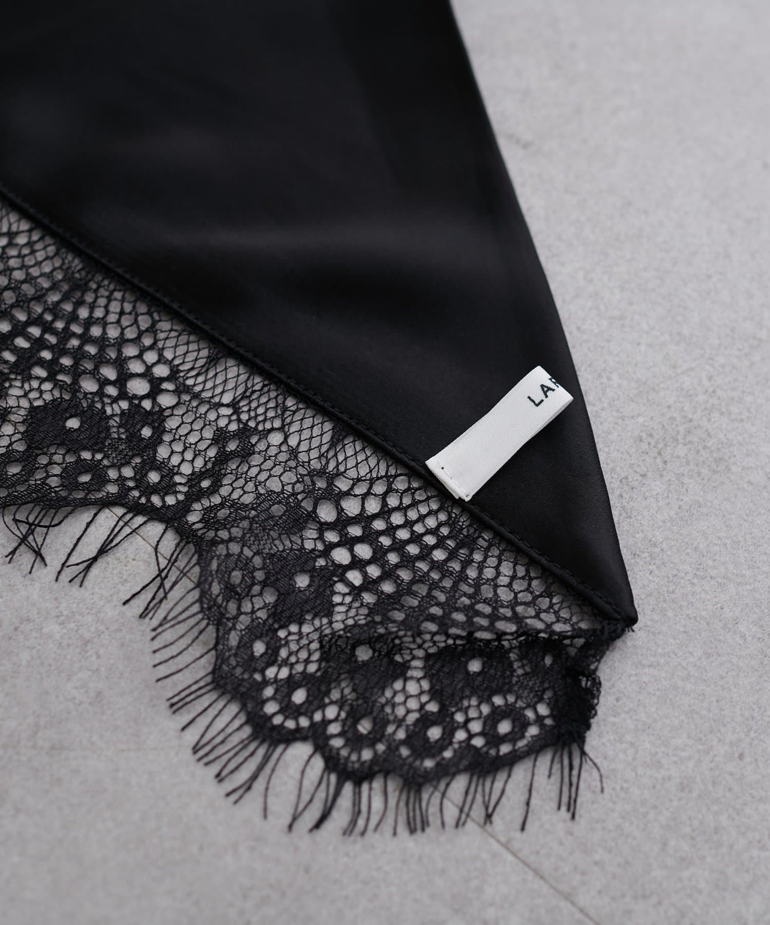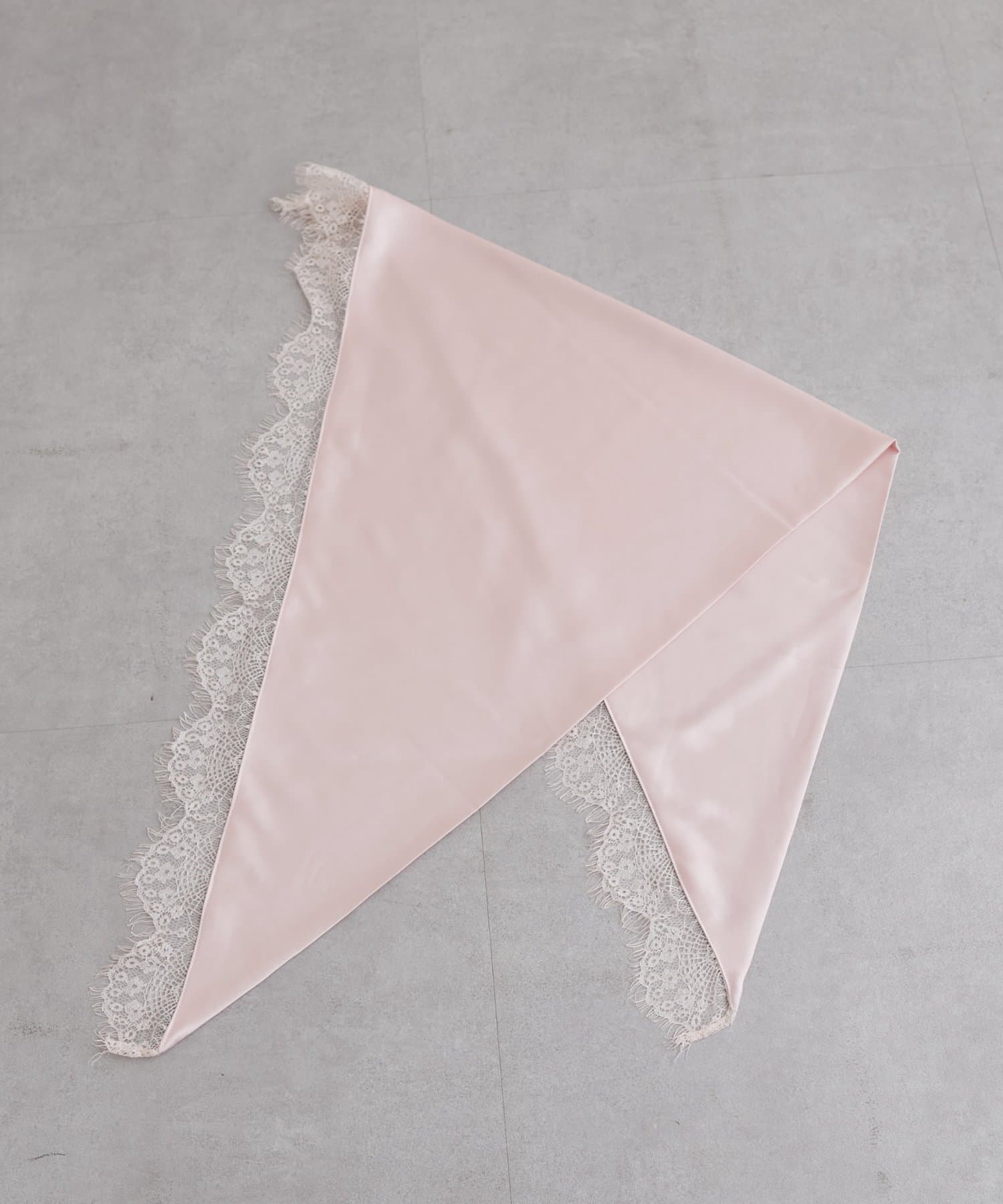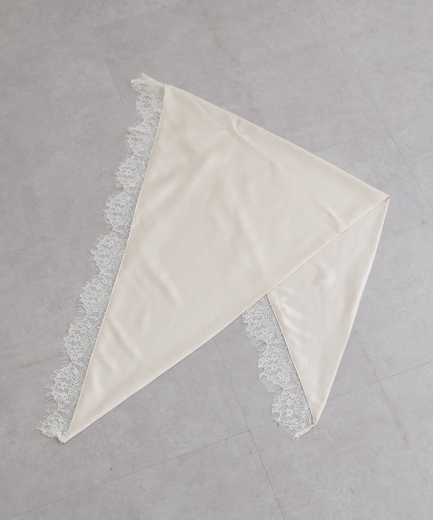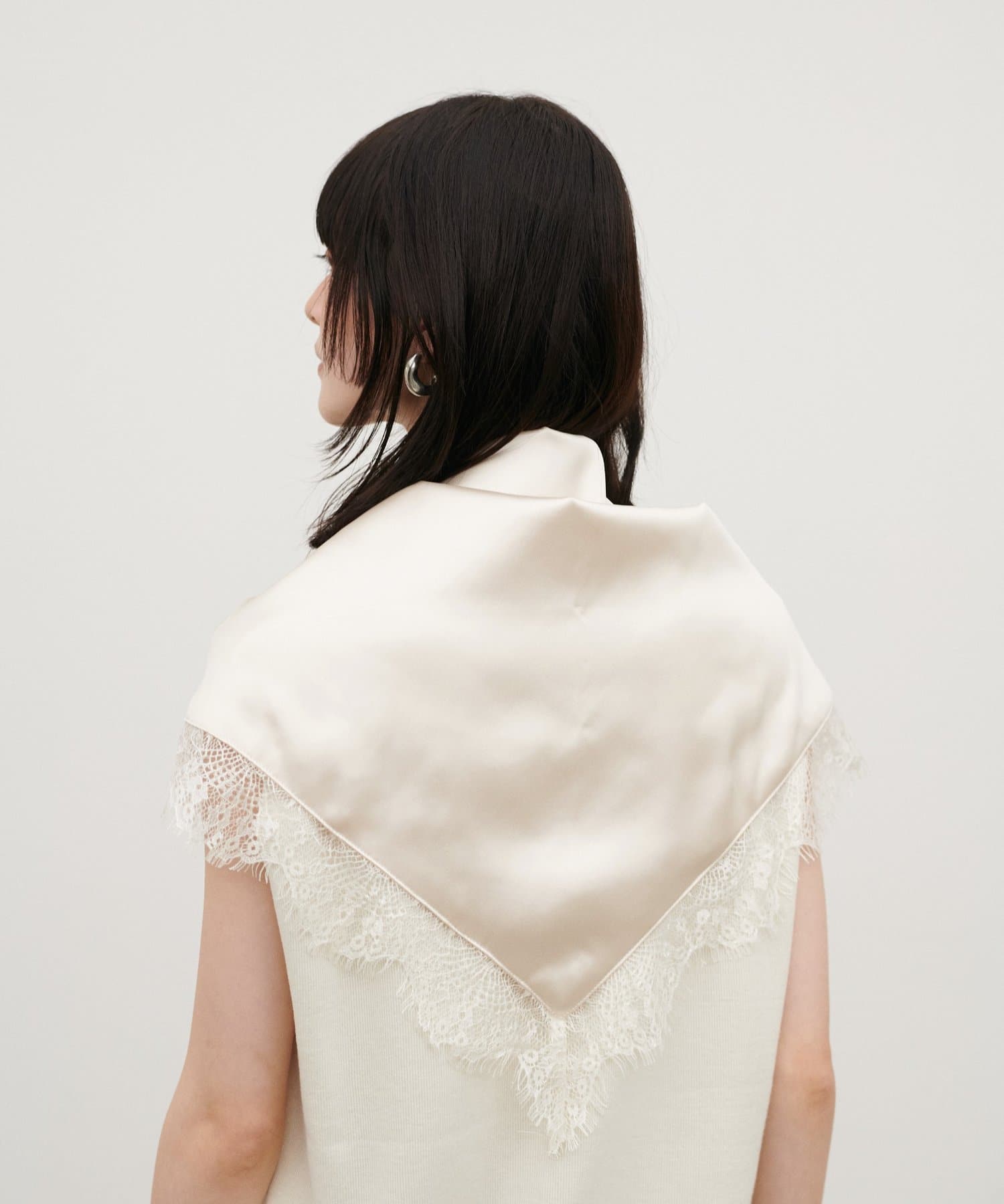 上品な光沢感のあるサテン素材に、繊細なレースをあしらったスカーフ。