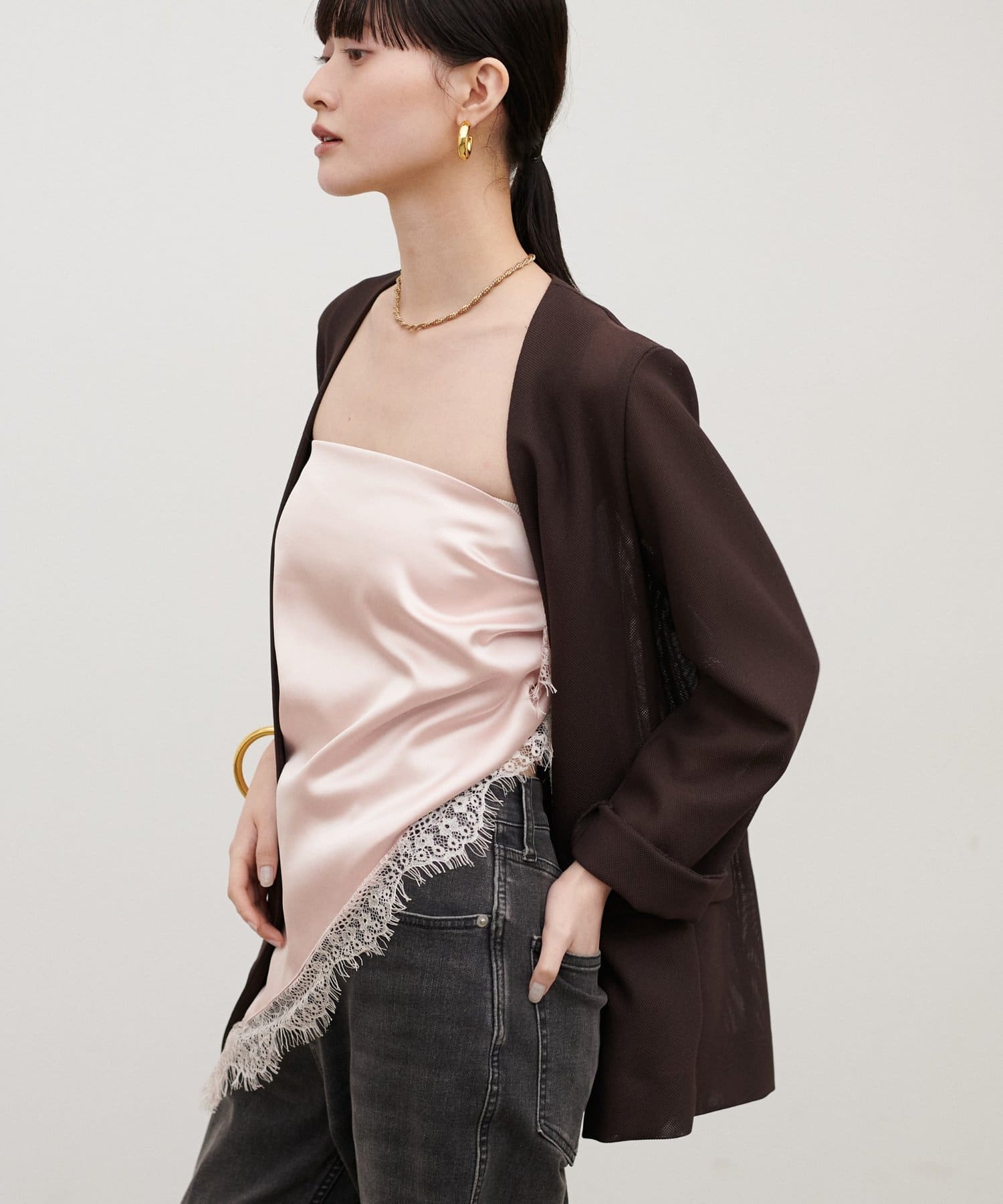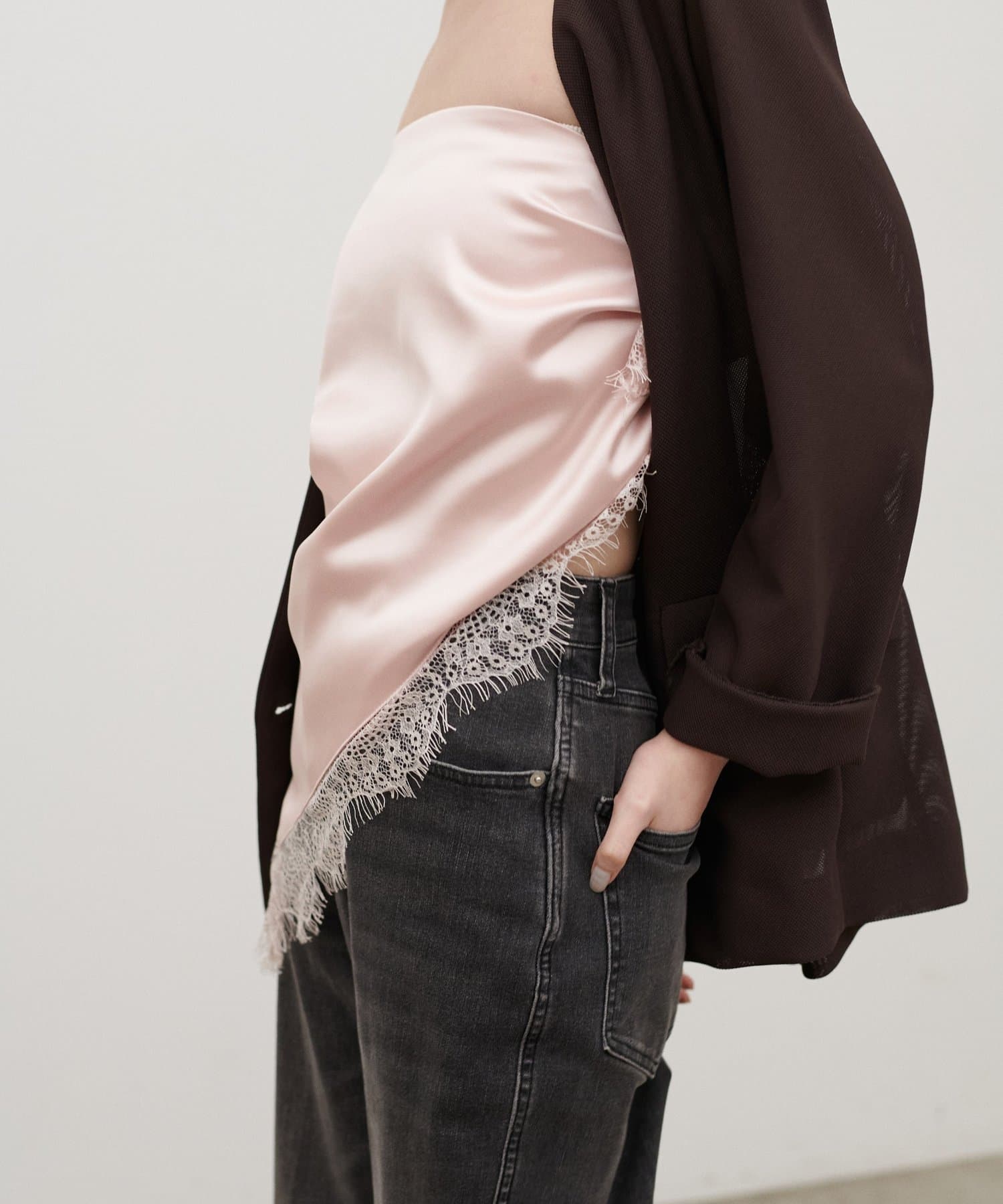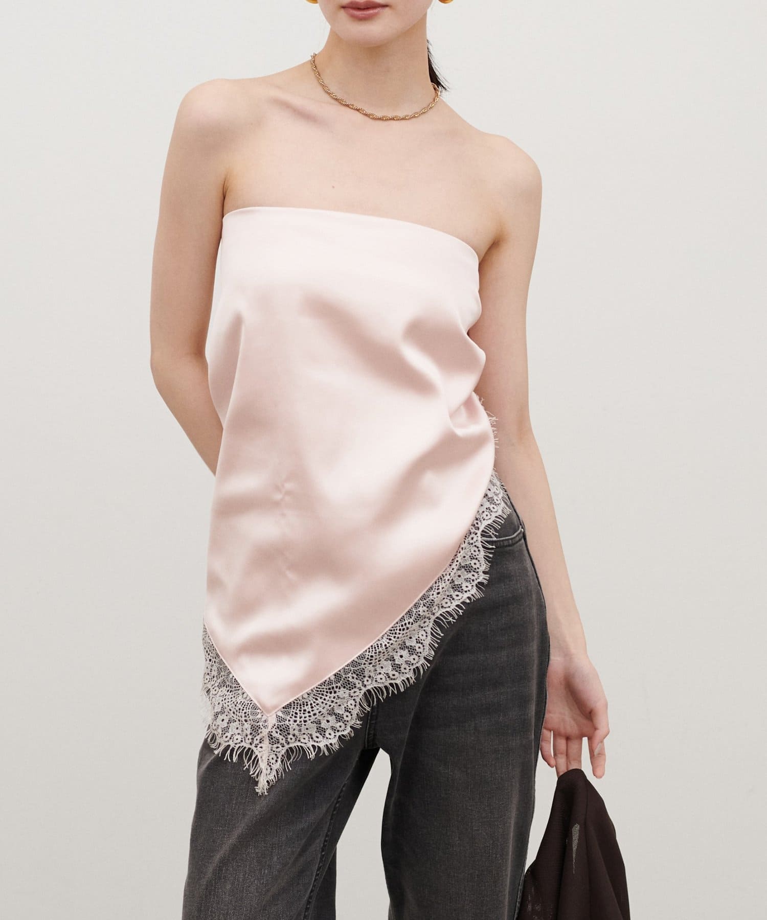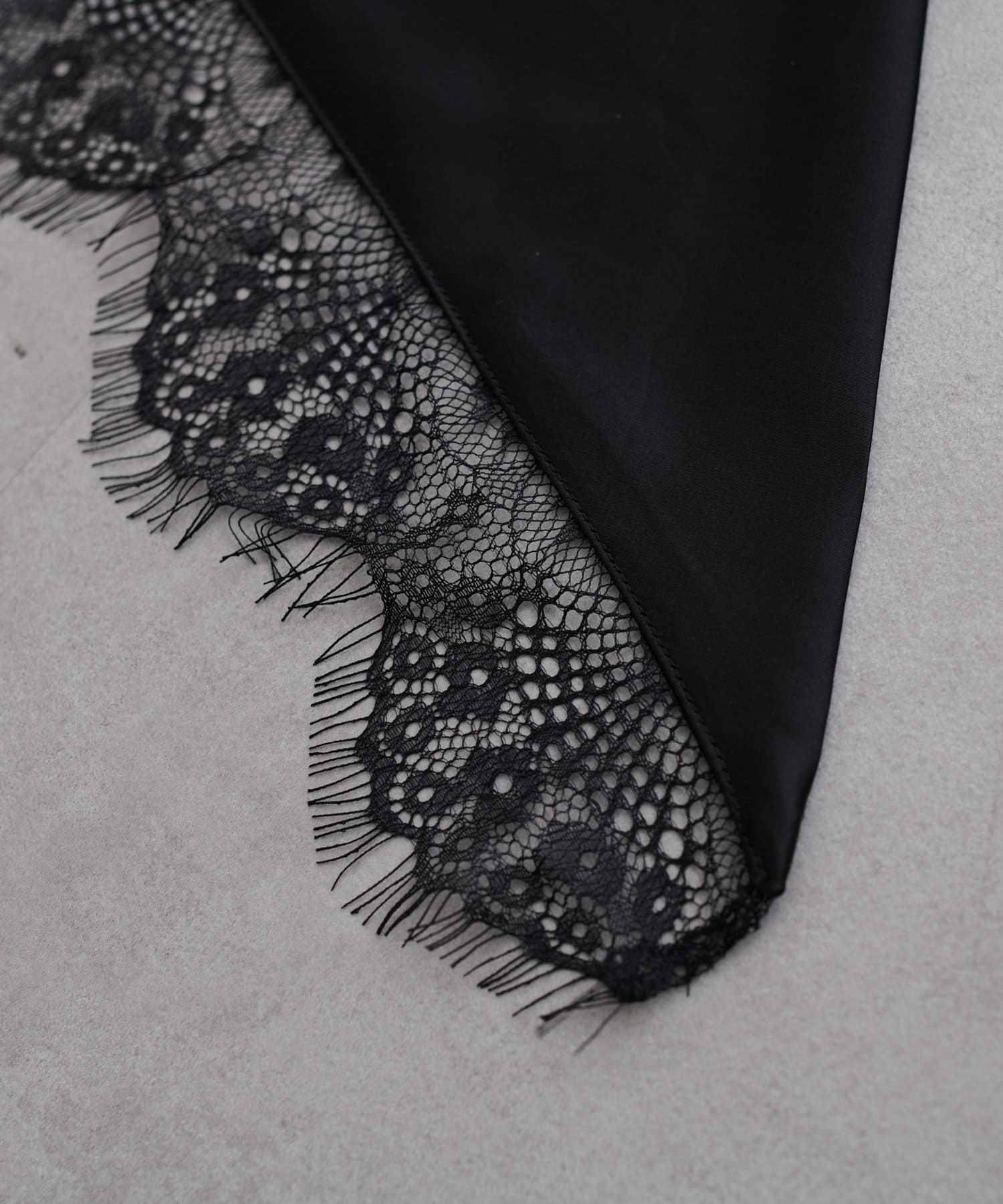 上品な光沢感のあるサテン素材に、繊細なレースをあしらったスカーフ。