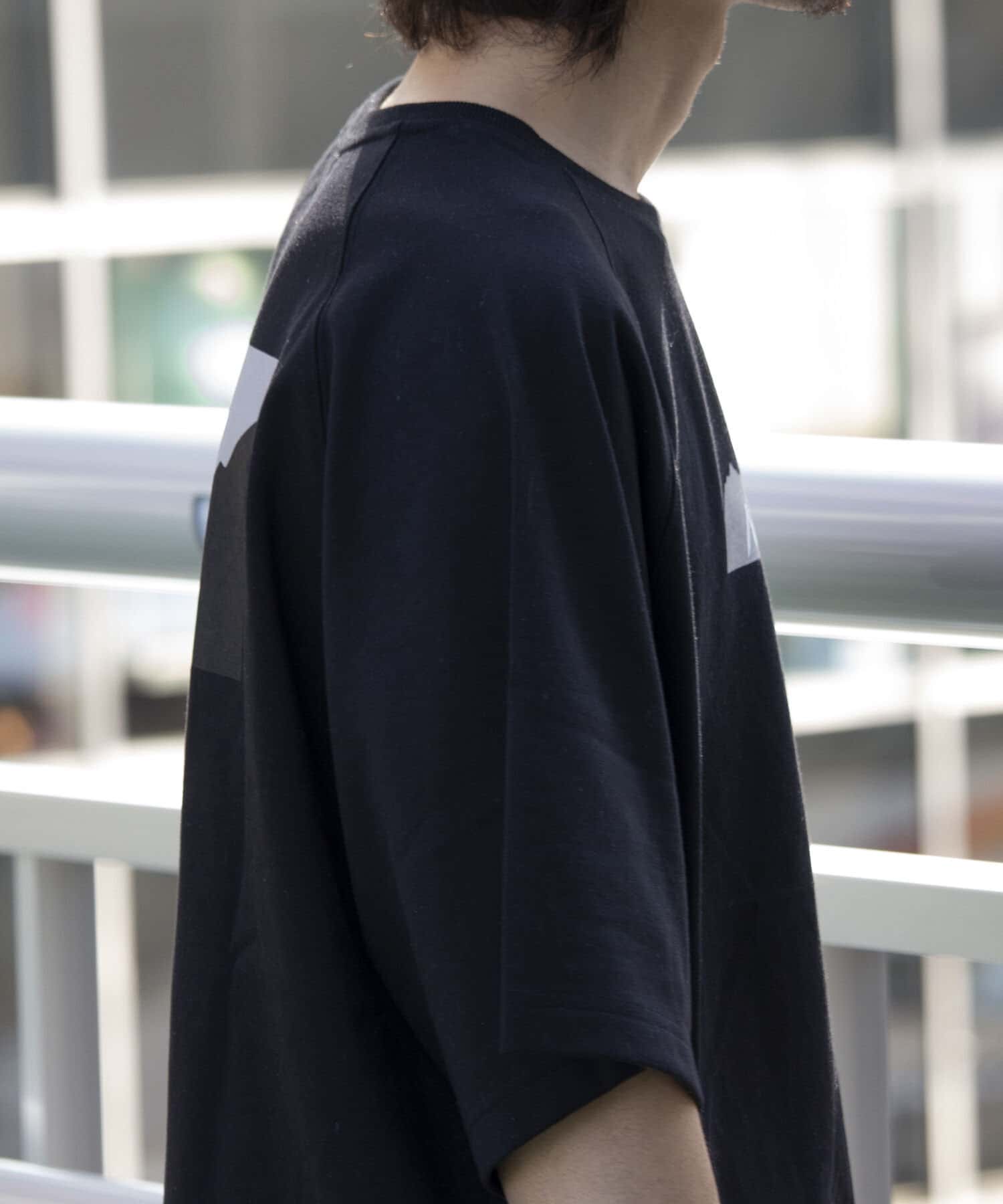 ラグラン仕様と肘くらいまでくる5分袖がポイントになるラグランスリーブのオーバーサイズカットソー。