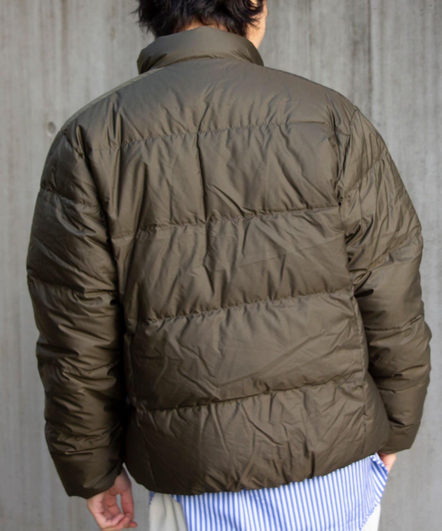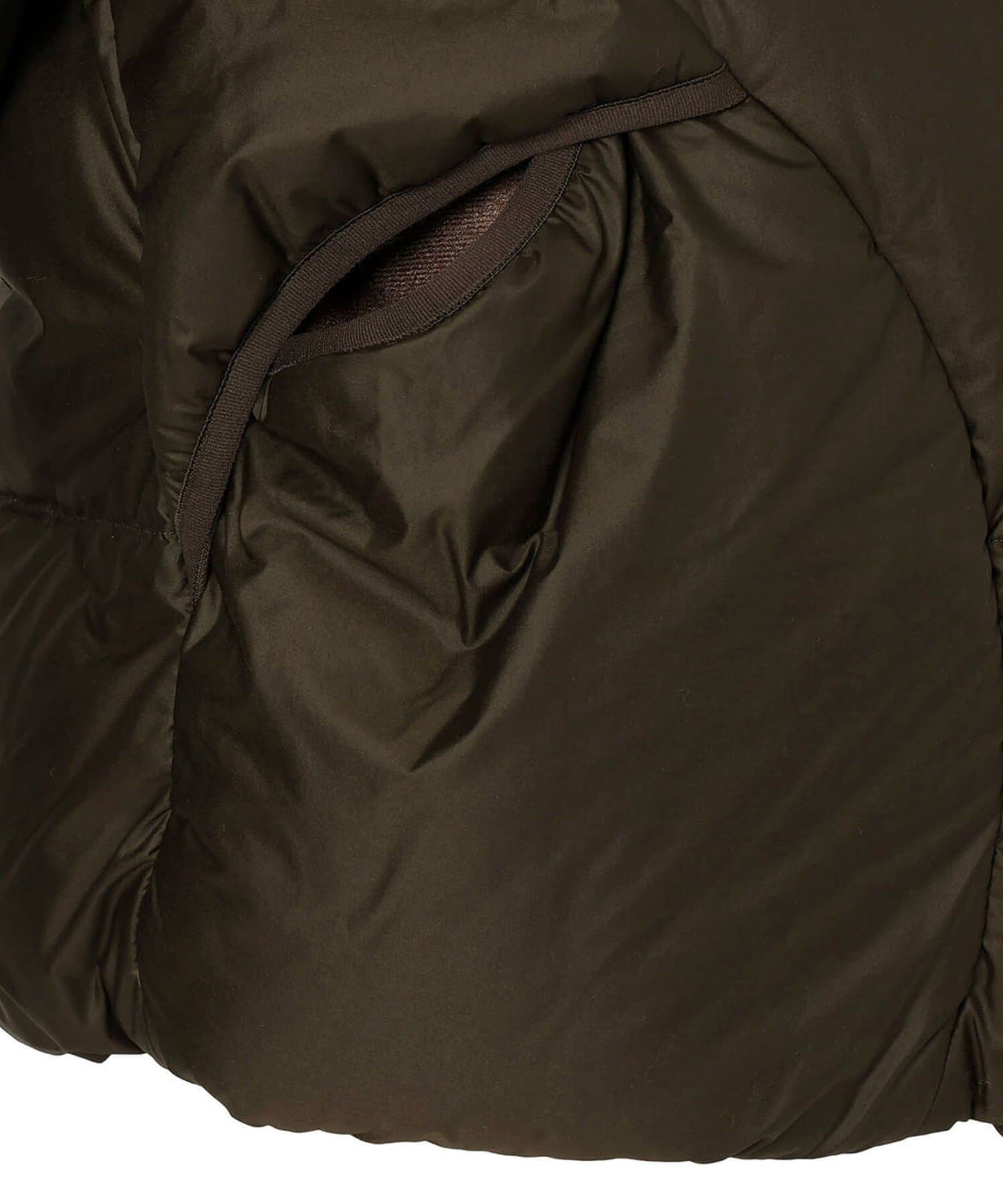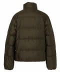 スタンドカラーのデザインで、たっぷり羽毛を入れた立ち襟で首元の冷えを防ぎ、裾にシャーリングゴムを設けることで、外部からの冷気の侵入を防ぎ、体が冷えるのを最小限に抑えます。