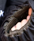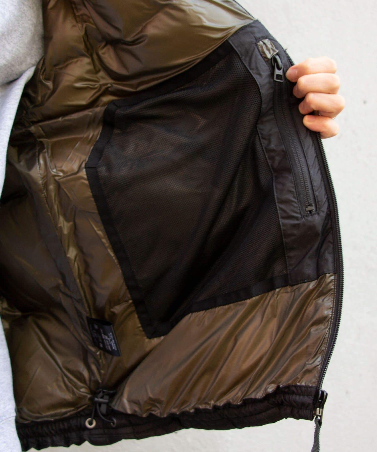表生地は、羽毛の飛び出しを極力防ぎながら、タスラン加工糸を横糸に使い、ナイロン100%ながらも独特なマットな質感。