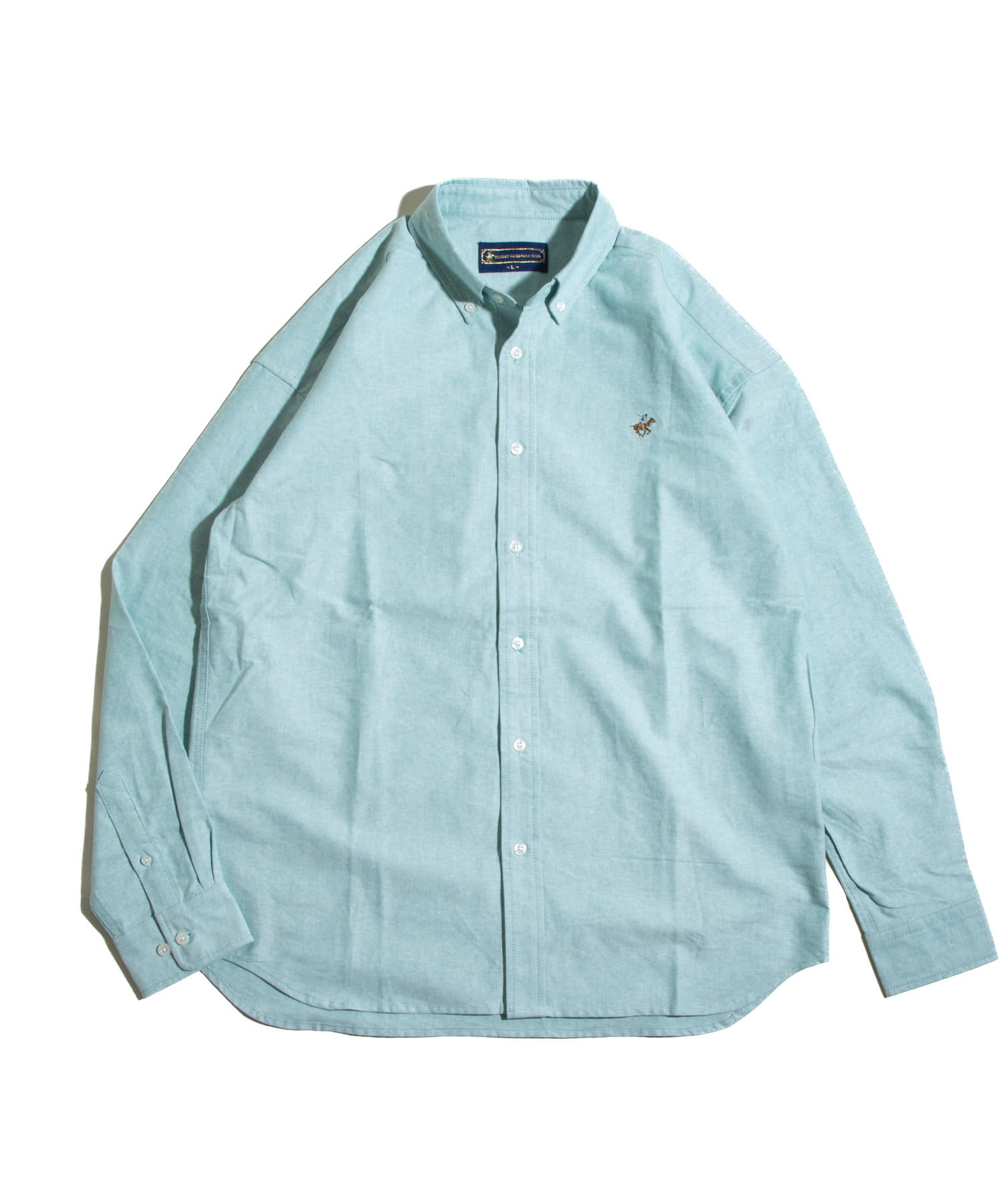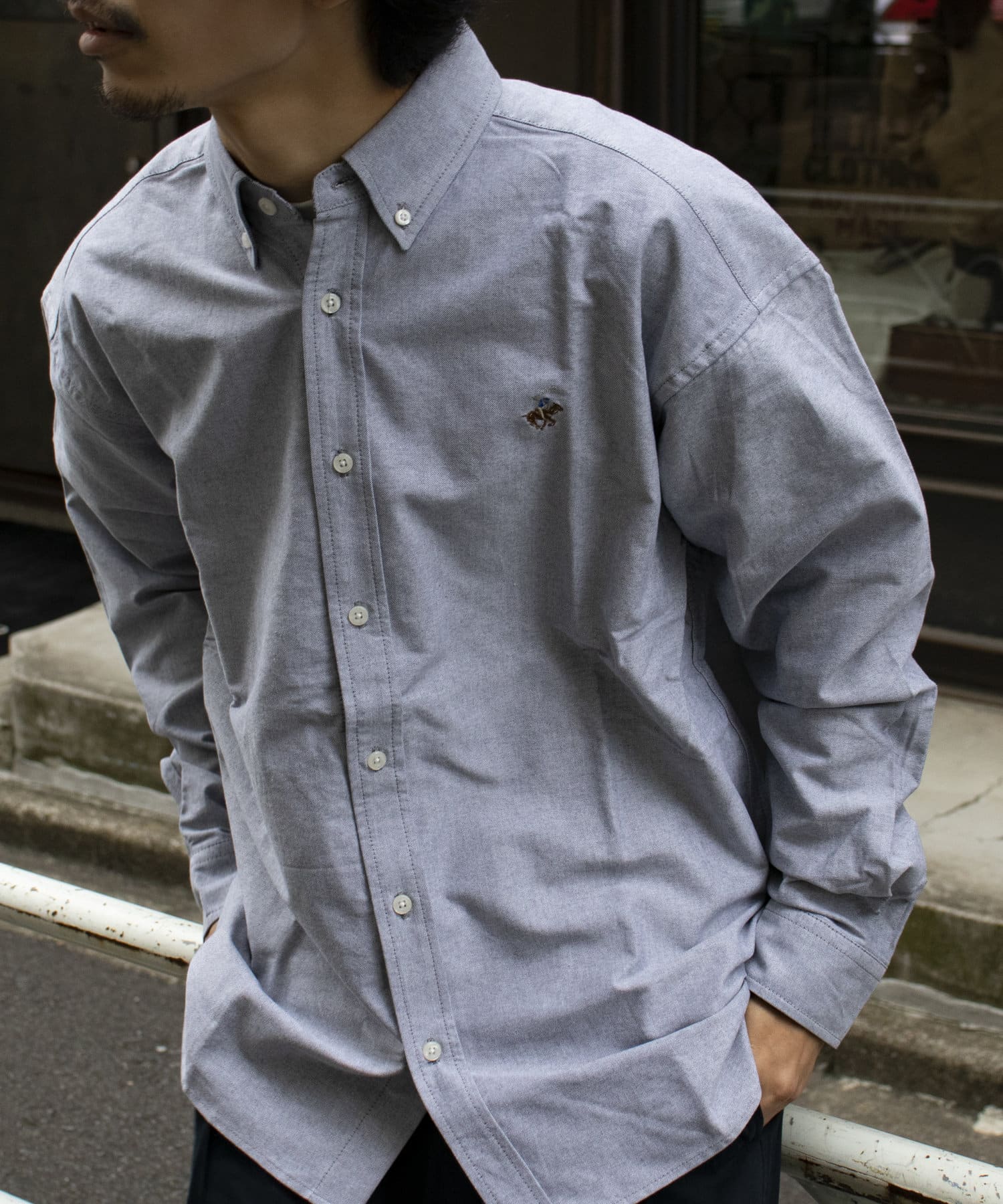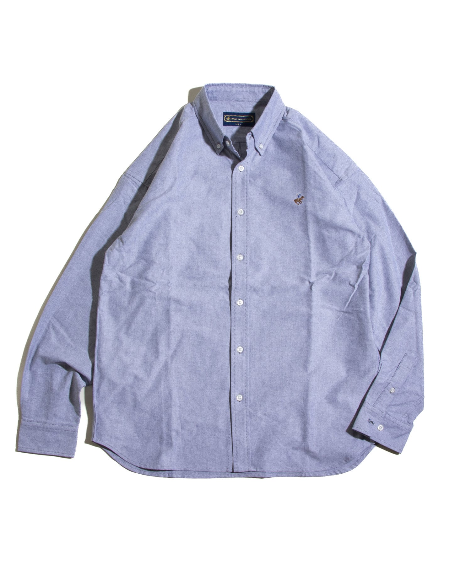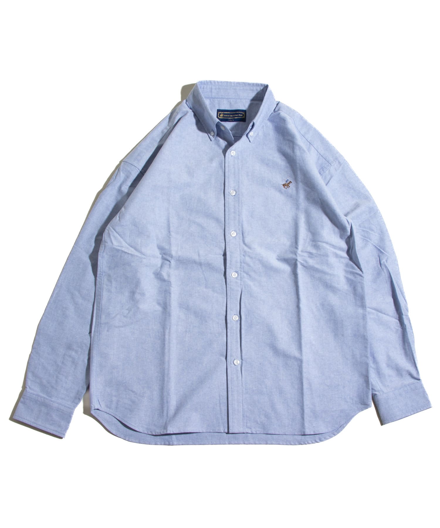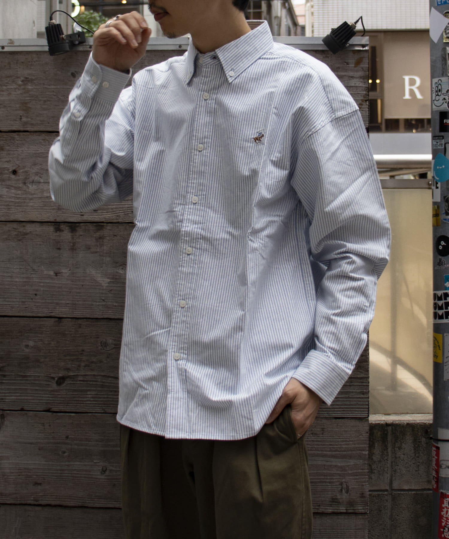 古着から再熱しているトレンドのワンポイント刺繍ロゴ入りのオックス素材の長袖ボタンダウンシャツです。