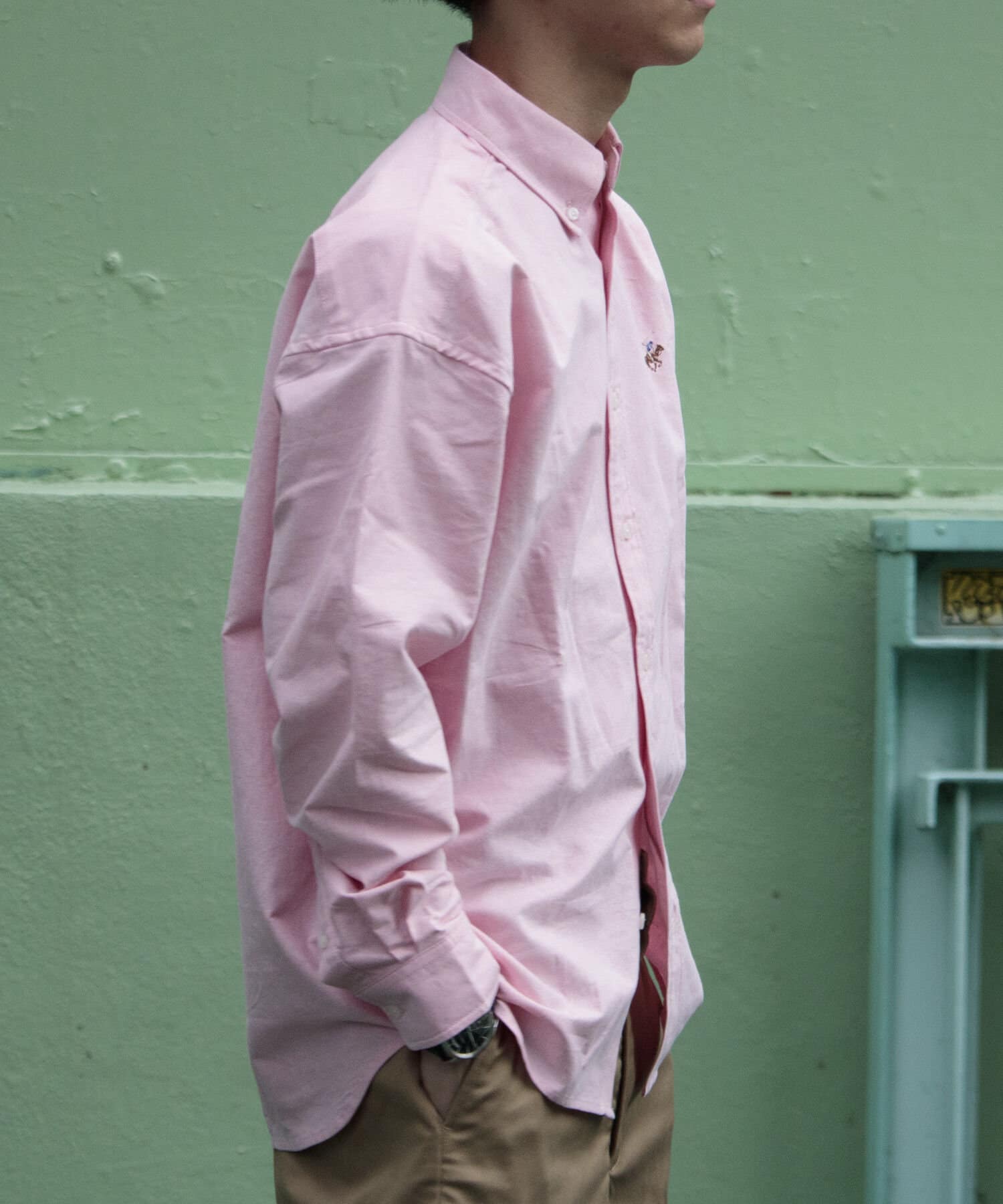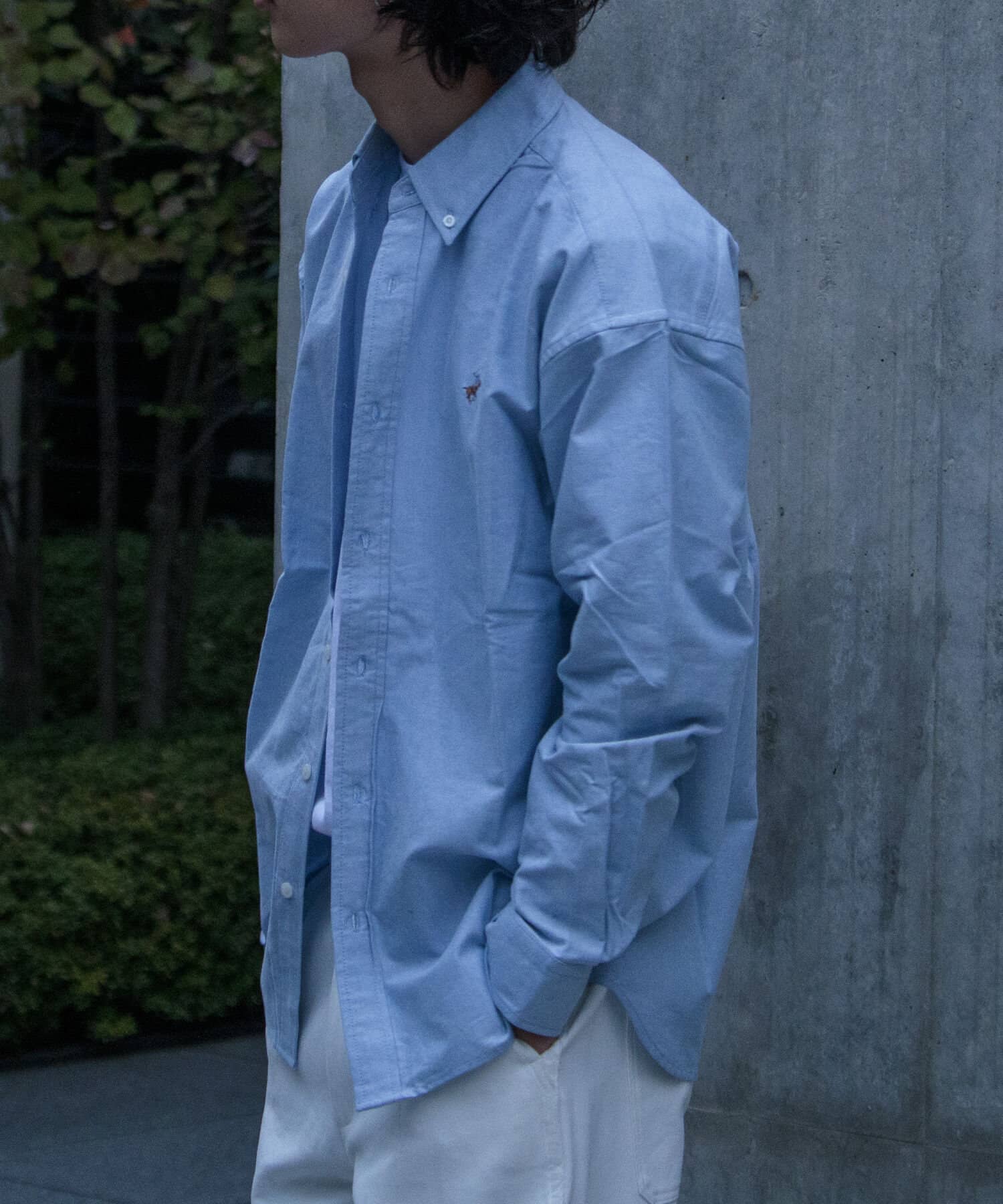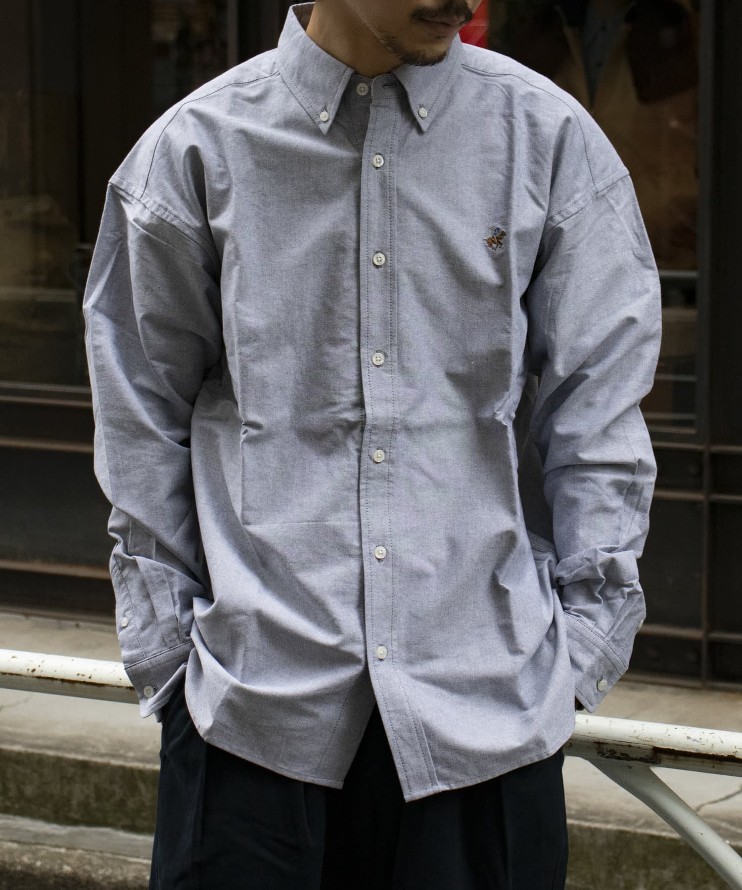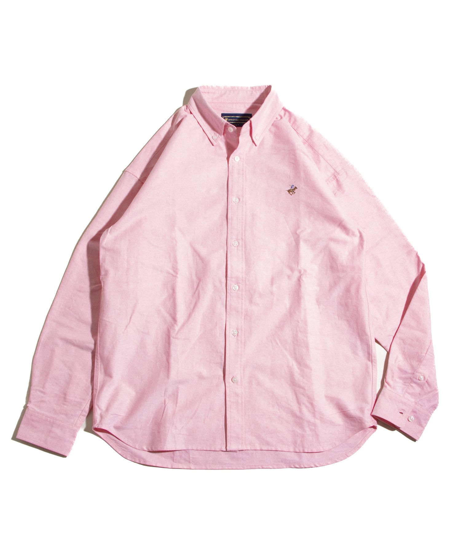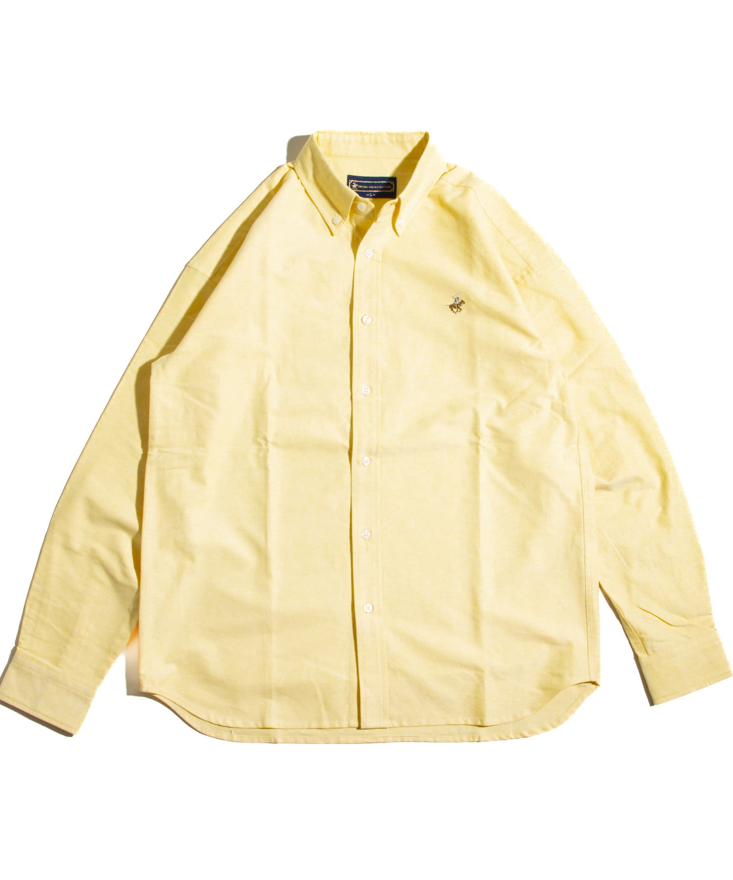 古着から再熱しているトレンドのワンポイント刺繍ロゴ入りのオックス素材の長袖ボタンダウンシャツです。
