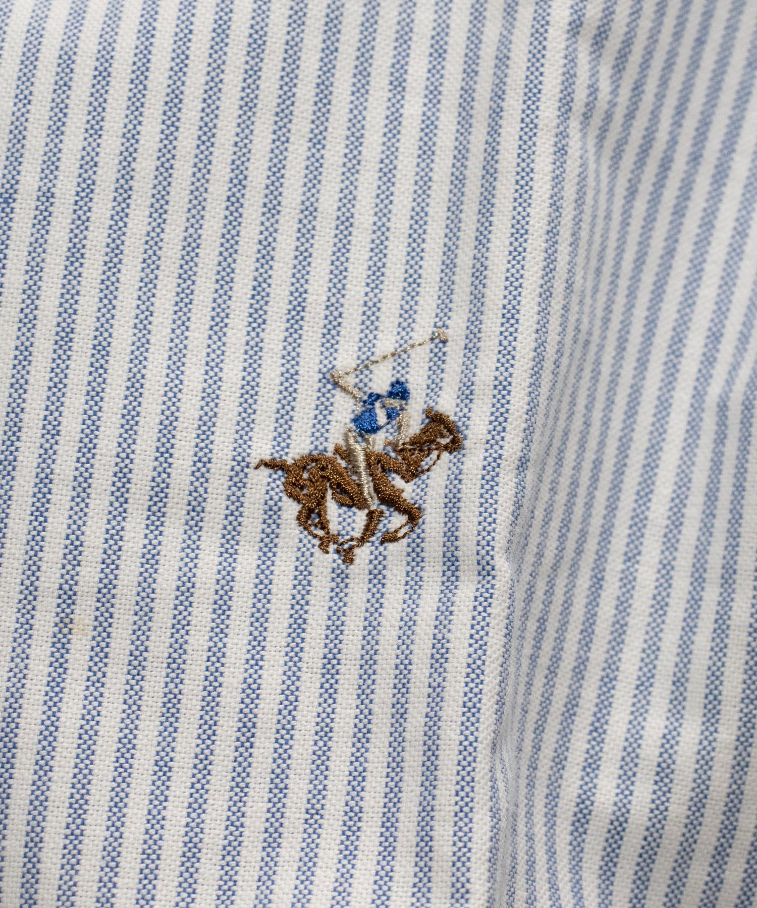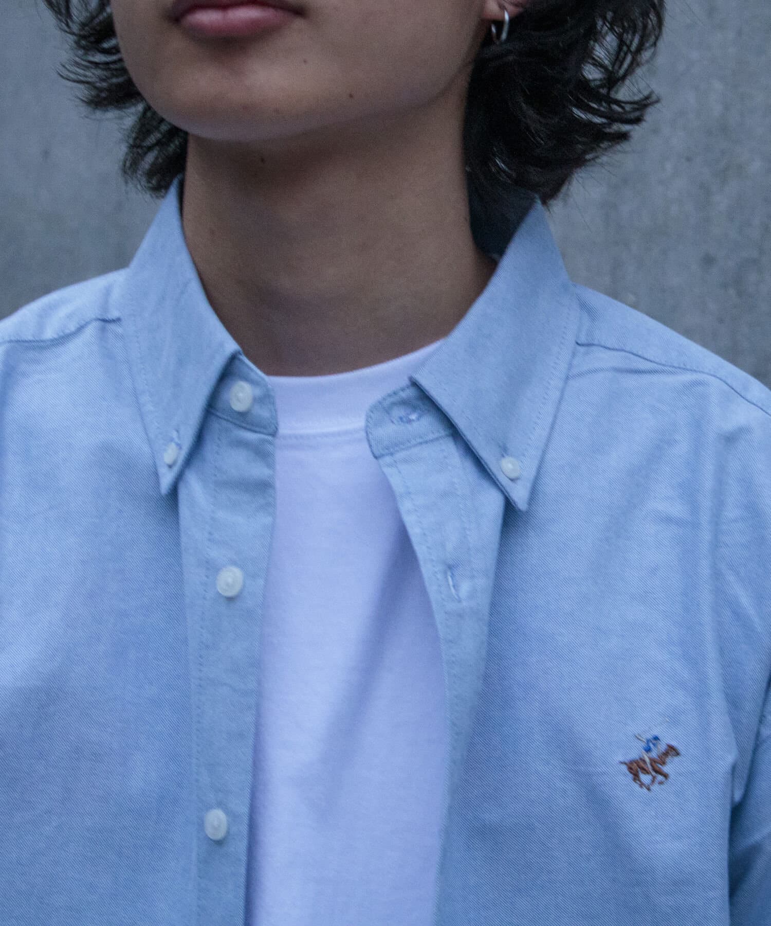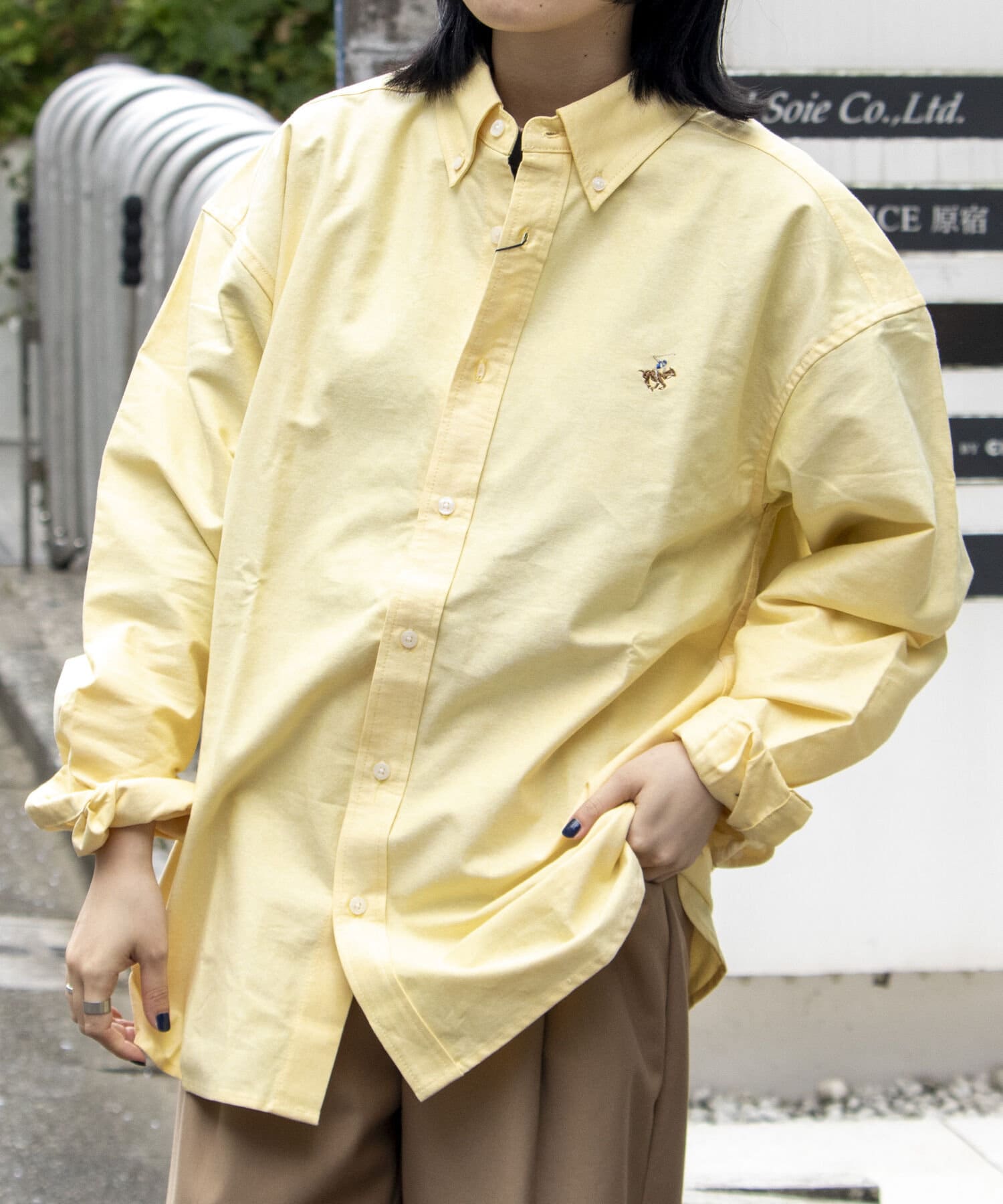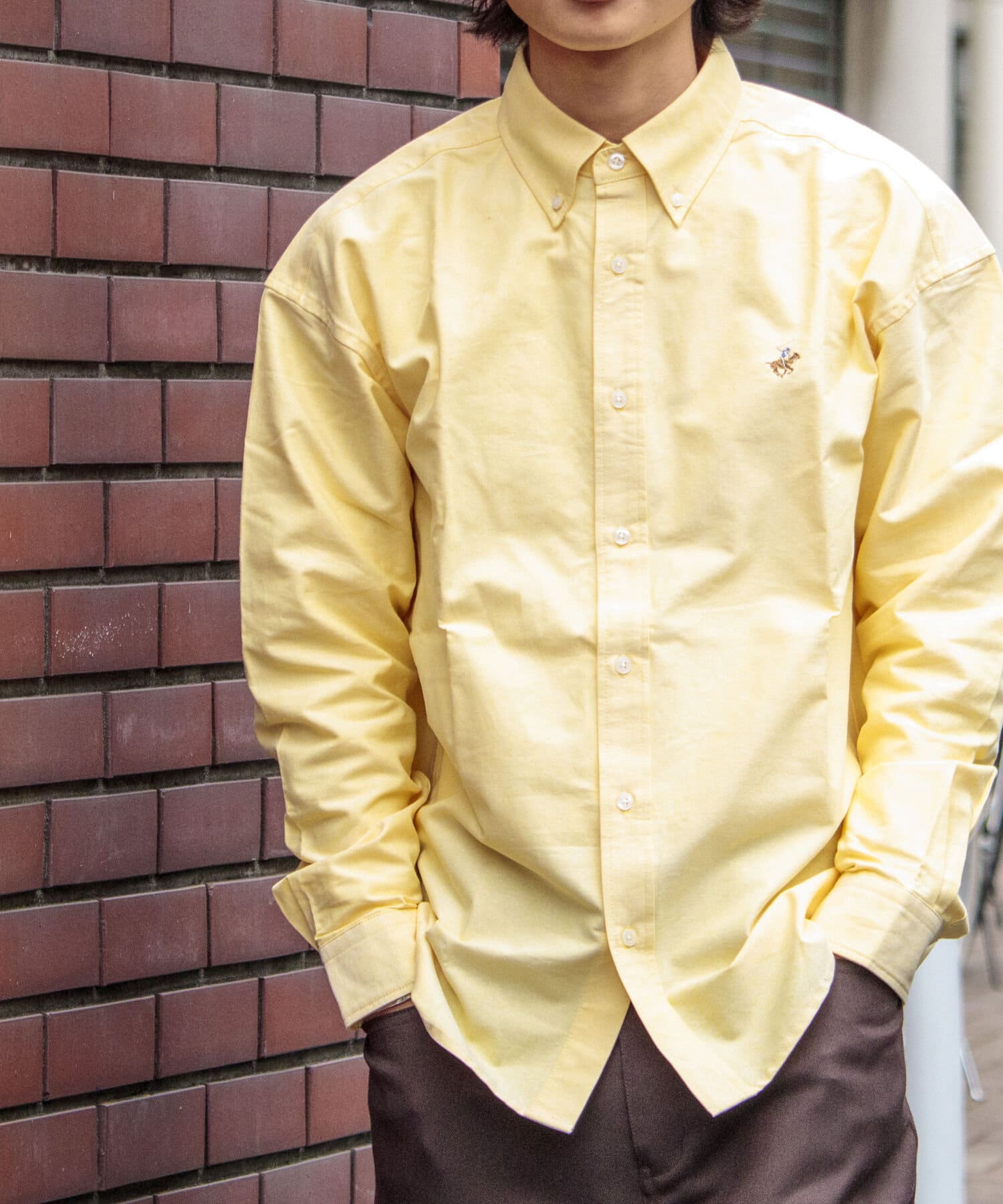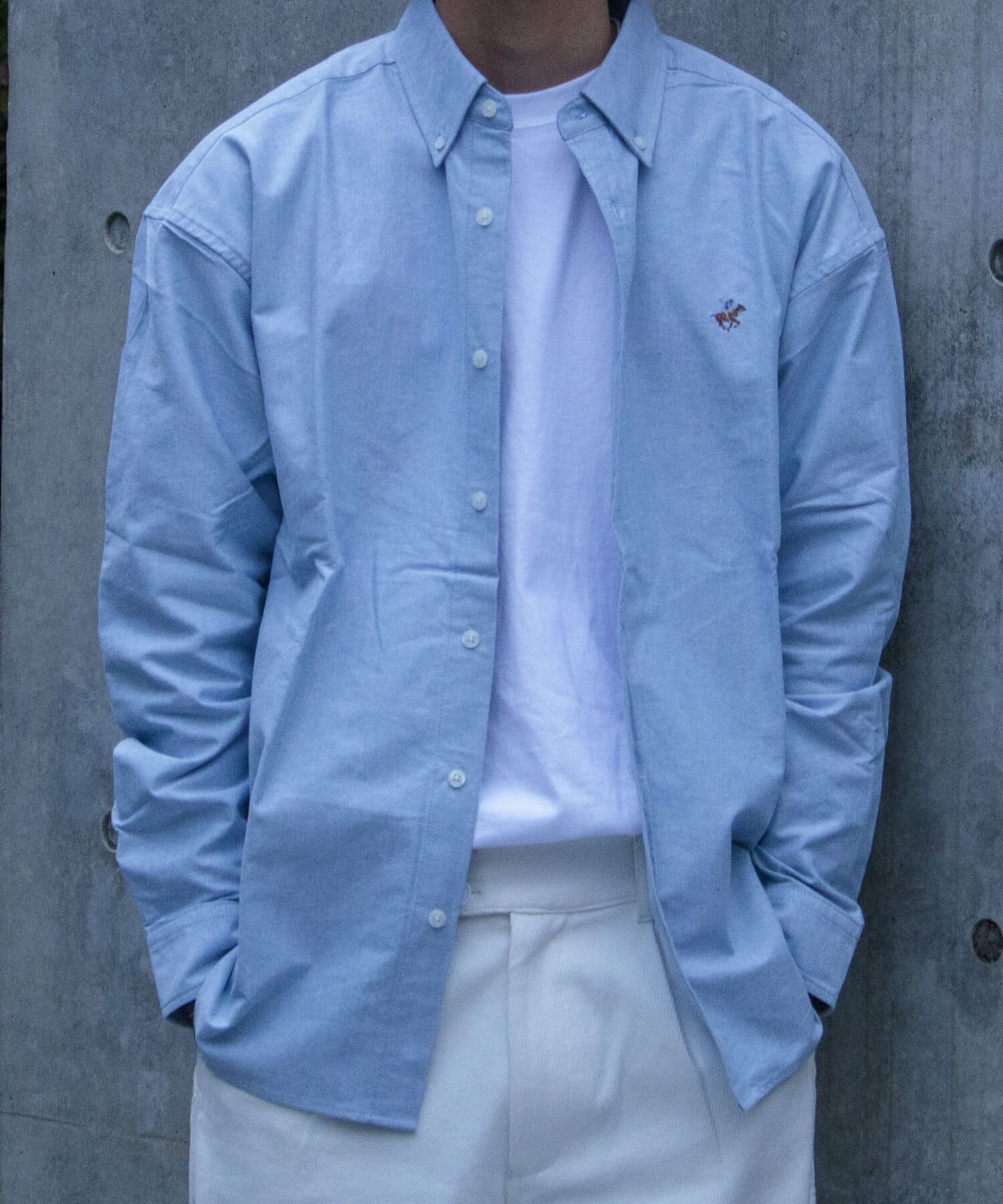 古着から再熱しているトレンドのワンポイント刺繍ロゴ入りのオックス素材の長袖ボタンダウンシャツです。