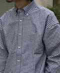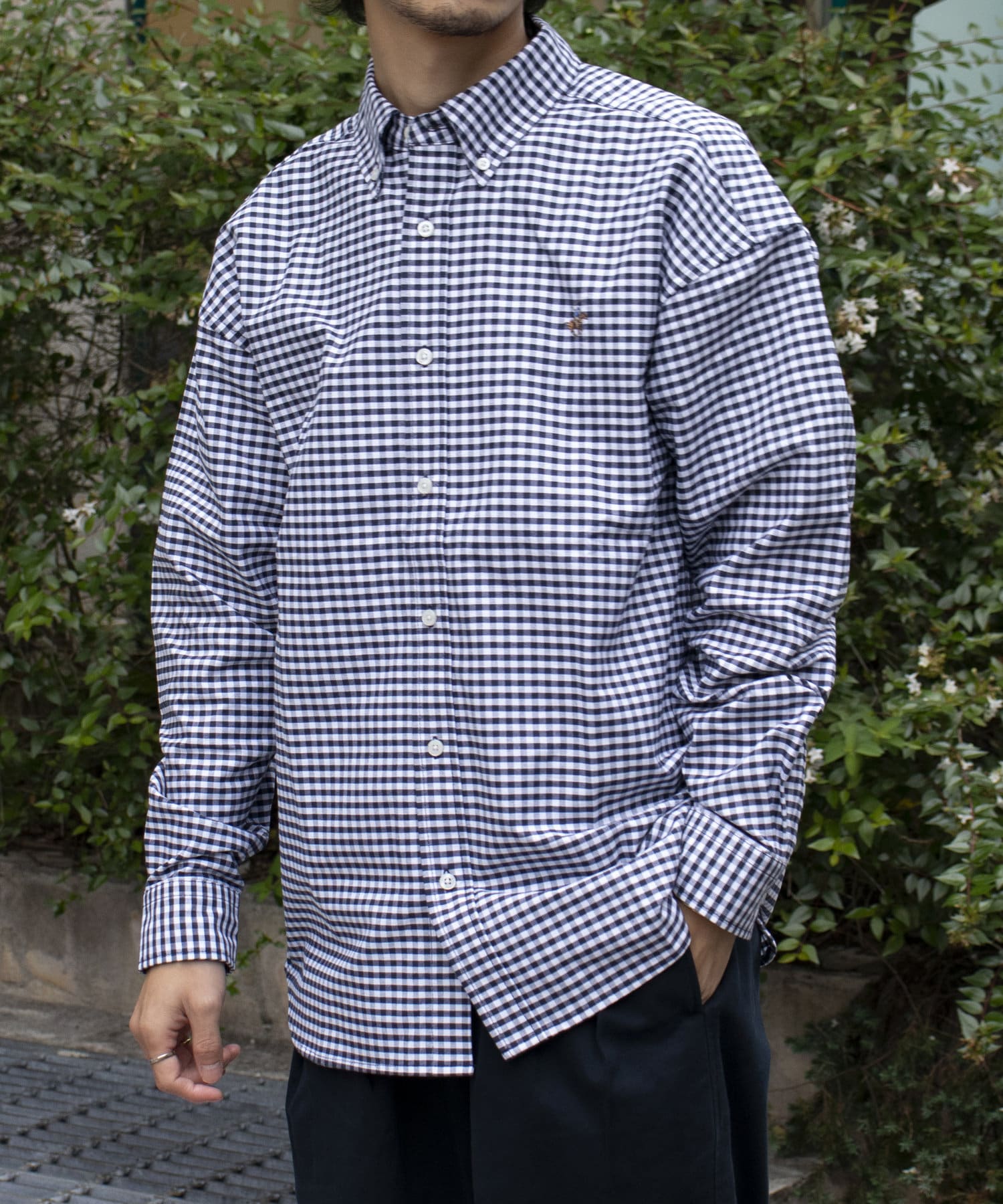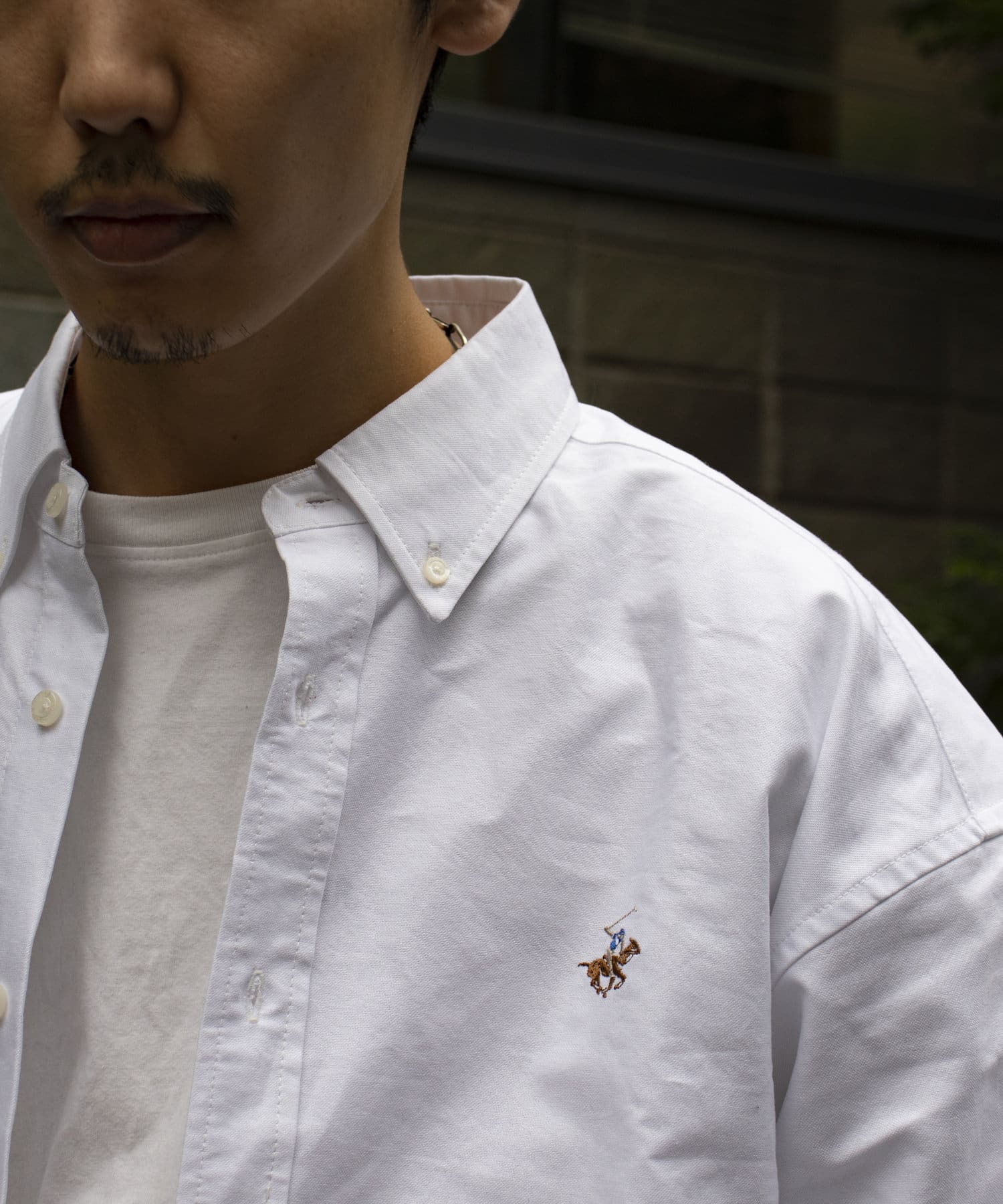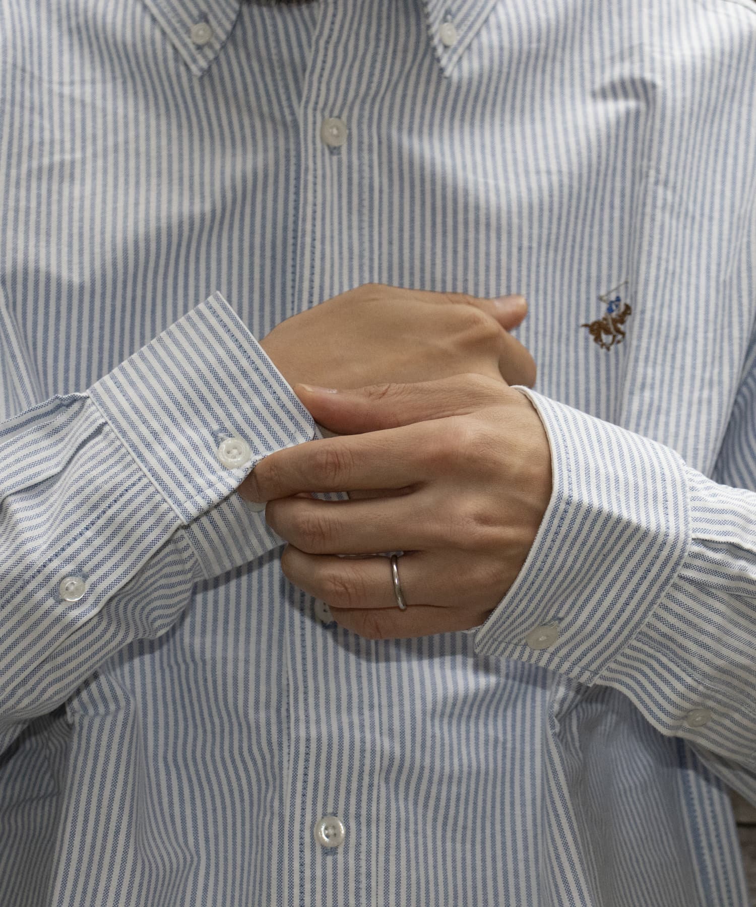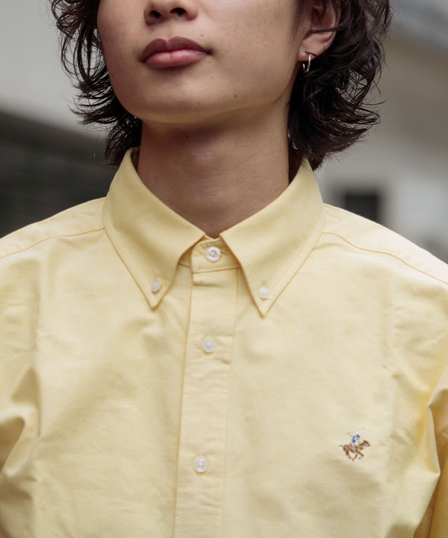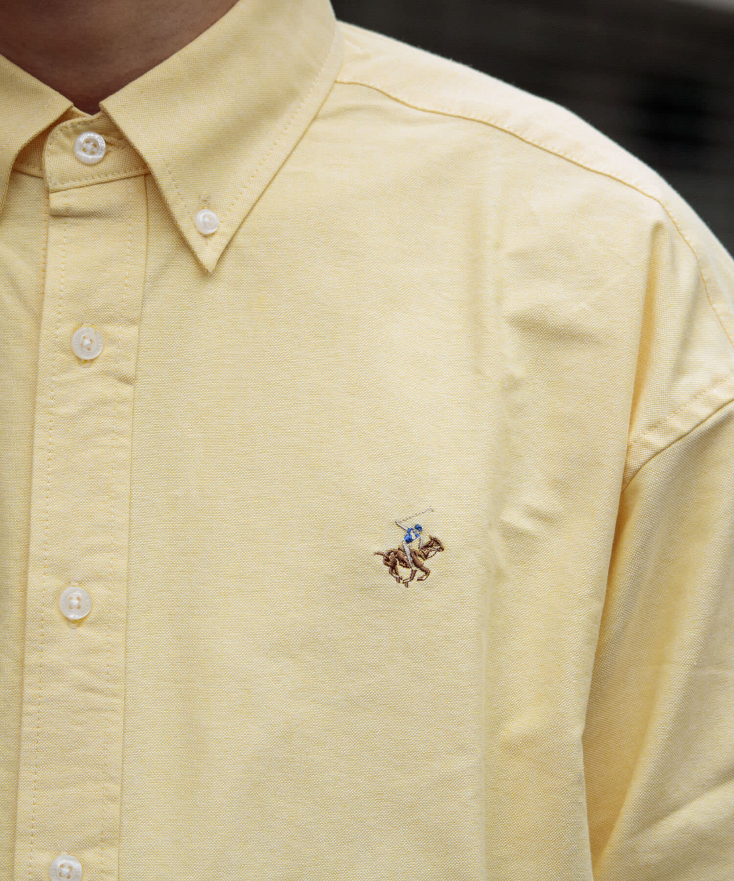 古着から再熱しているトレンドのワンポイント刺繍ロゴ入りのオックス素材の長袖ボタンダウンシャツです。