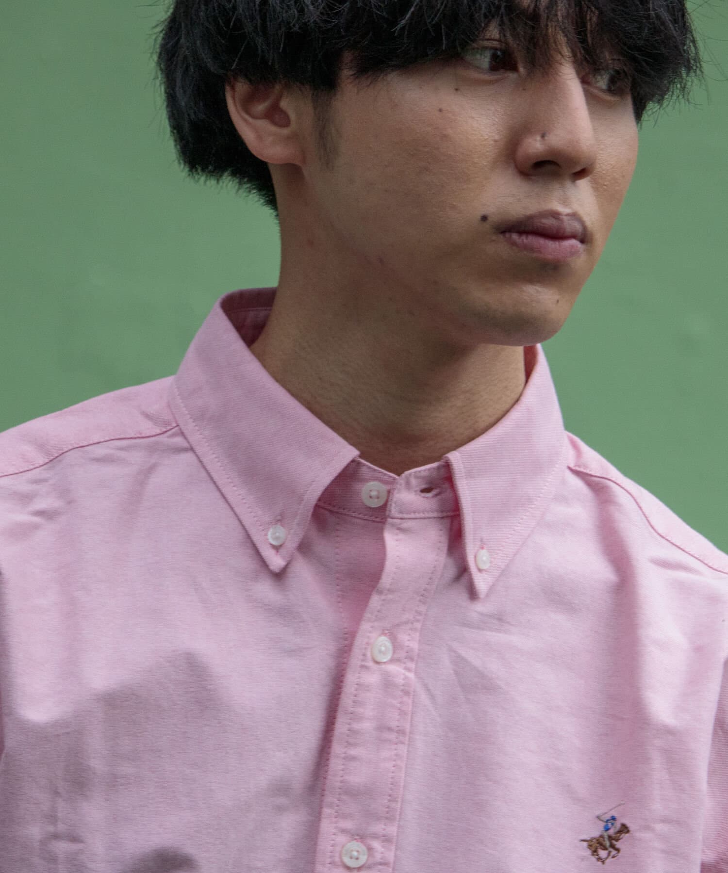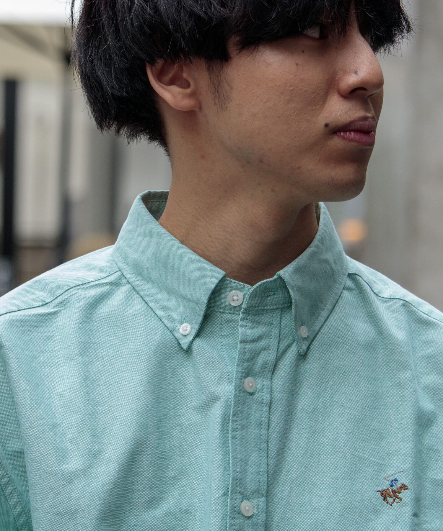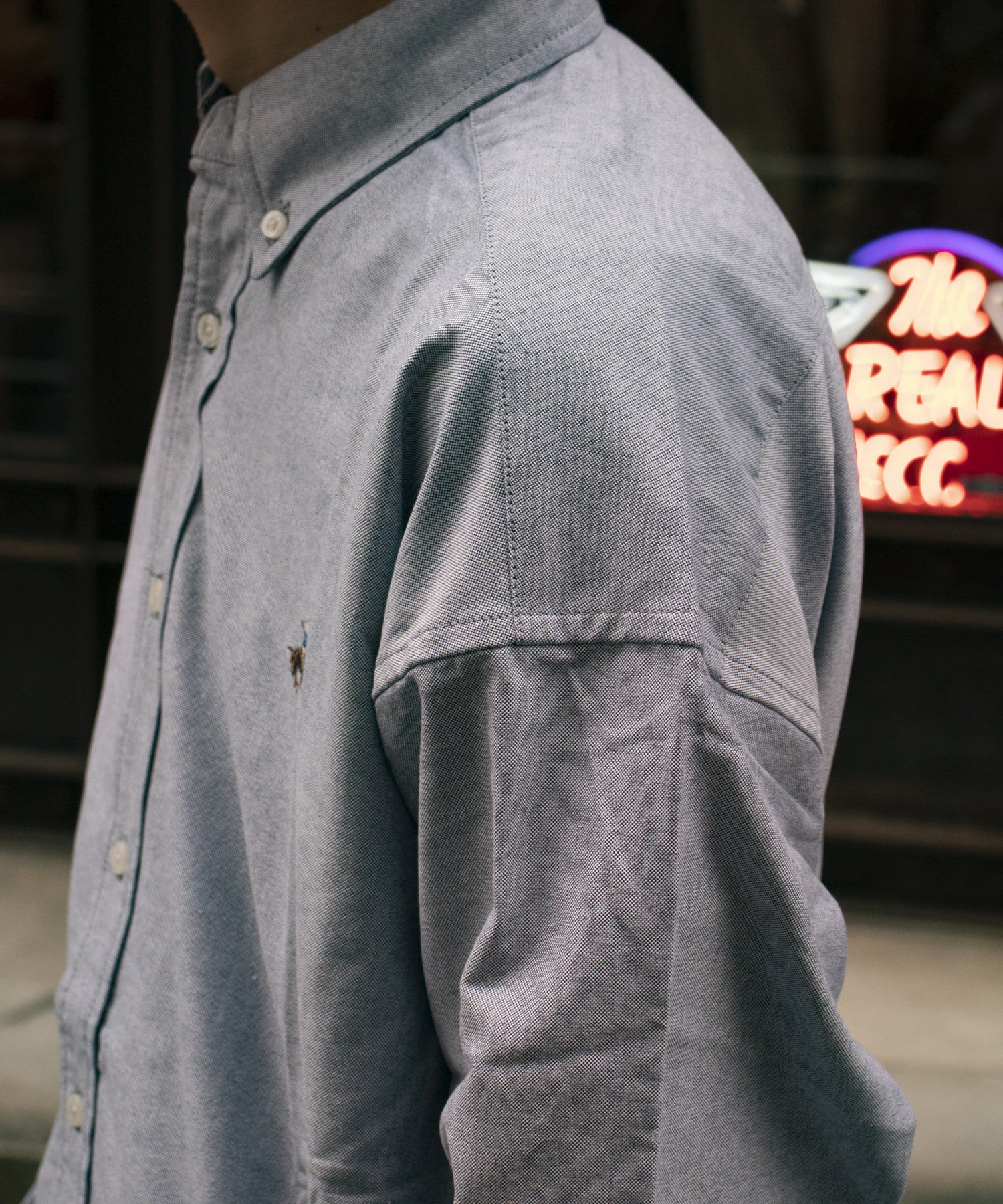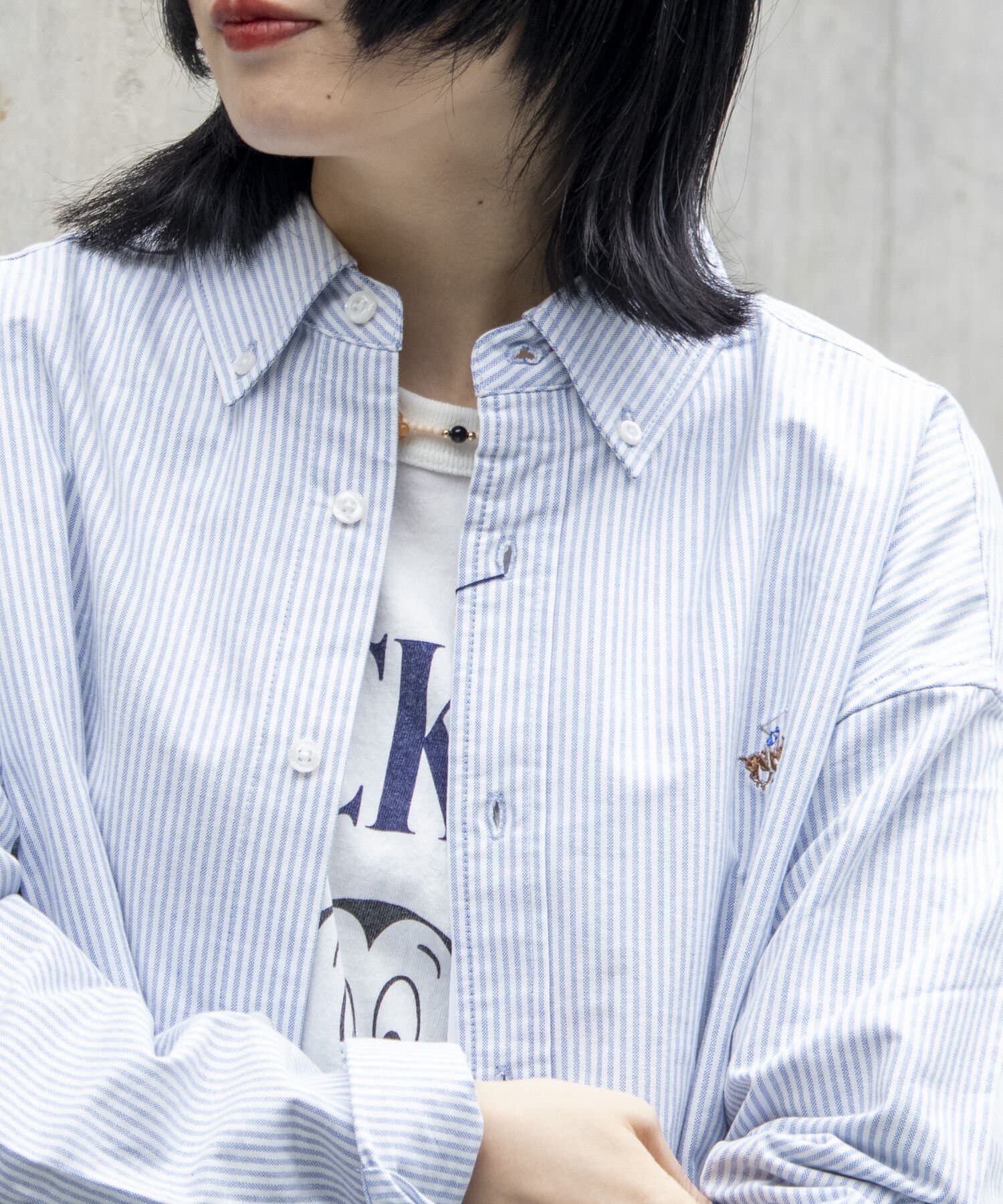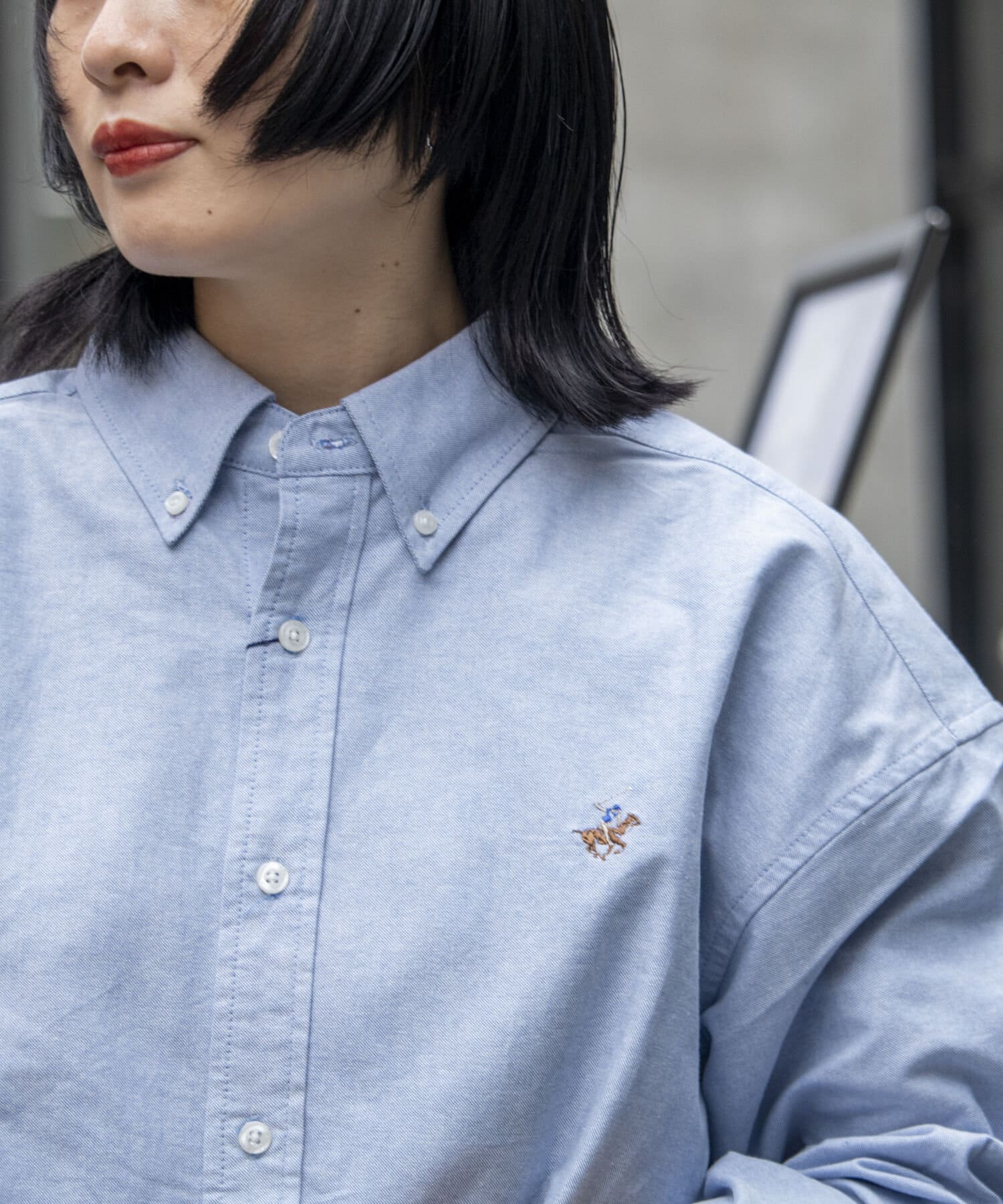 古着から再熱しているトレンドのワンポイント刺繍ロゴ入りのオックス素材の長袖ボタンダウンシャツです。