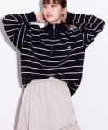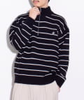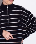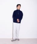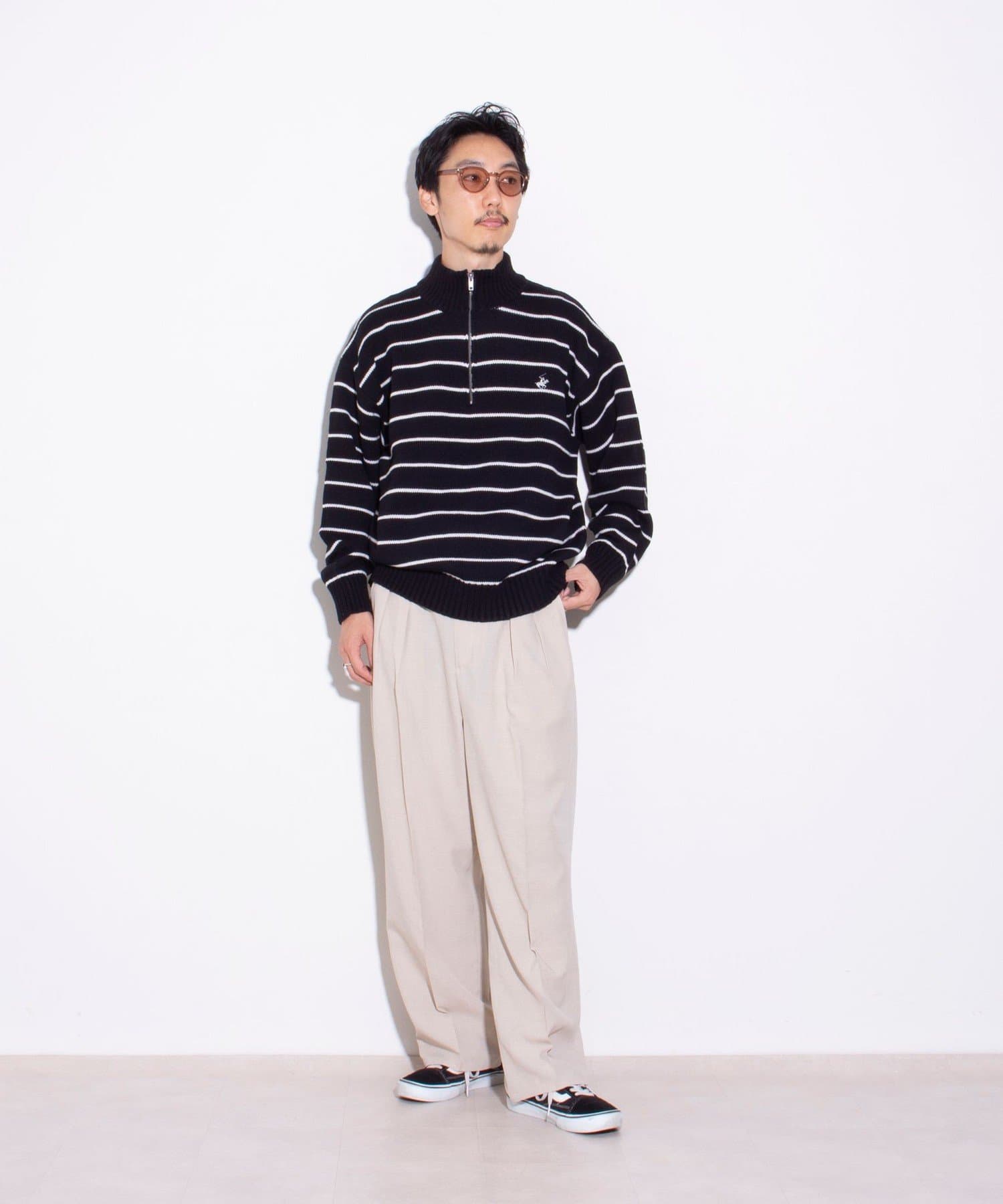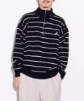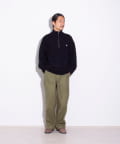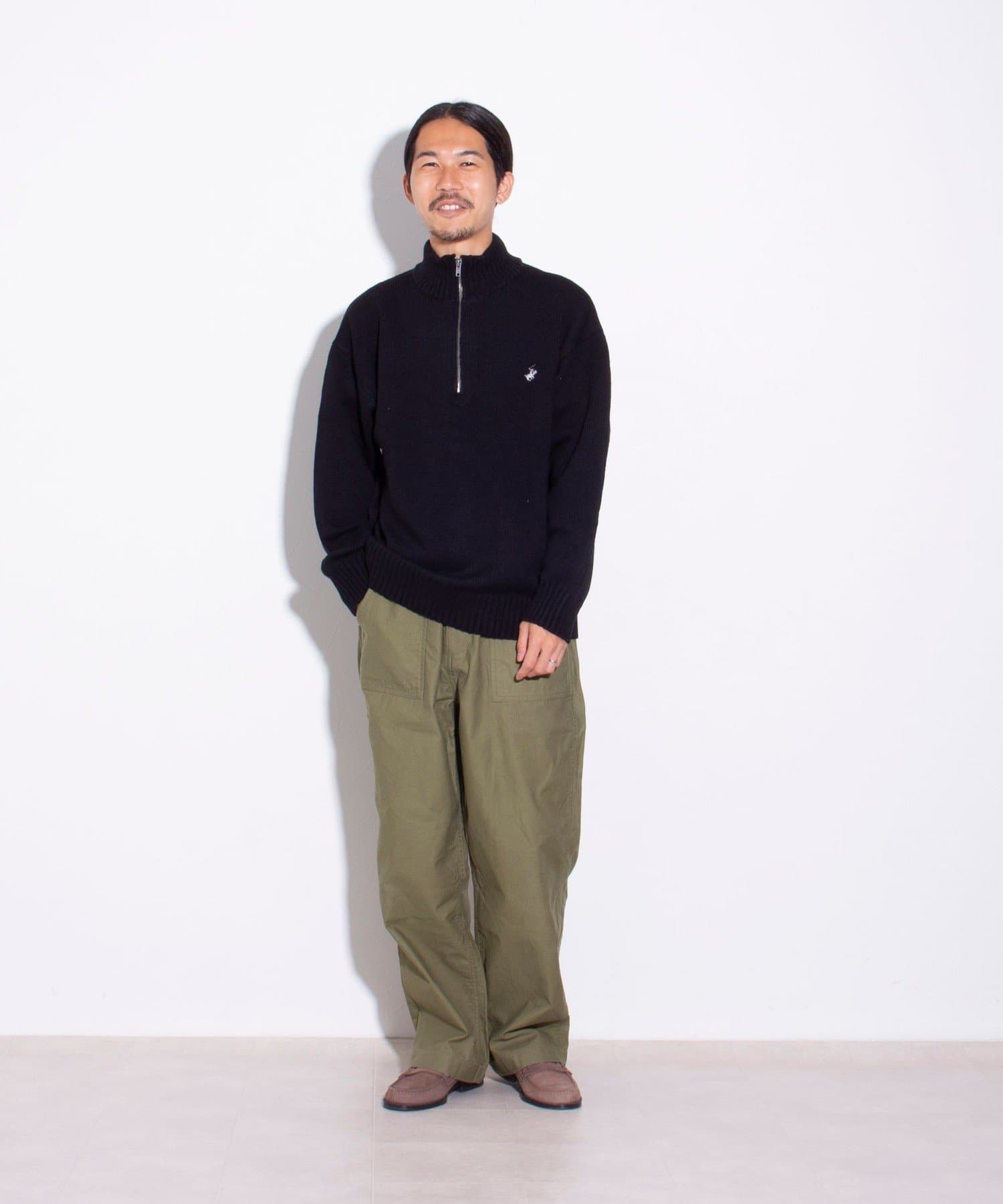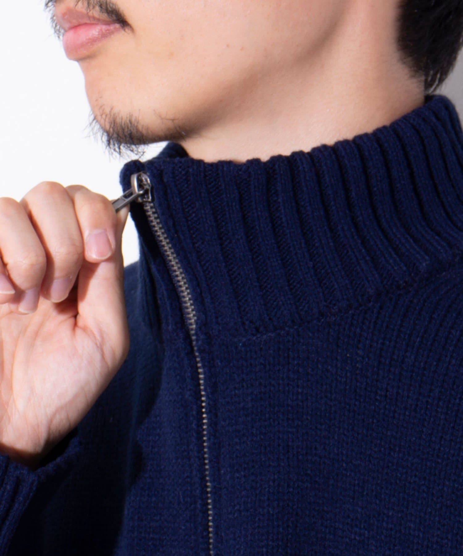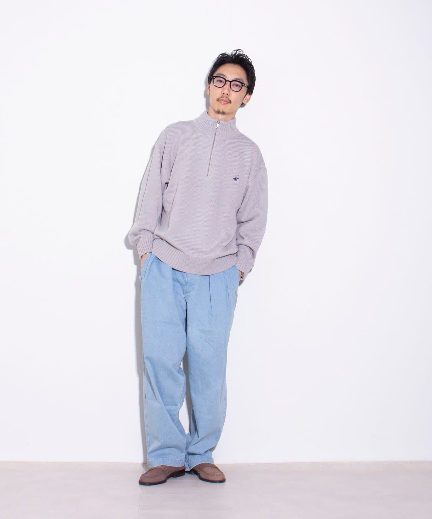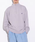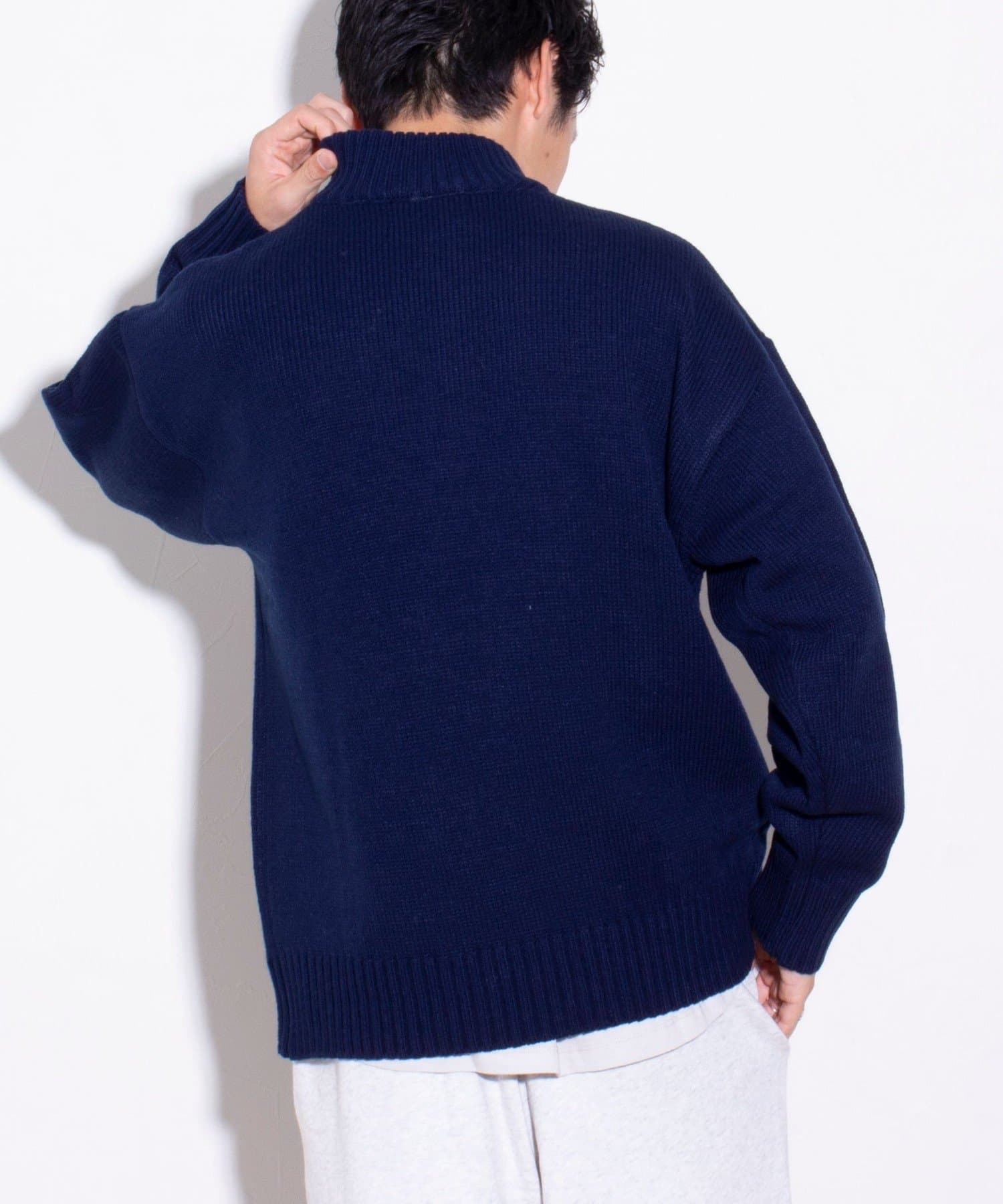 極めてシンプルにミニマルなワッペンを胸元へワンポイント施したハーフジップニット。
