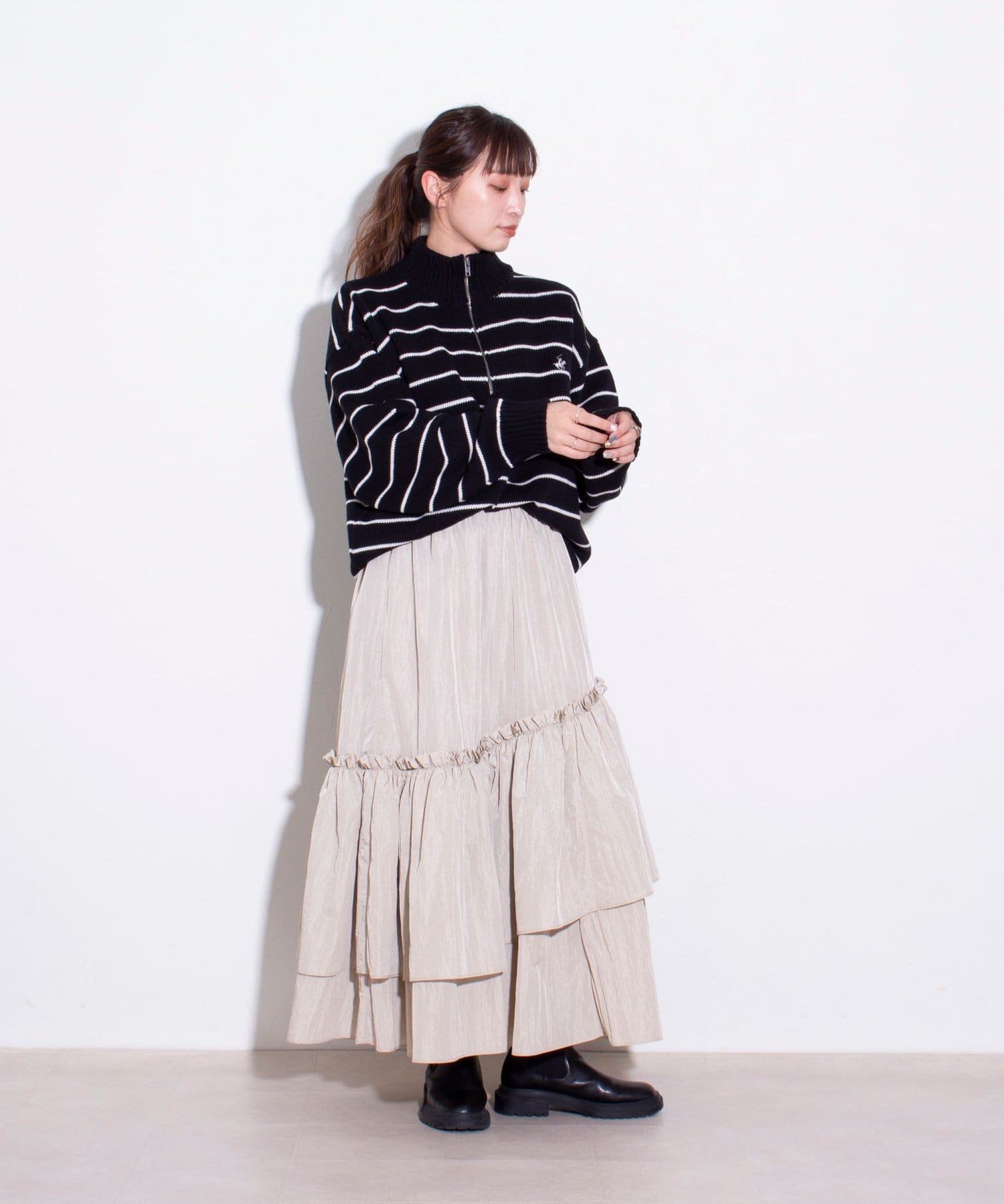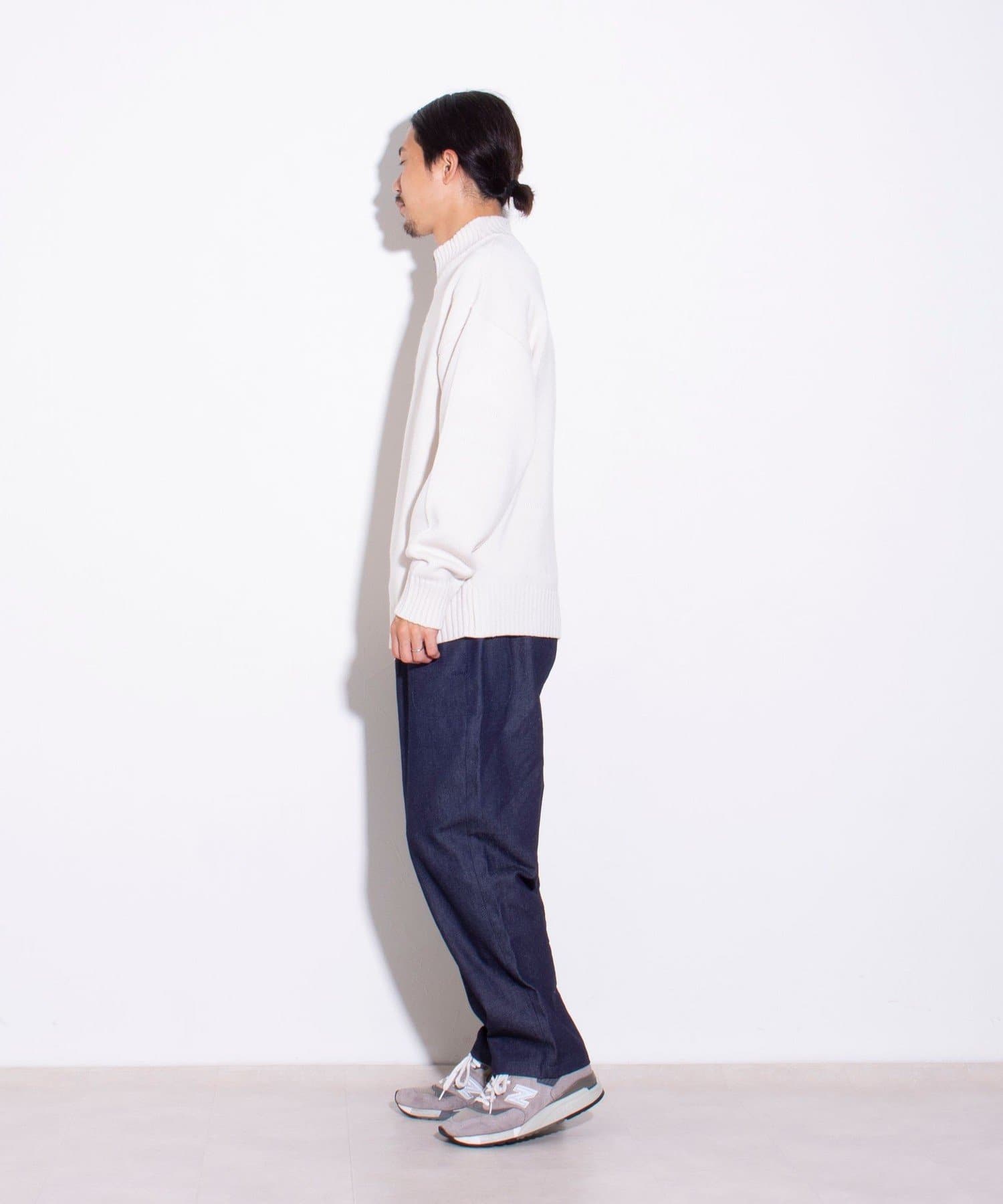 今の気分にピッタリなリラックス感あるサイズフィットにしており、女性の方にもメンズライクな着こなしに使っていただけるニットです。