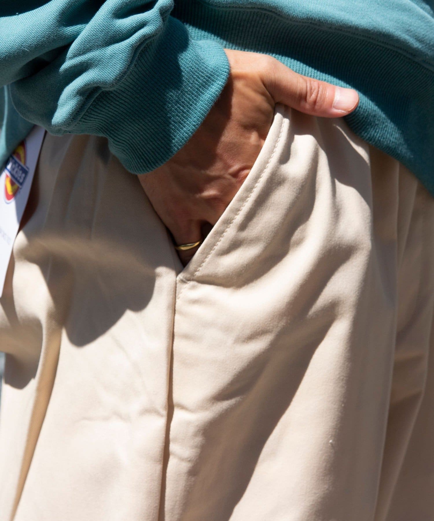 深めの股上がリラックス感のあるワイドシルエットなので、程よくルーズに仕上がるサイジングに仕上がっています。