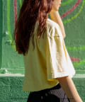 女性はハイウエストデニムやベイカーパンツにタックインしてバランスをとったり、大人っぽくレザーのミニバッグやヒールブーツなどで外すスタイリングがおすすめです。