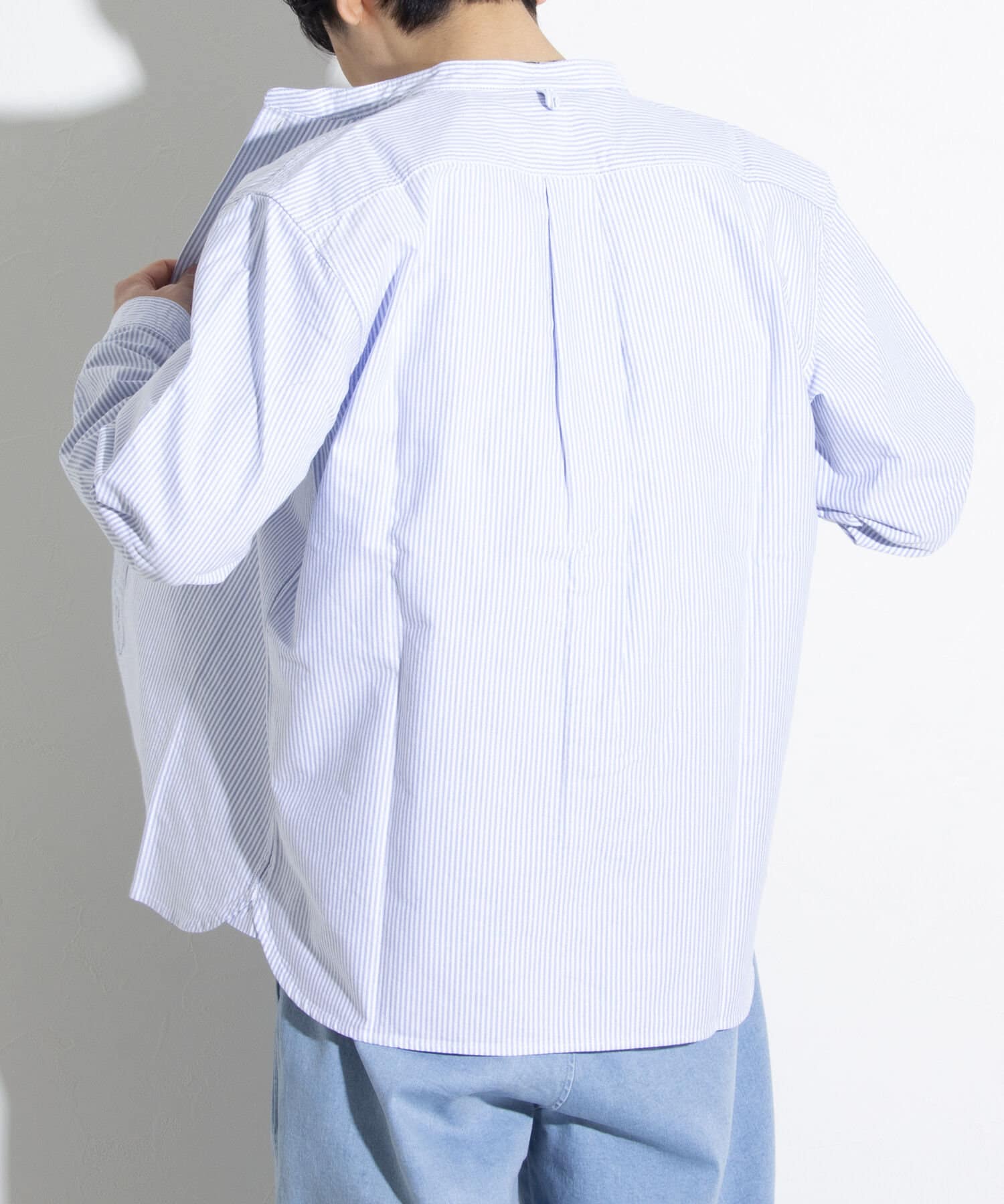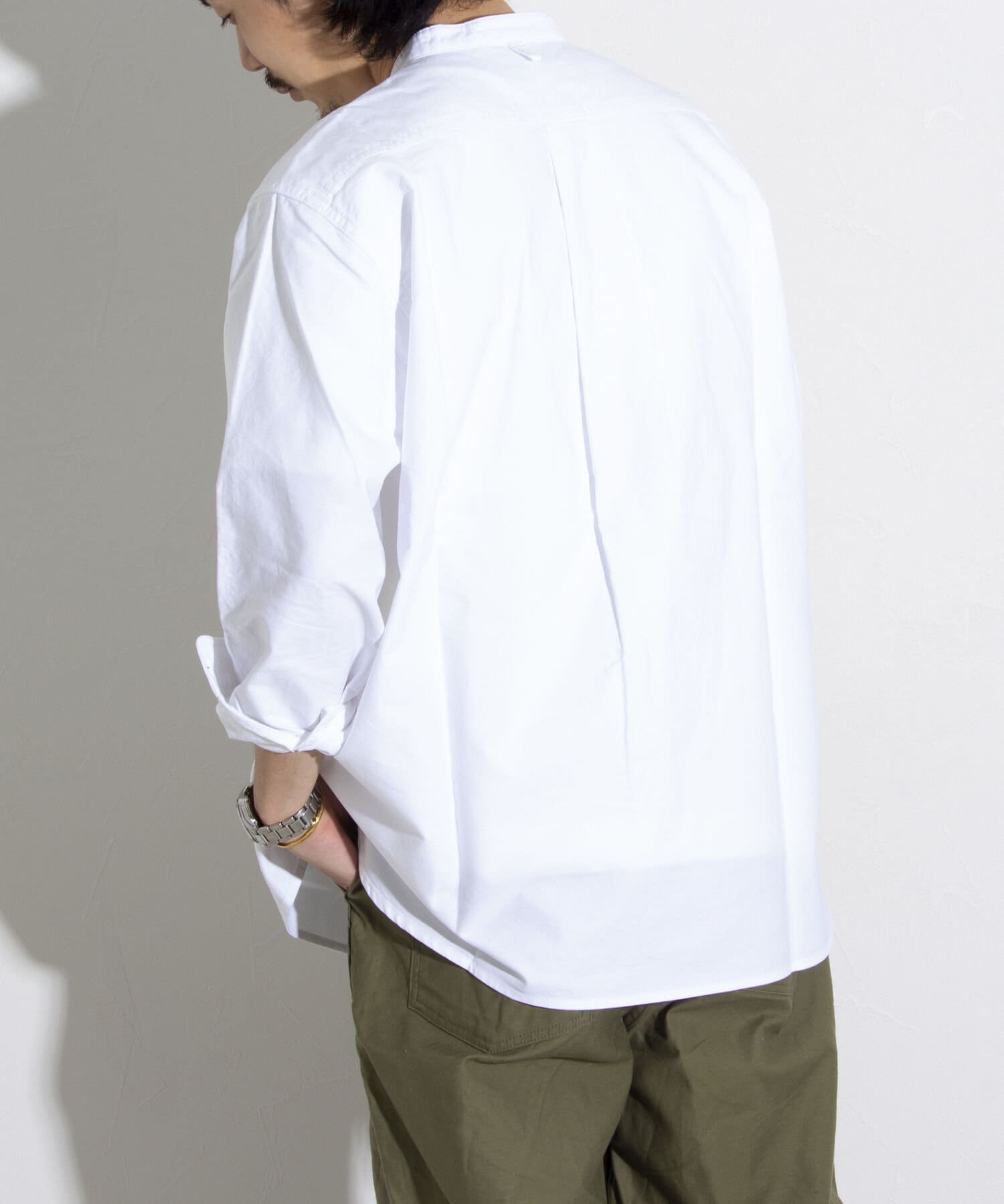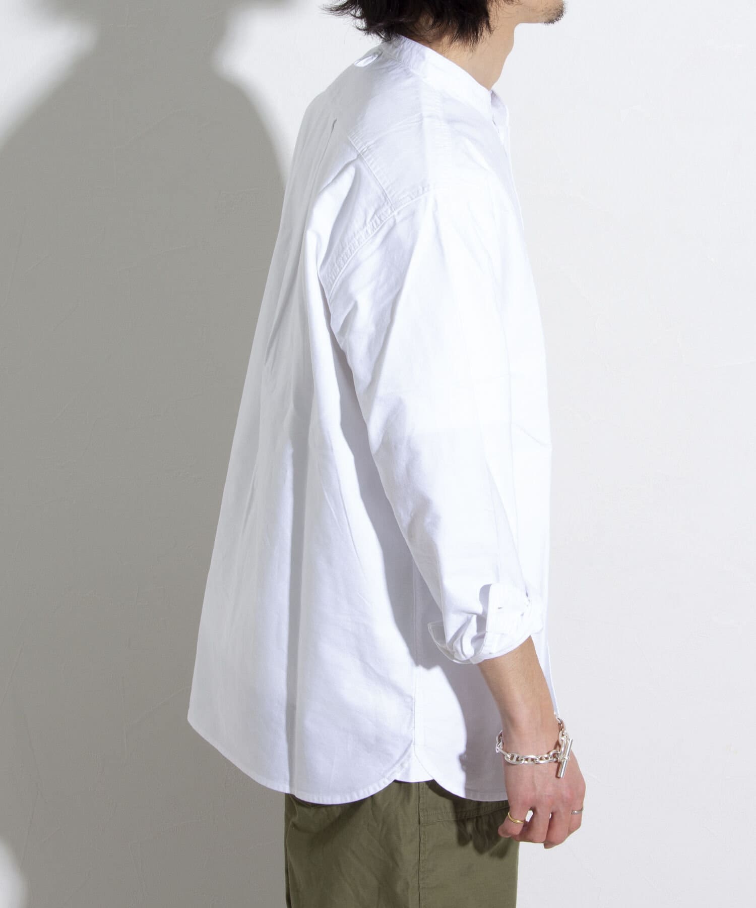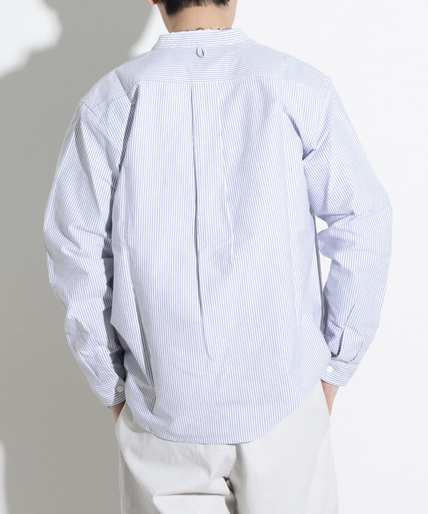 オックスフォード生地を使ったバンドカラーシャツです。
