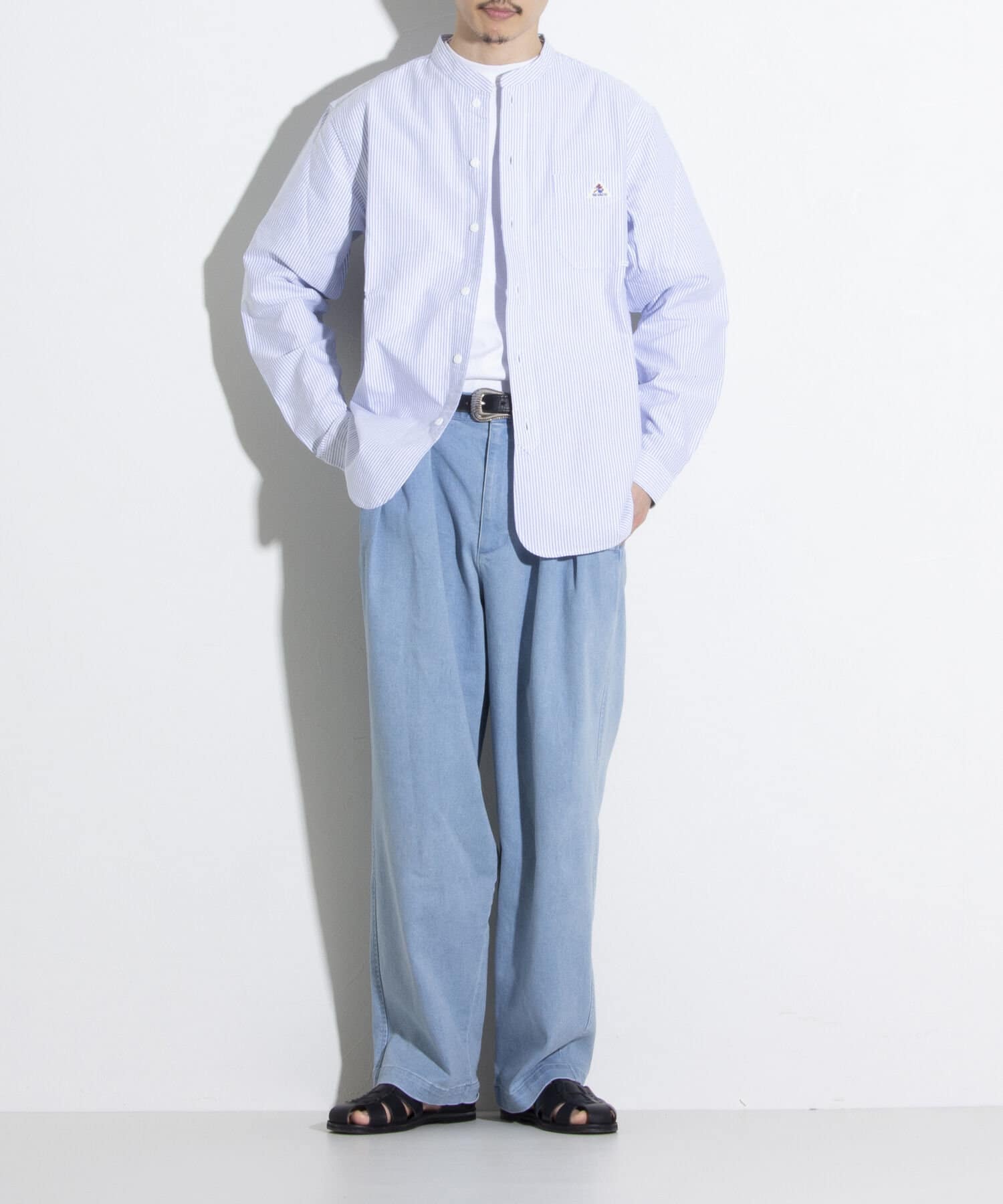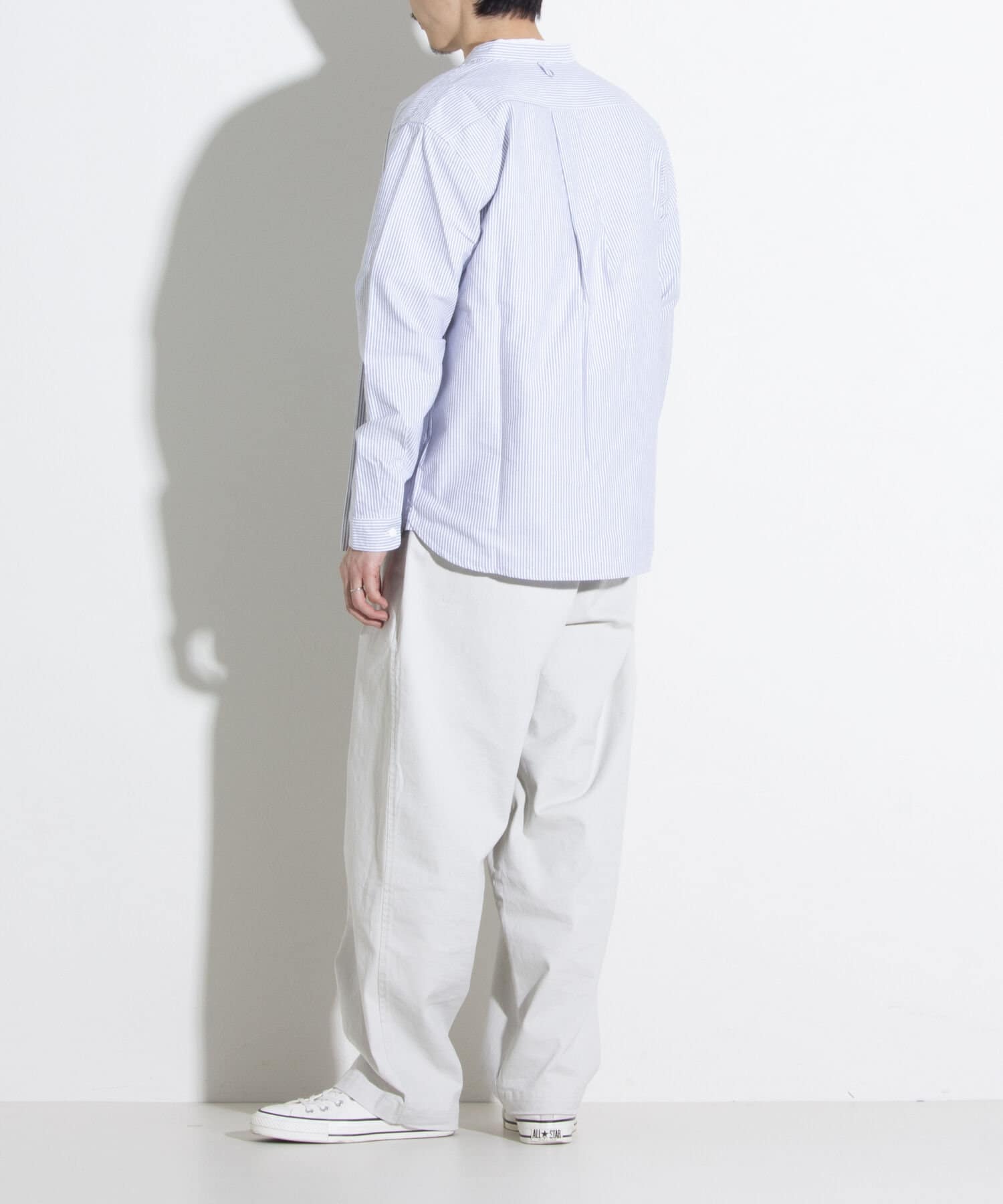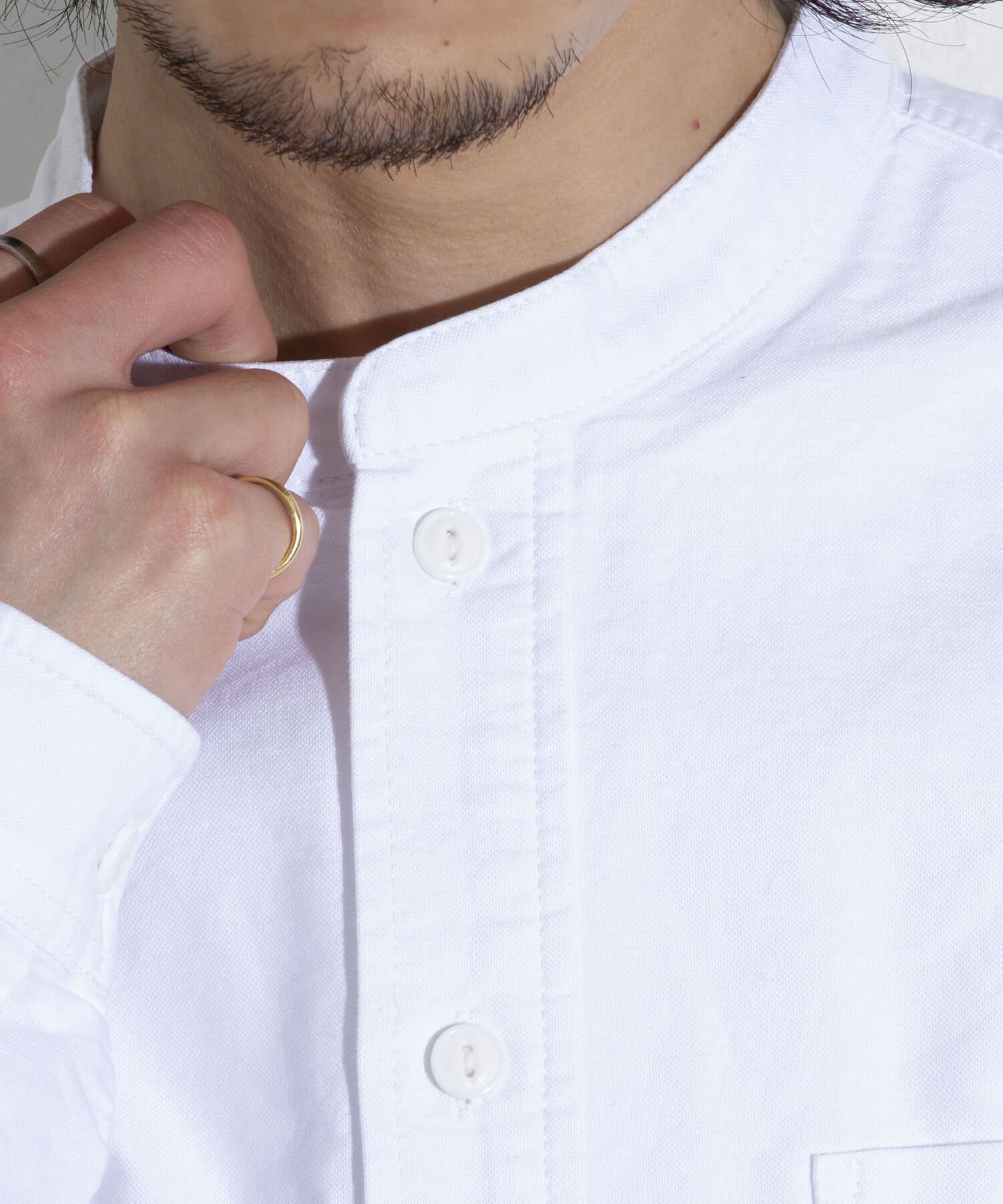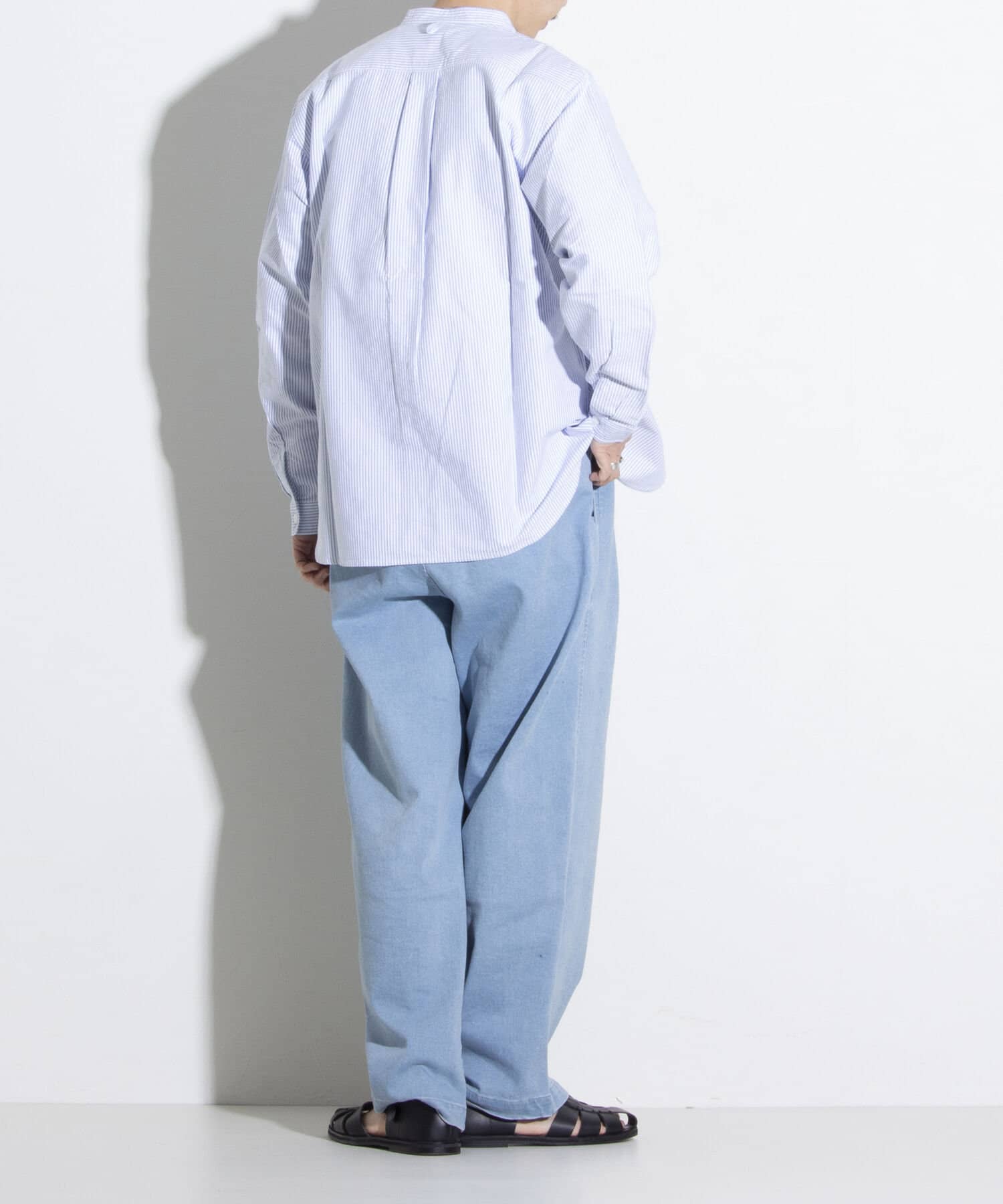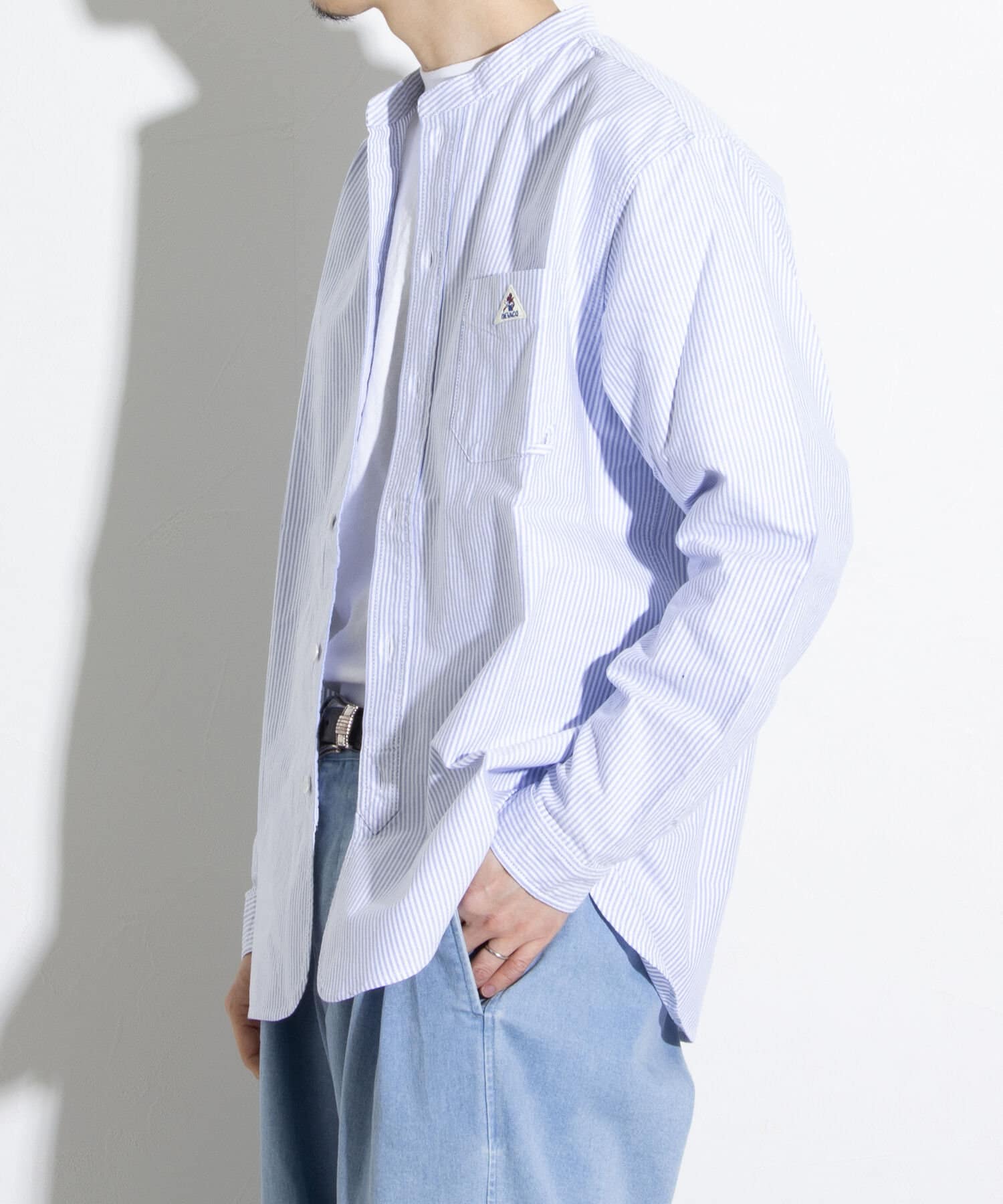 オックスフォード生地を使ったバンドカラーシャツです。