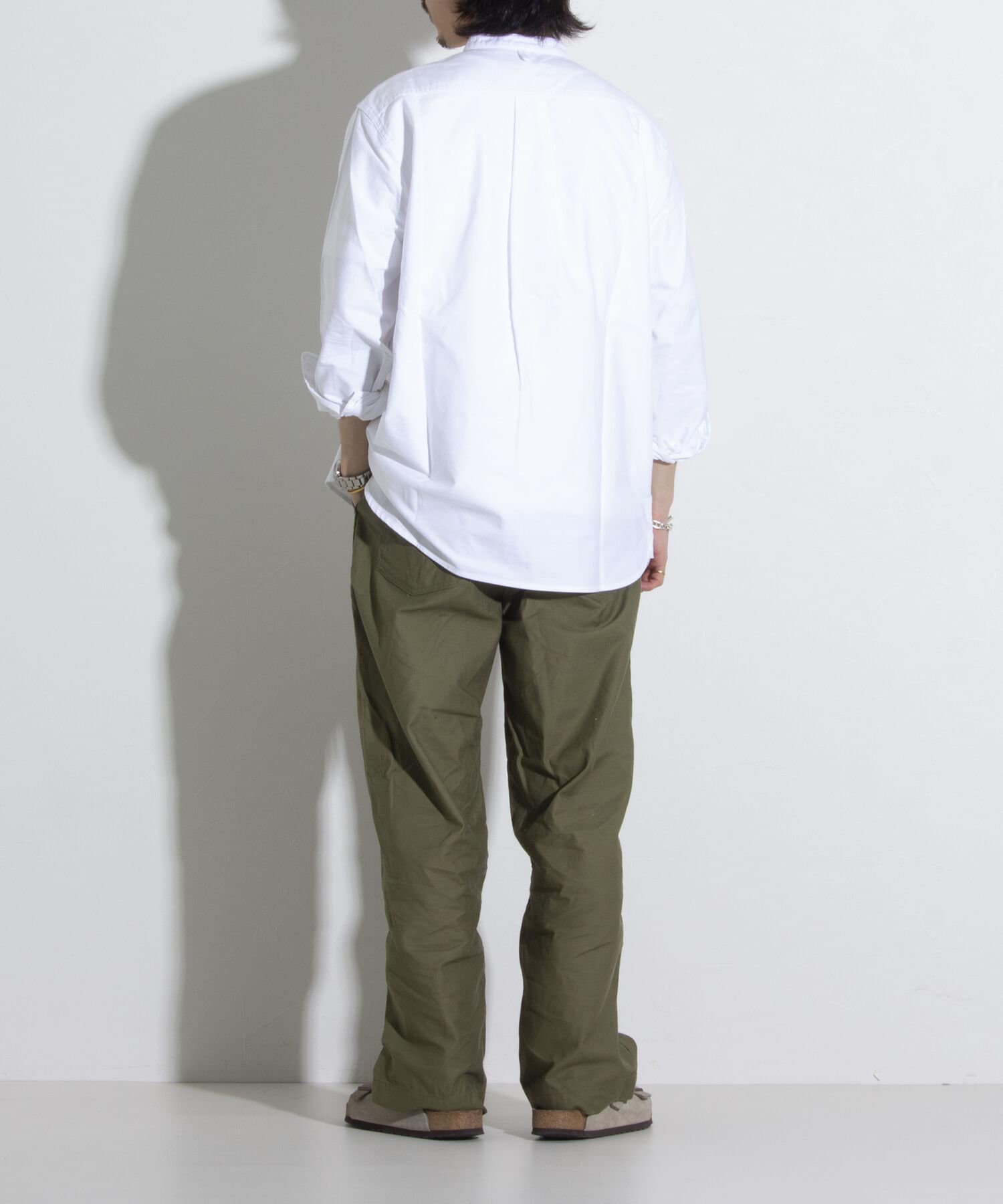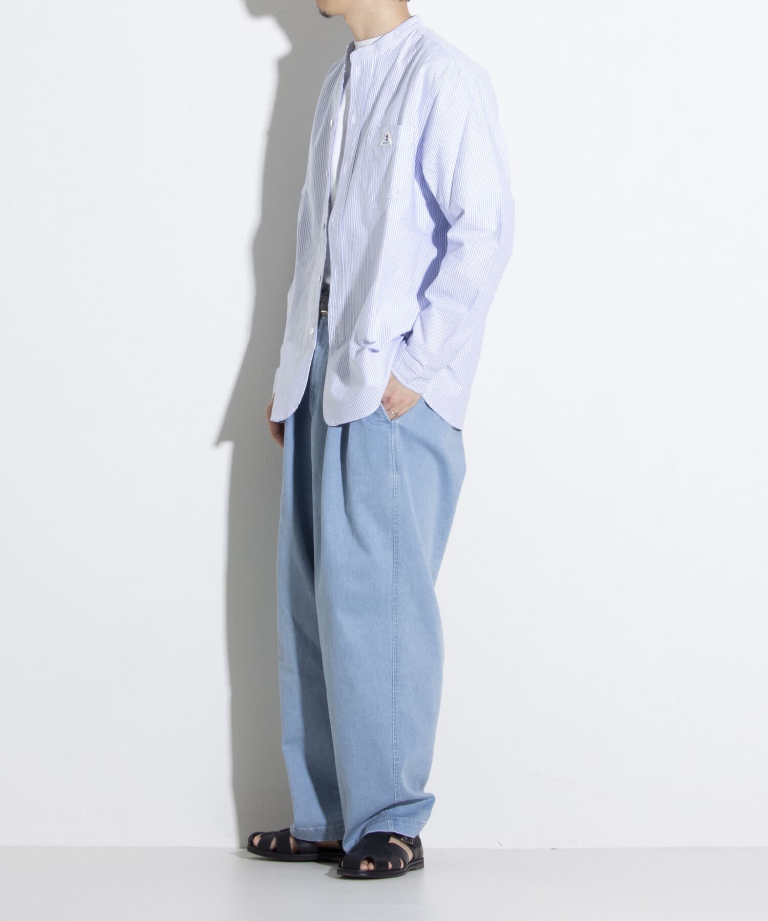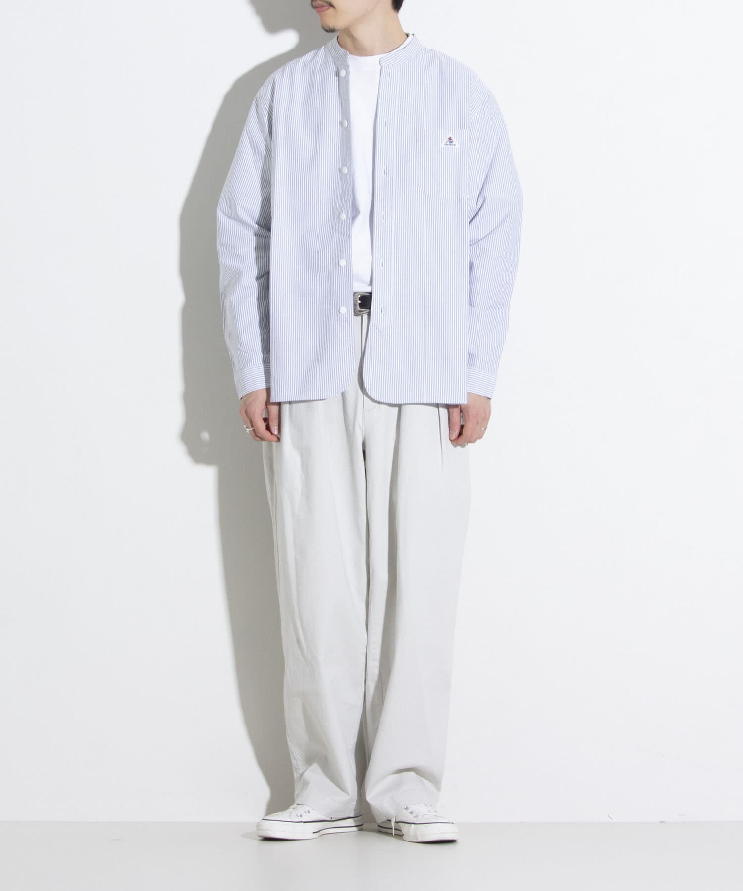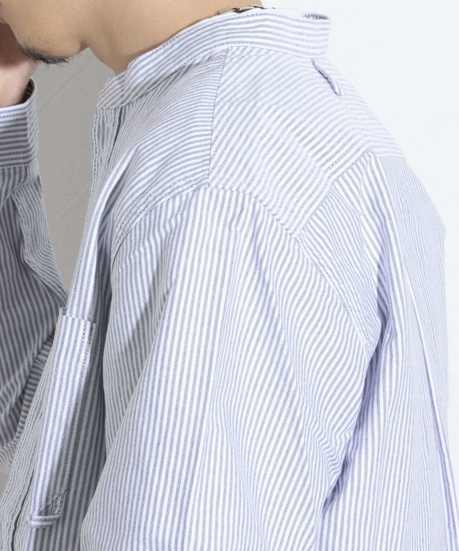 オックスフォード生地を使ったバンドカラーシャツです。