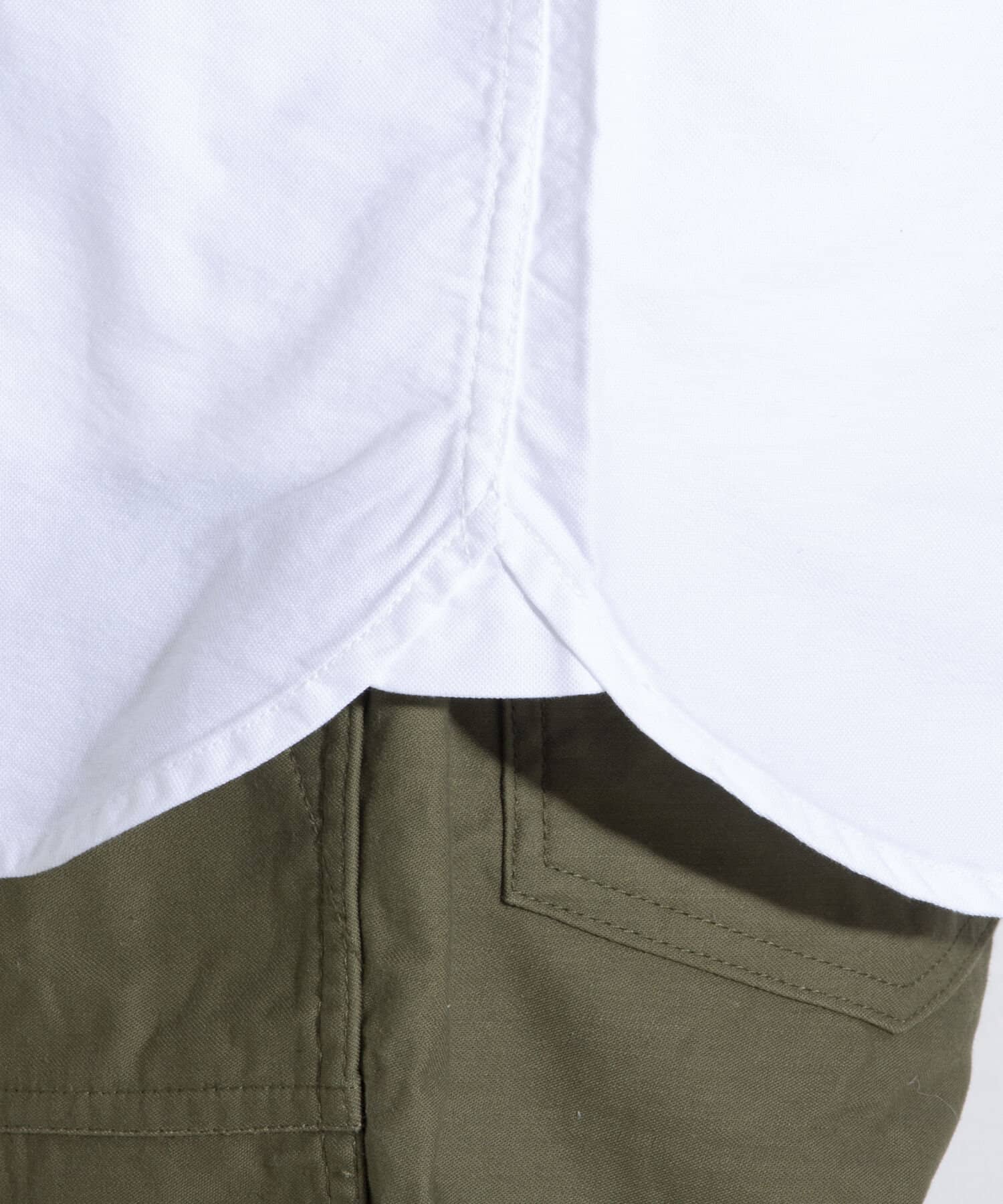 前立てから裾にかけてラウンドしたヴィンテージのシャツに見られるデザインを採用。