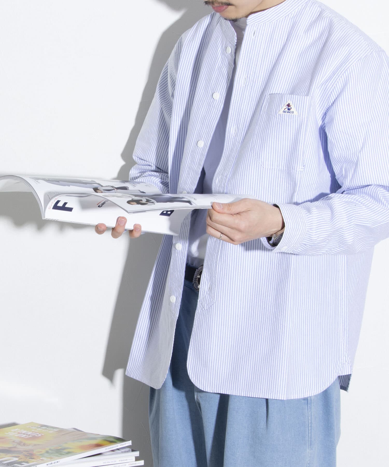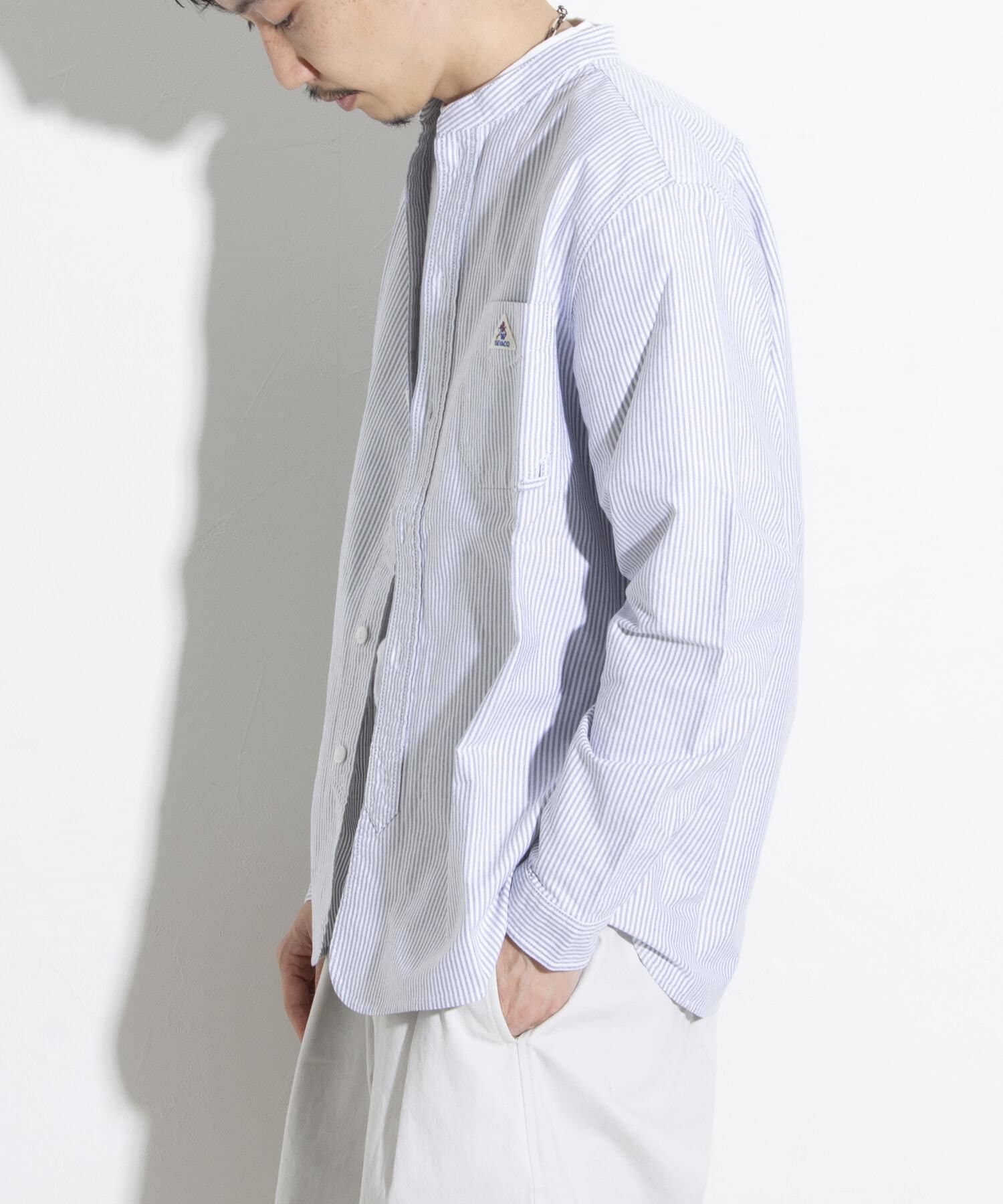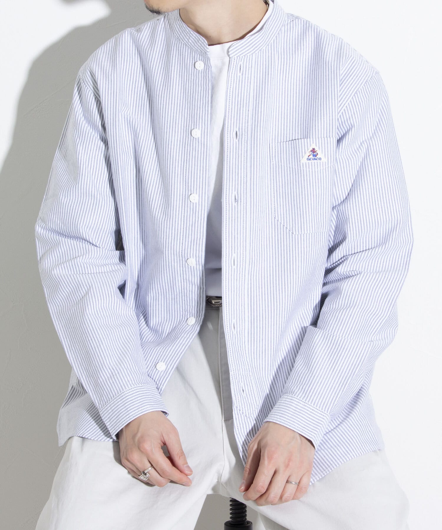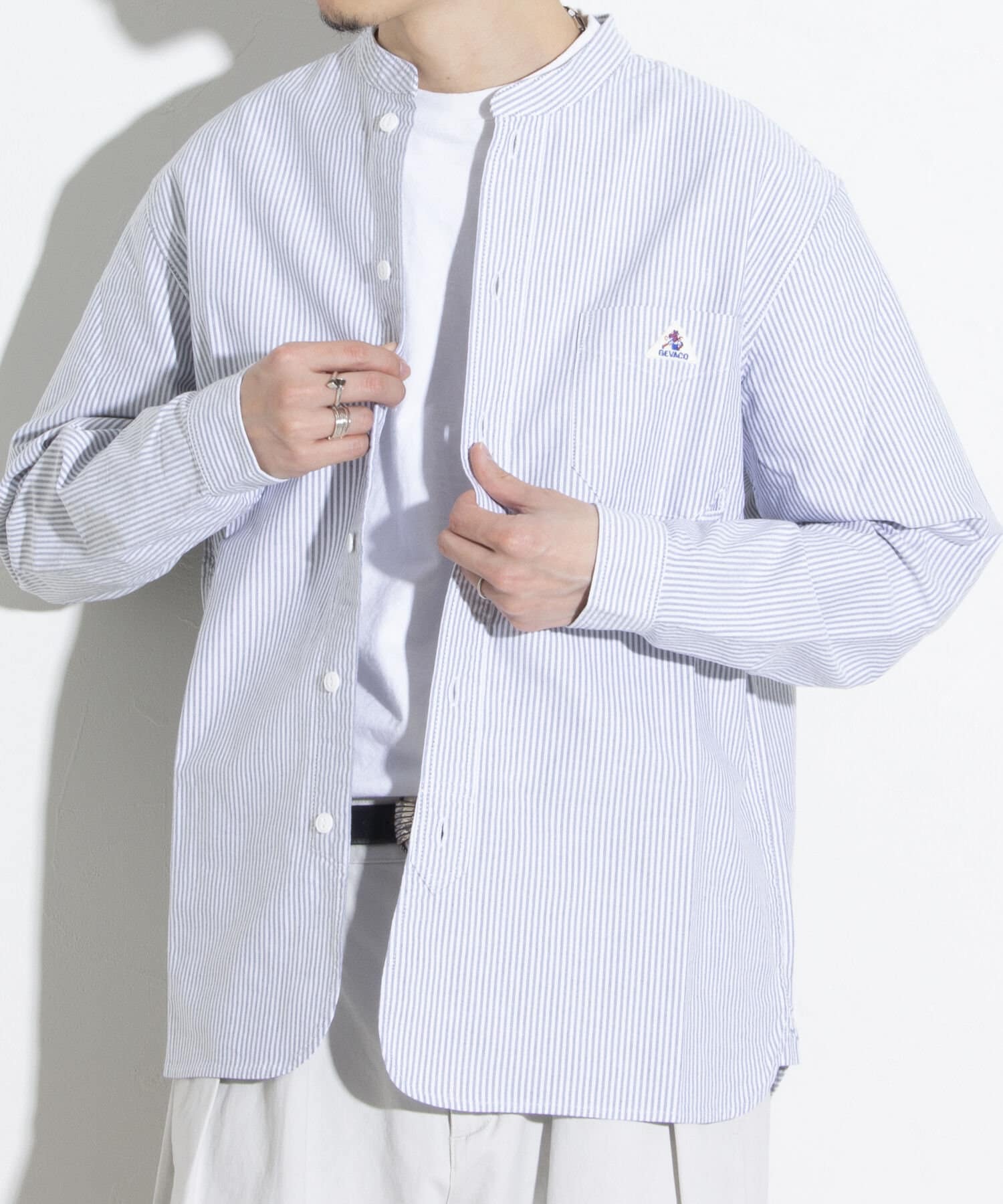 【GEVACO】オックスバンドカラー長袖シャツ ノーカラーシャツ