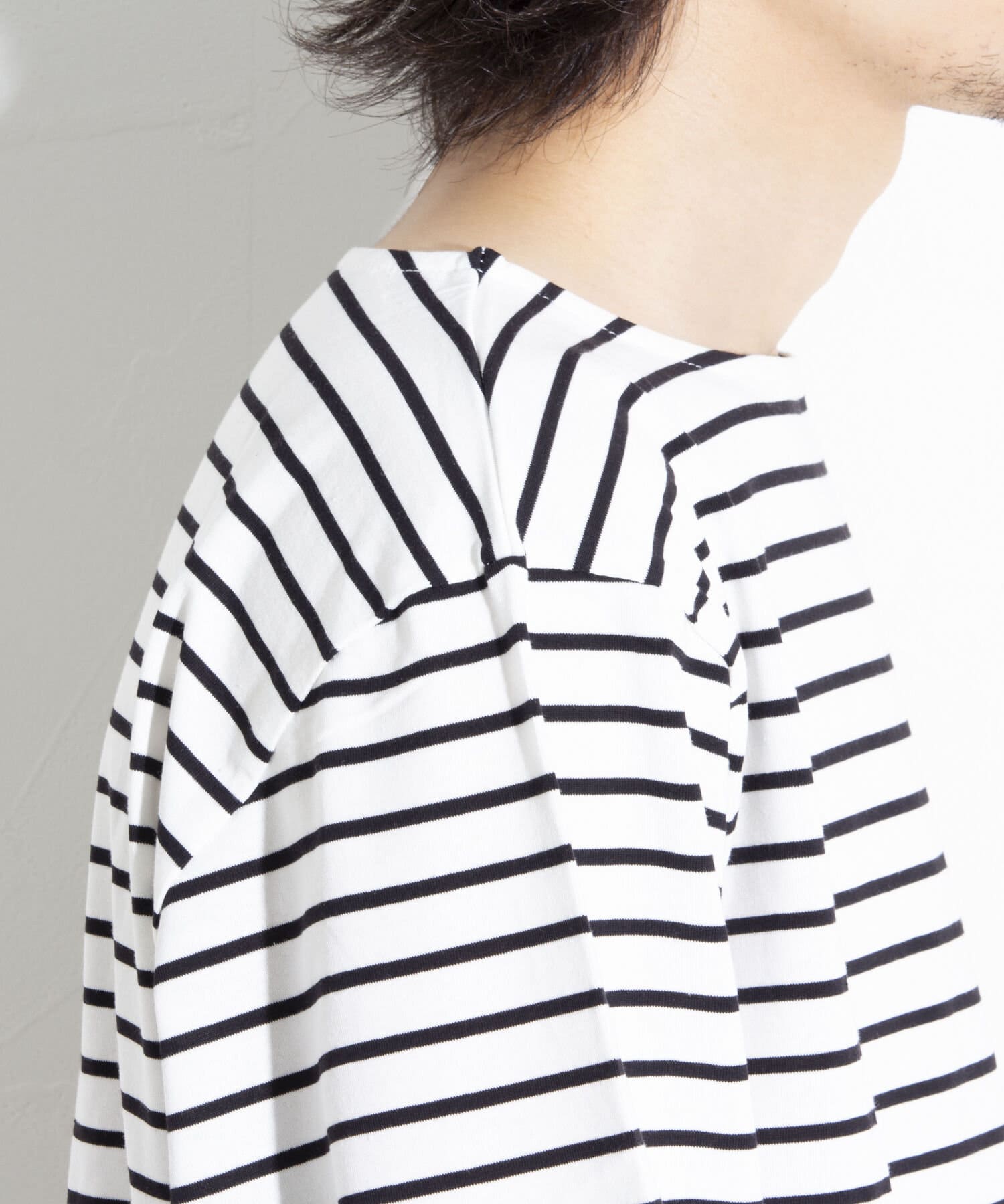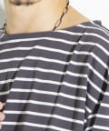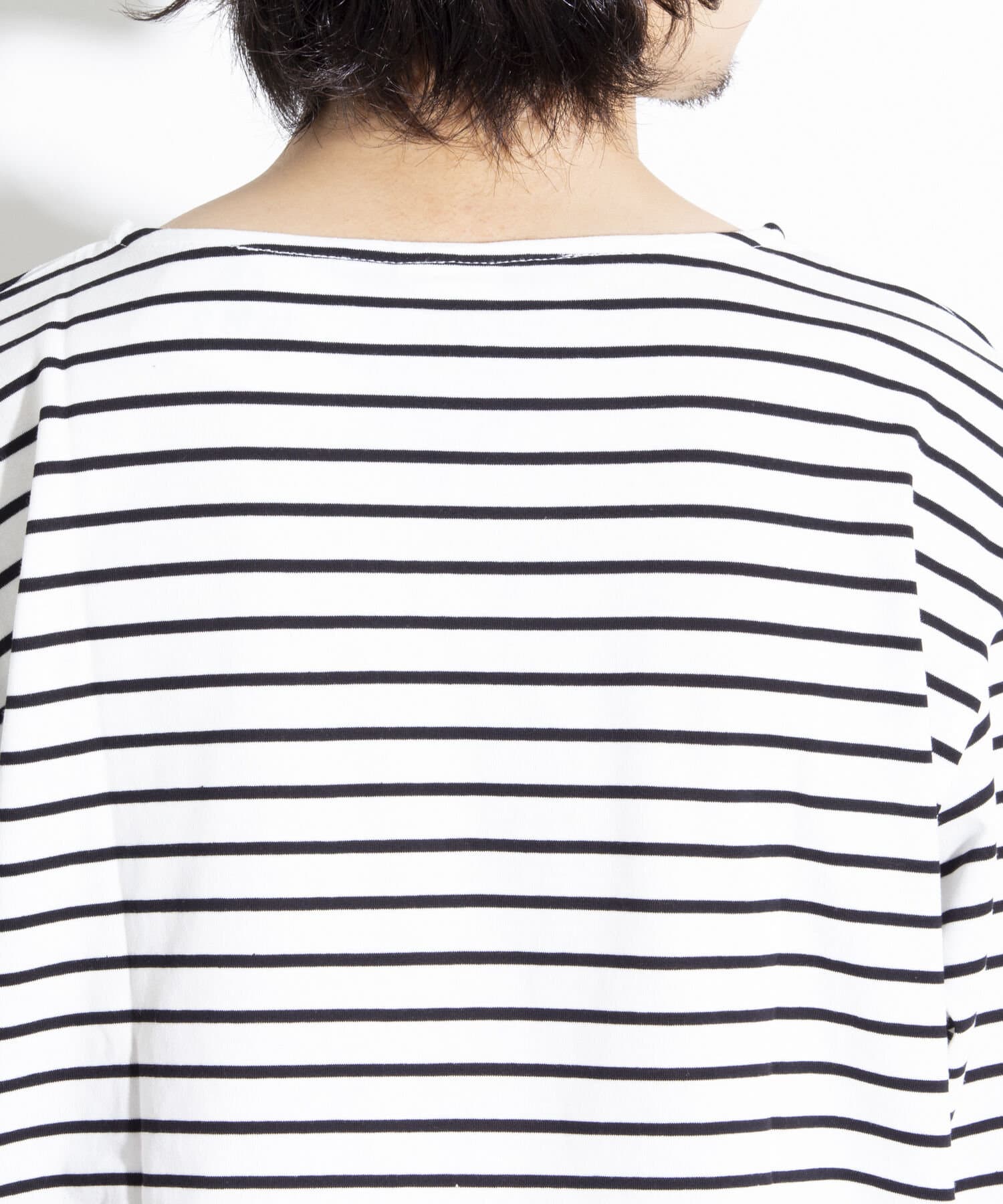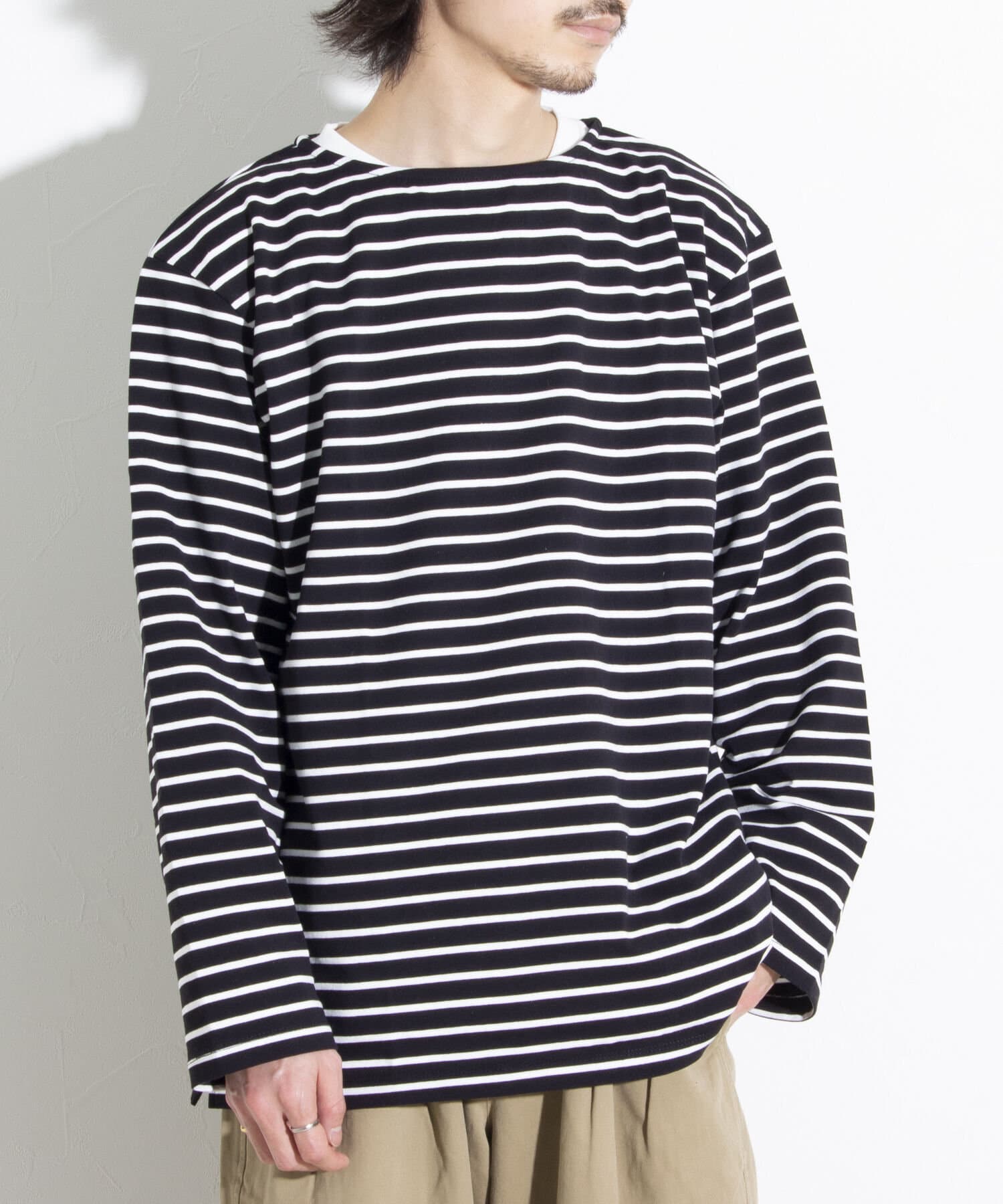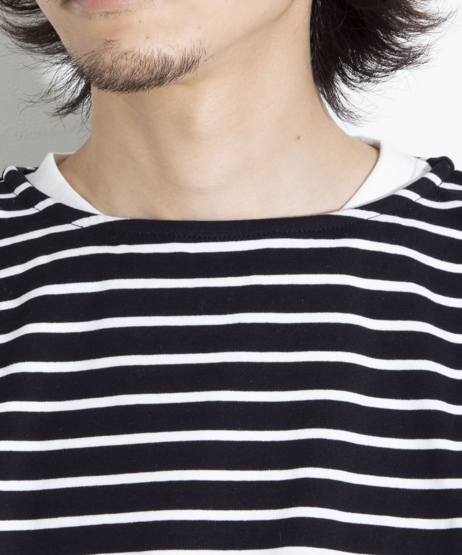 サラッとした軽い生地感で仕上げたボートネック型のバスクシャツ。