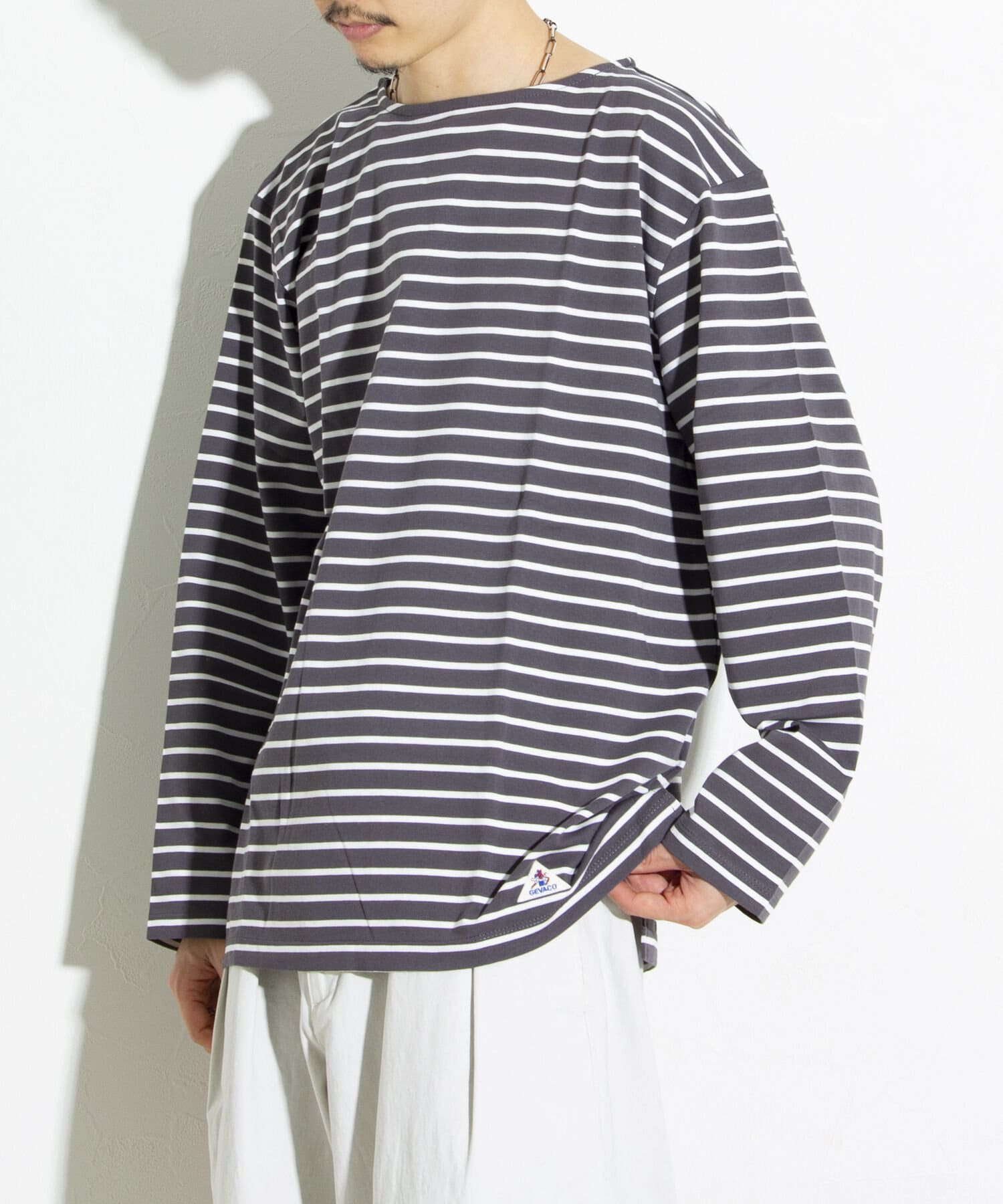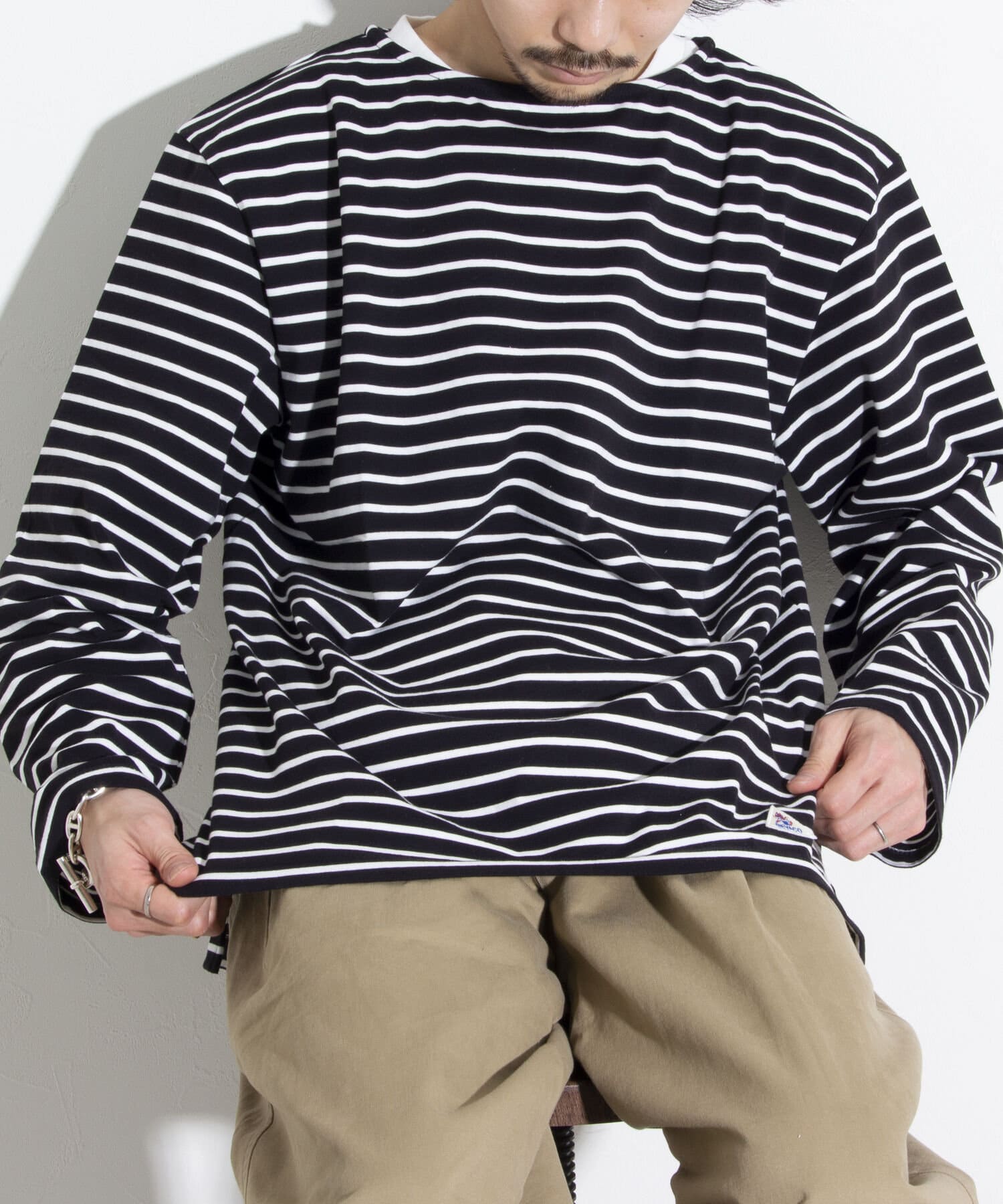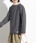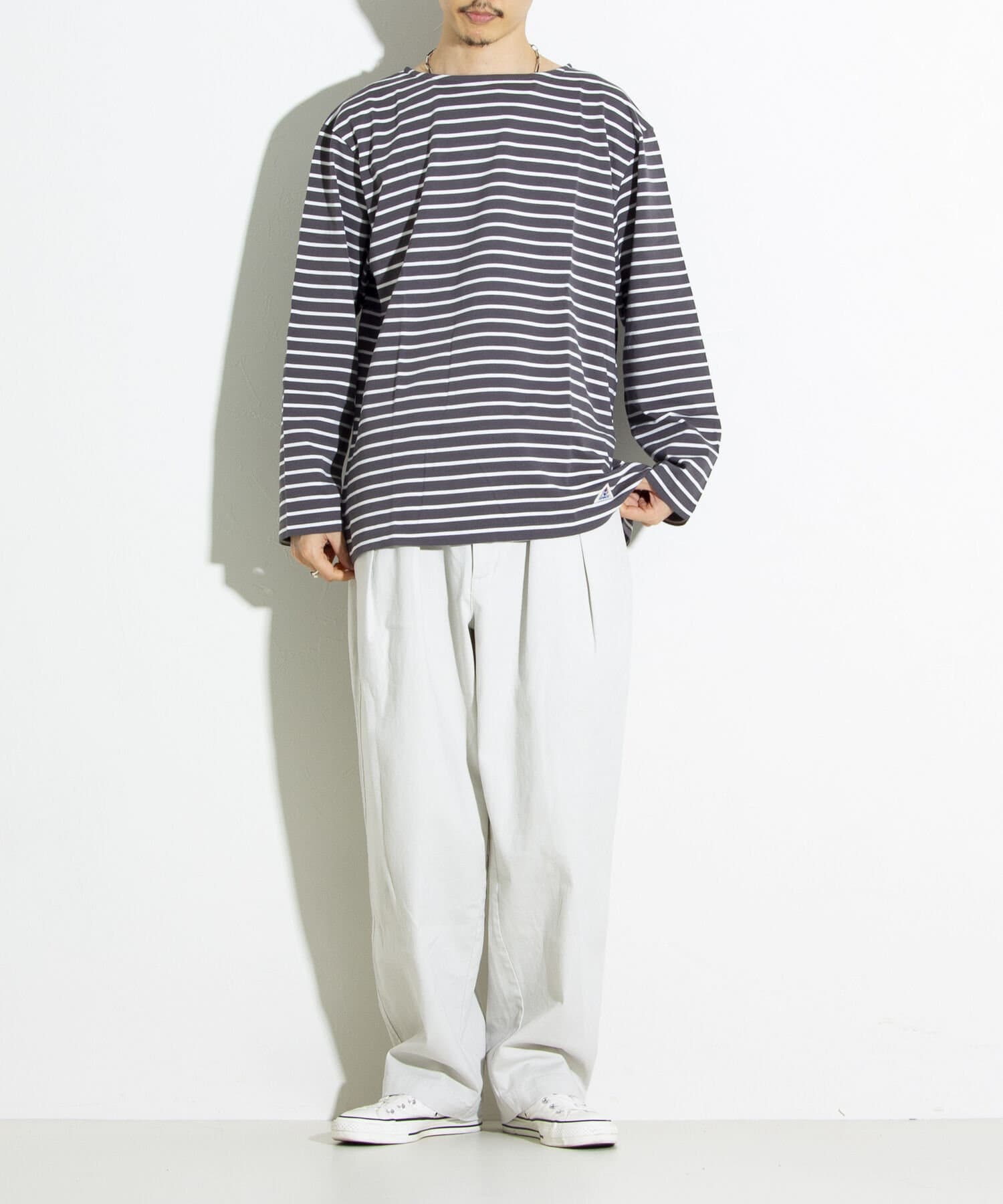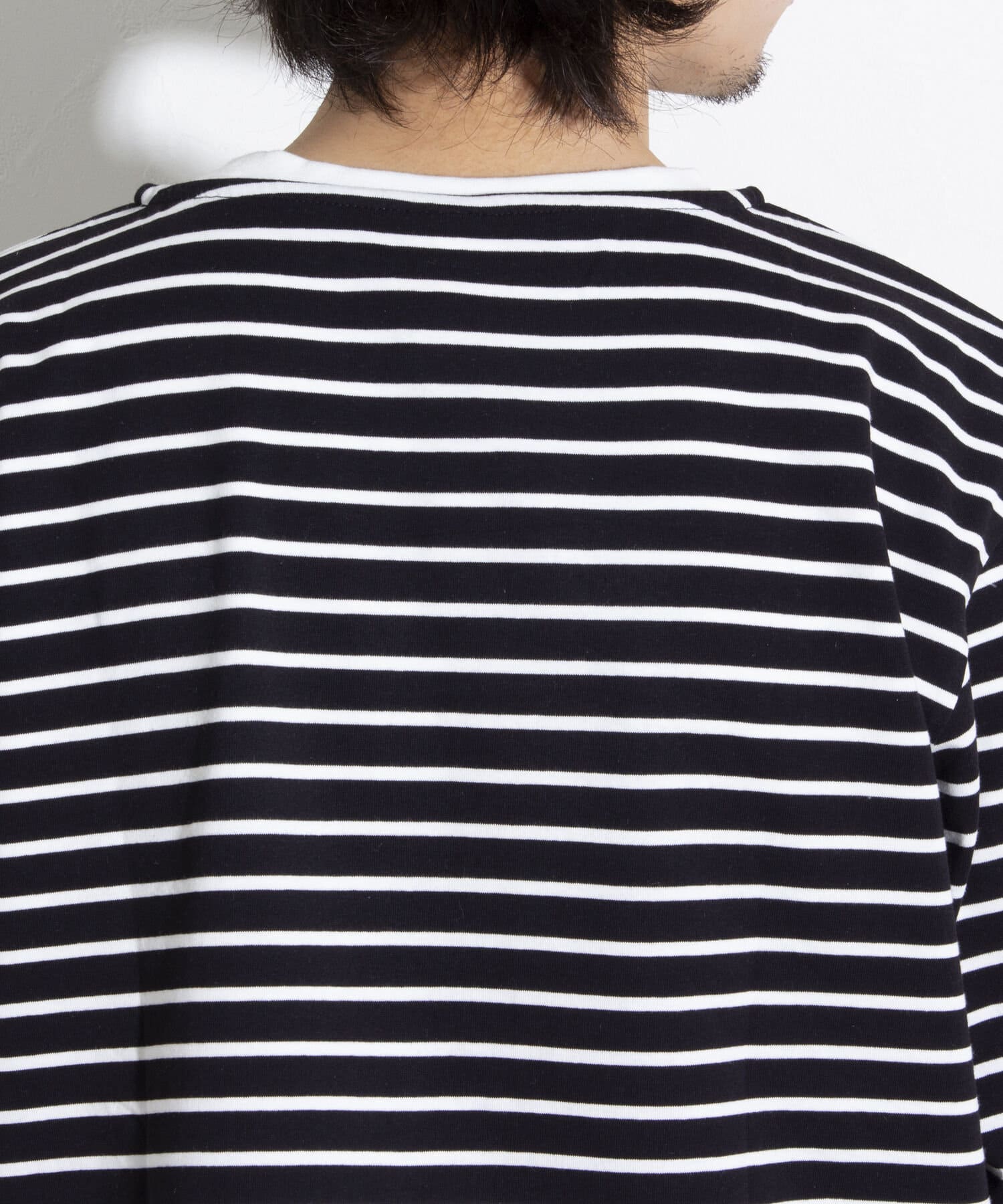 サラッとした軽い生地感で仕上げたボートネック型のバスクシャツ。