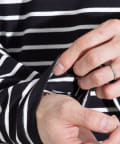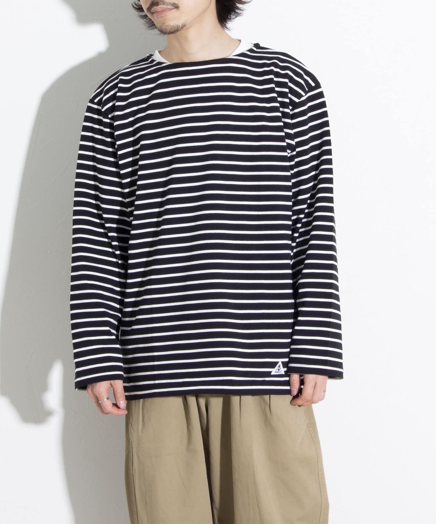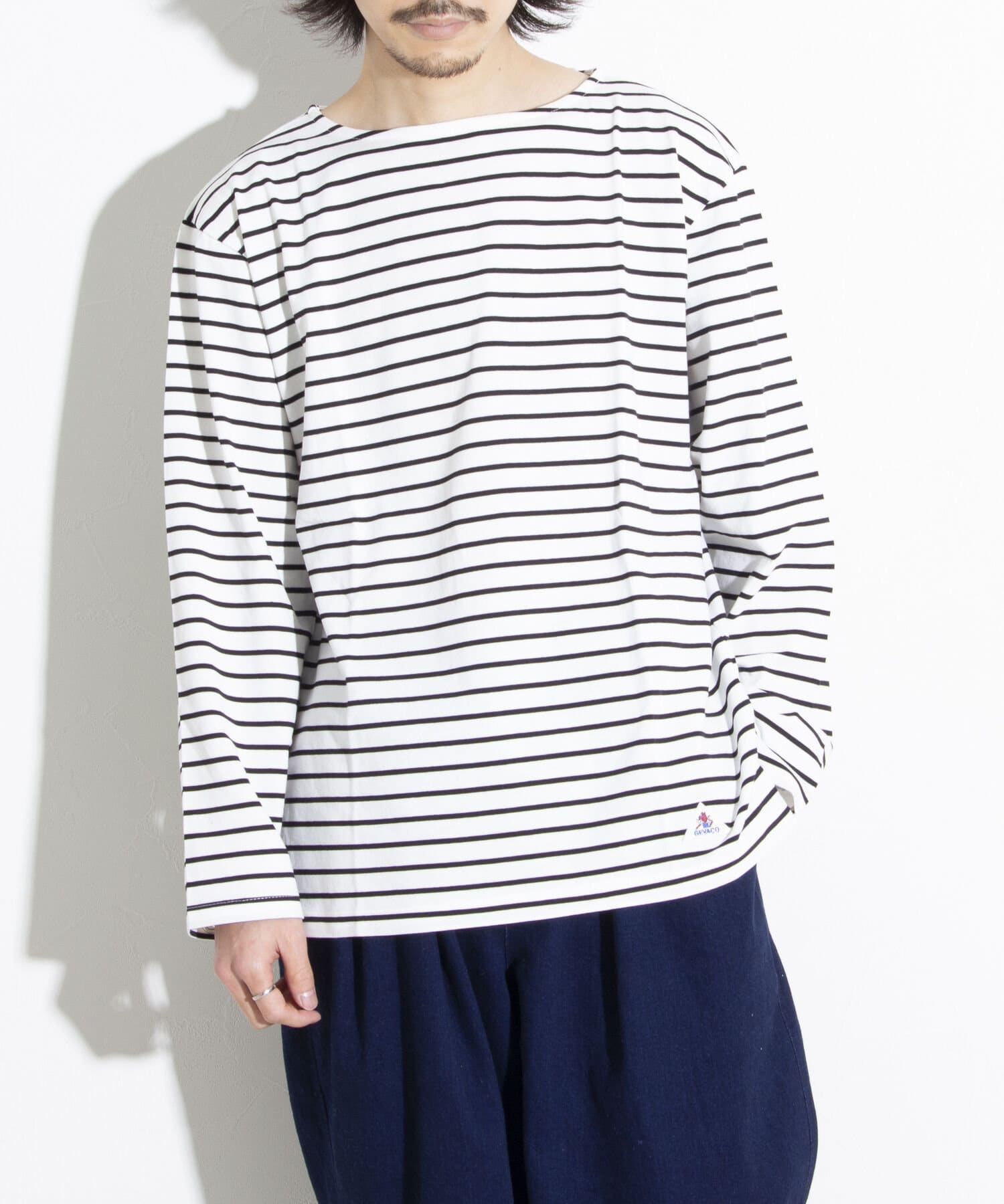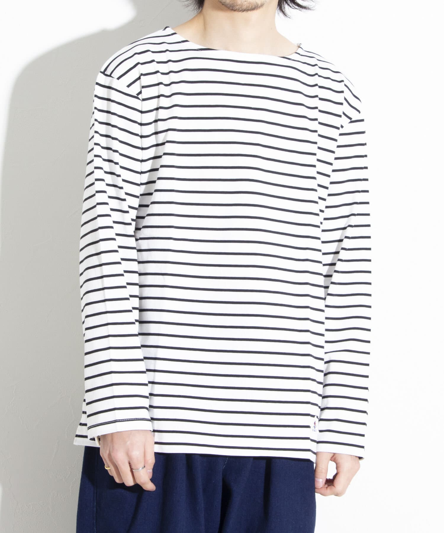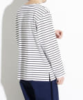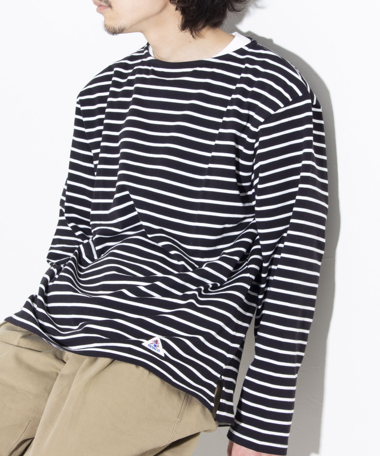 サラッとした軽い生地感で仕上げたボートネック型のバスクシャツ。