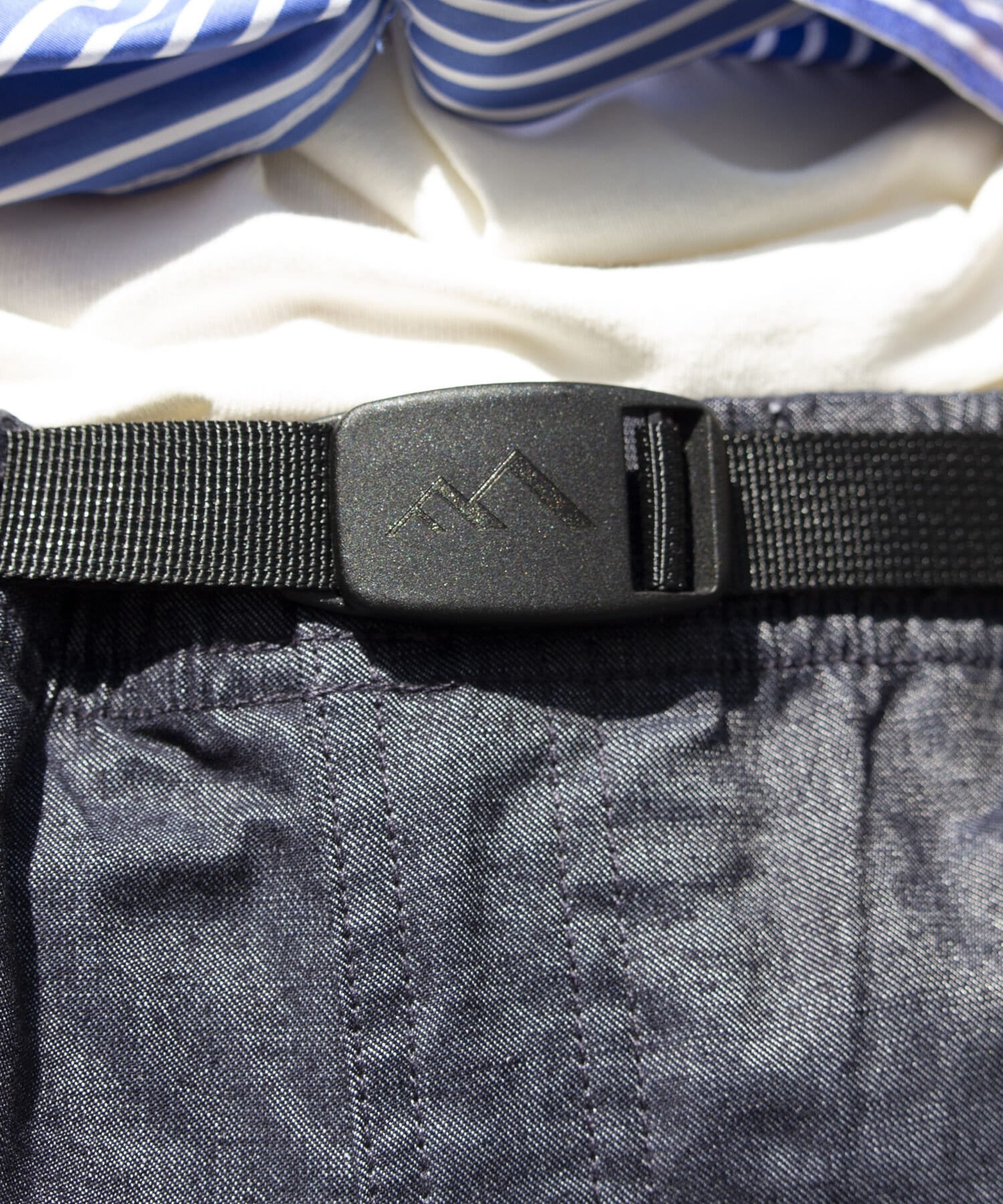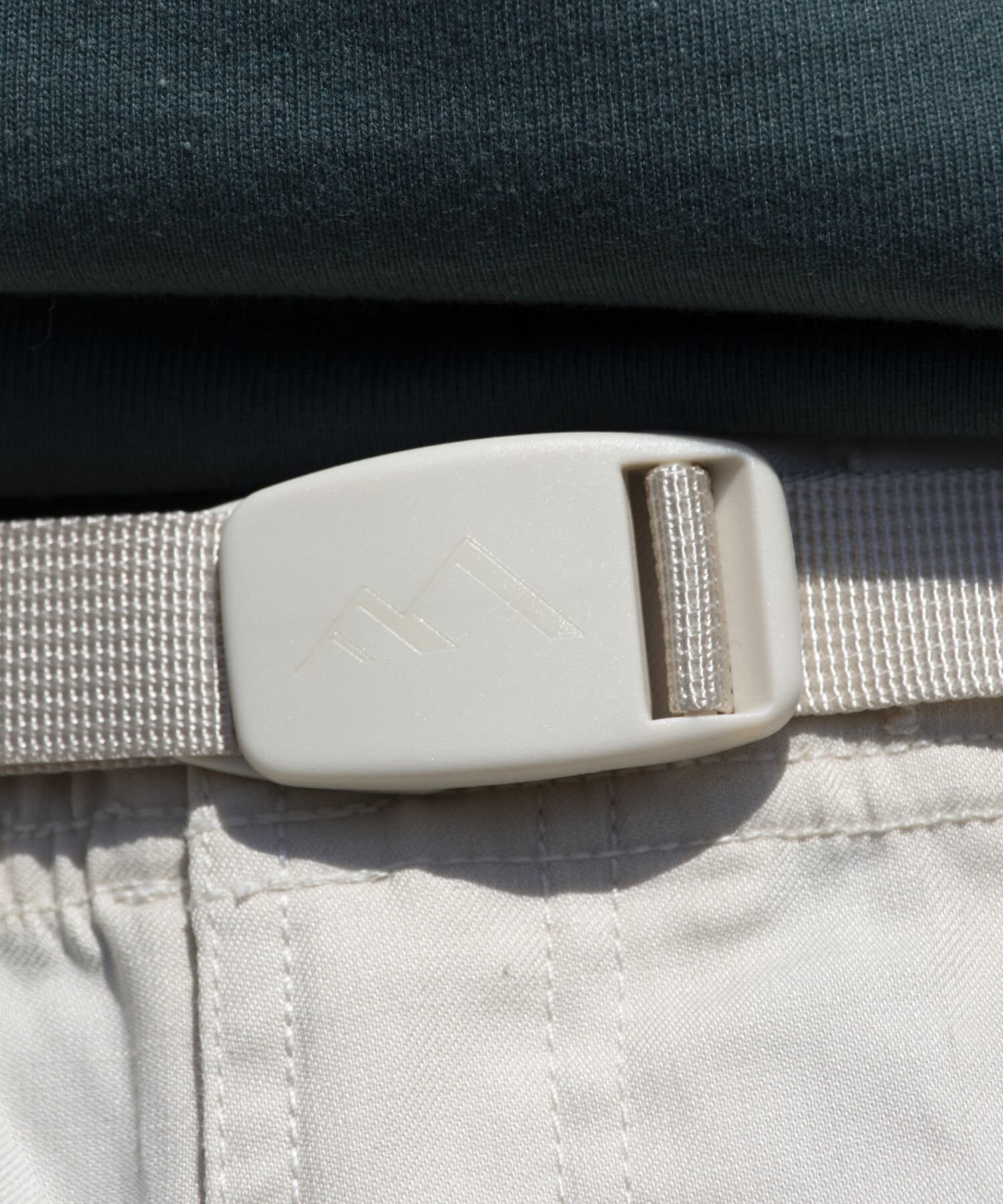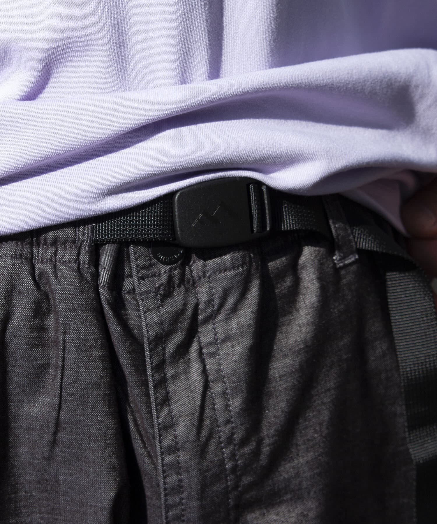ストレッチの効いた、ベルト付きウエストゴム仕様のイージークライミングパンツ。