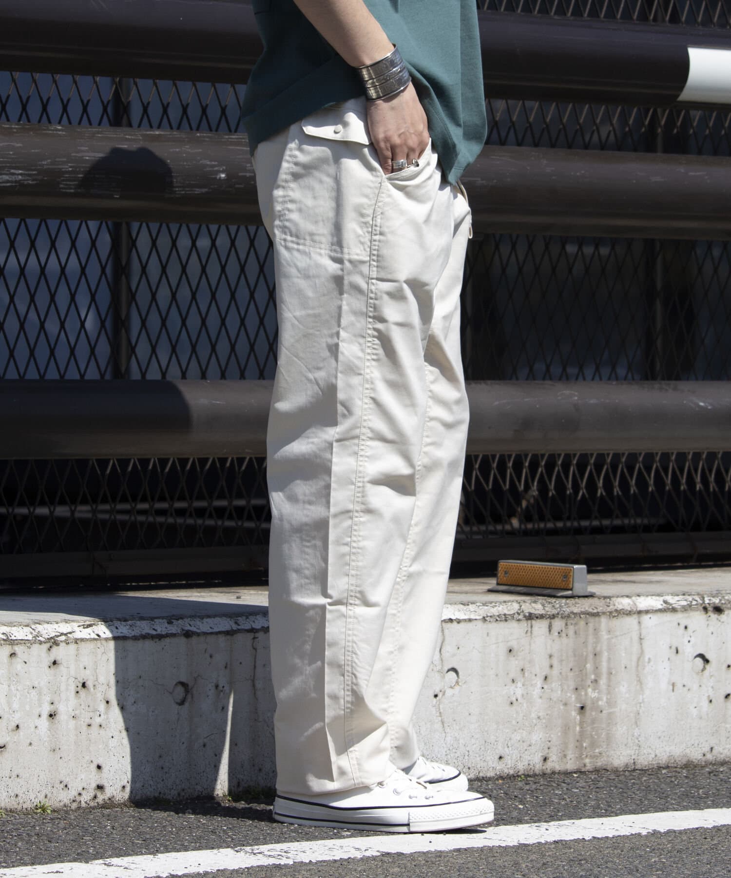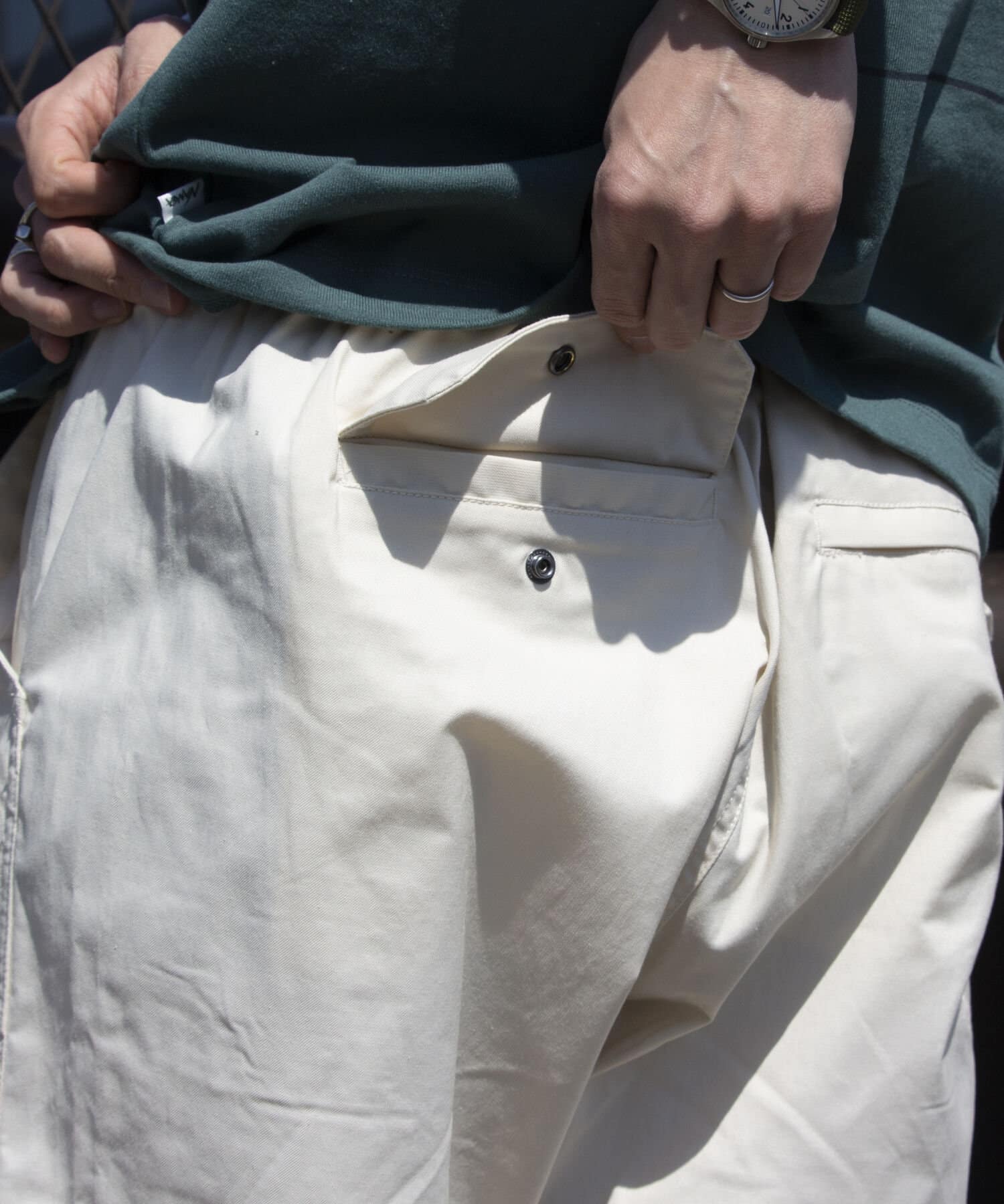 素材 (本体)綿50%,ポリエステル47%,ポリウレタン3%,(ポケット袋布)ポリエステル80%,綿20%