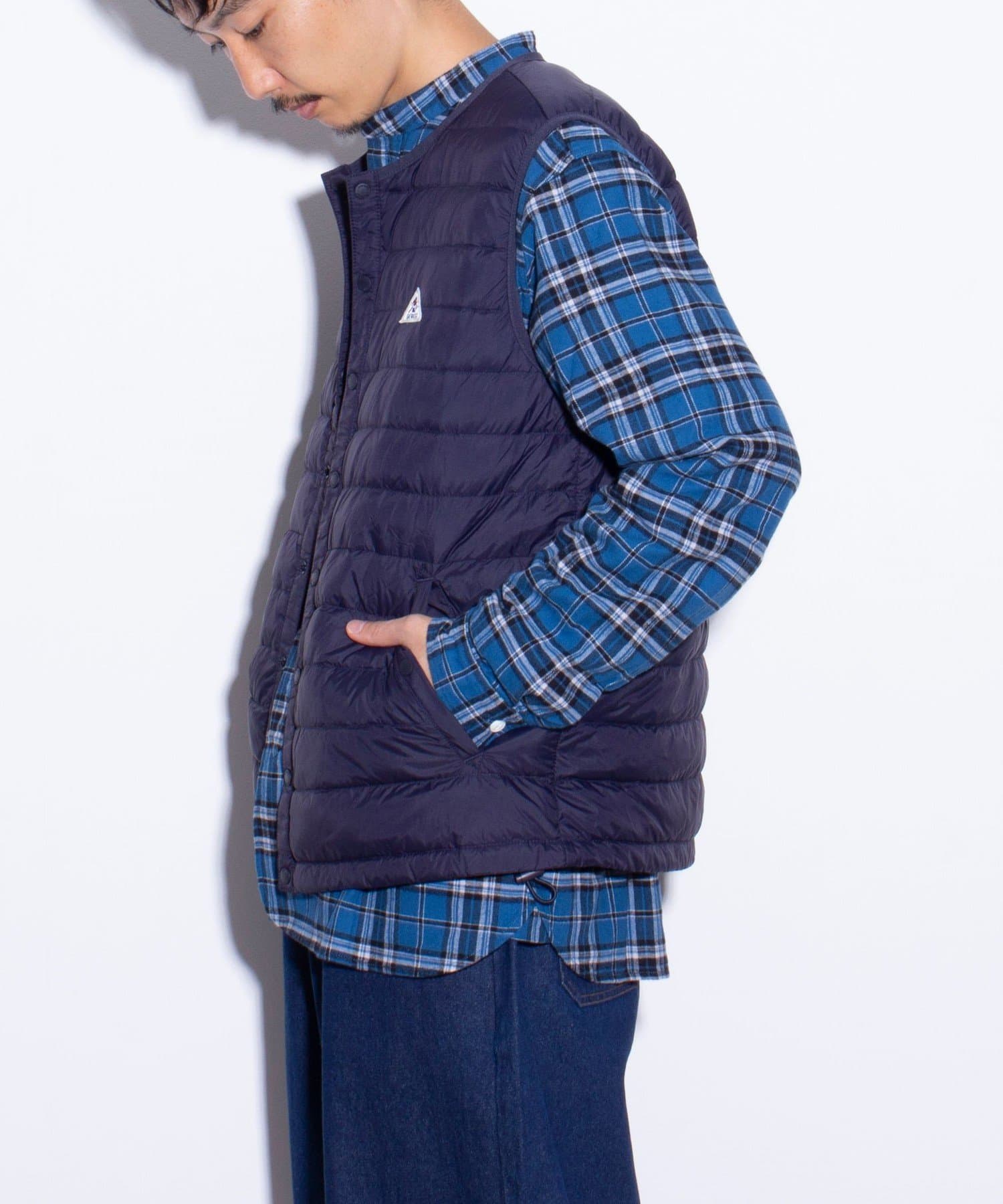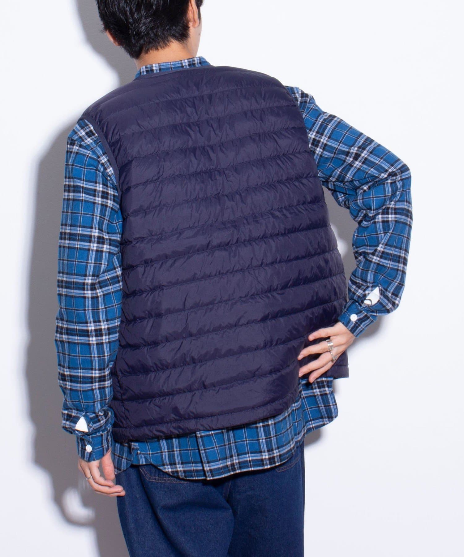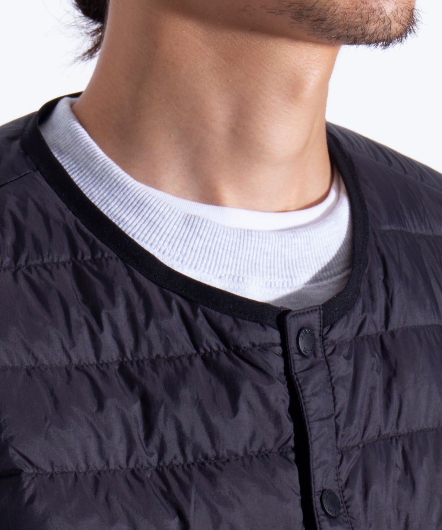 シルエットはコンパクトで、ライトアウターとして一枚での着用はもちろん、冬場用のインナーダウンとしてもご着用いただけます。