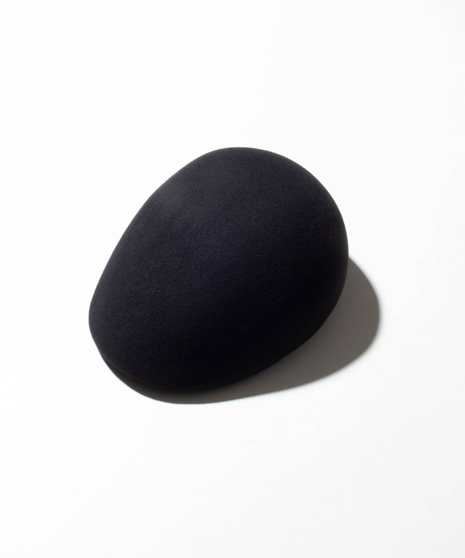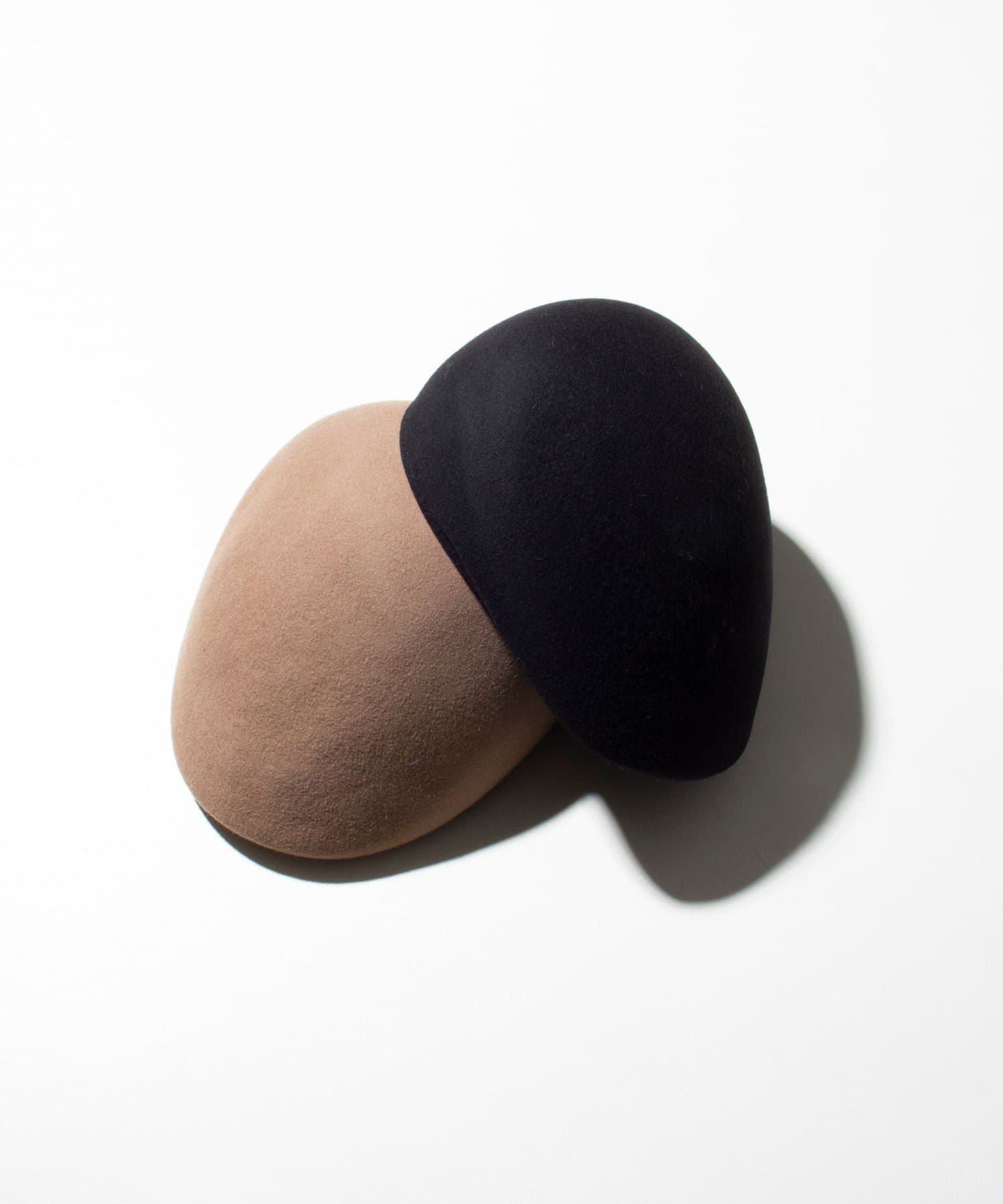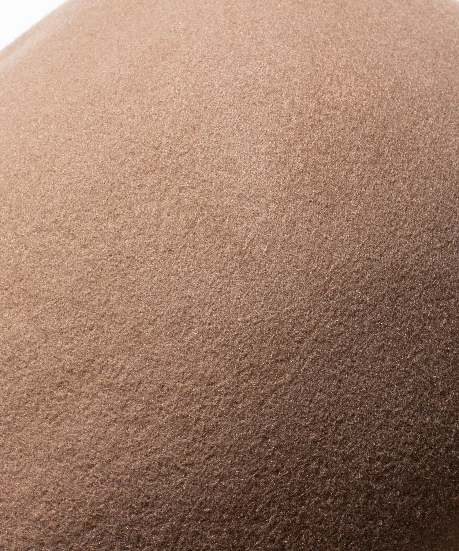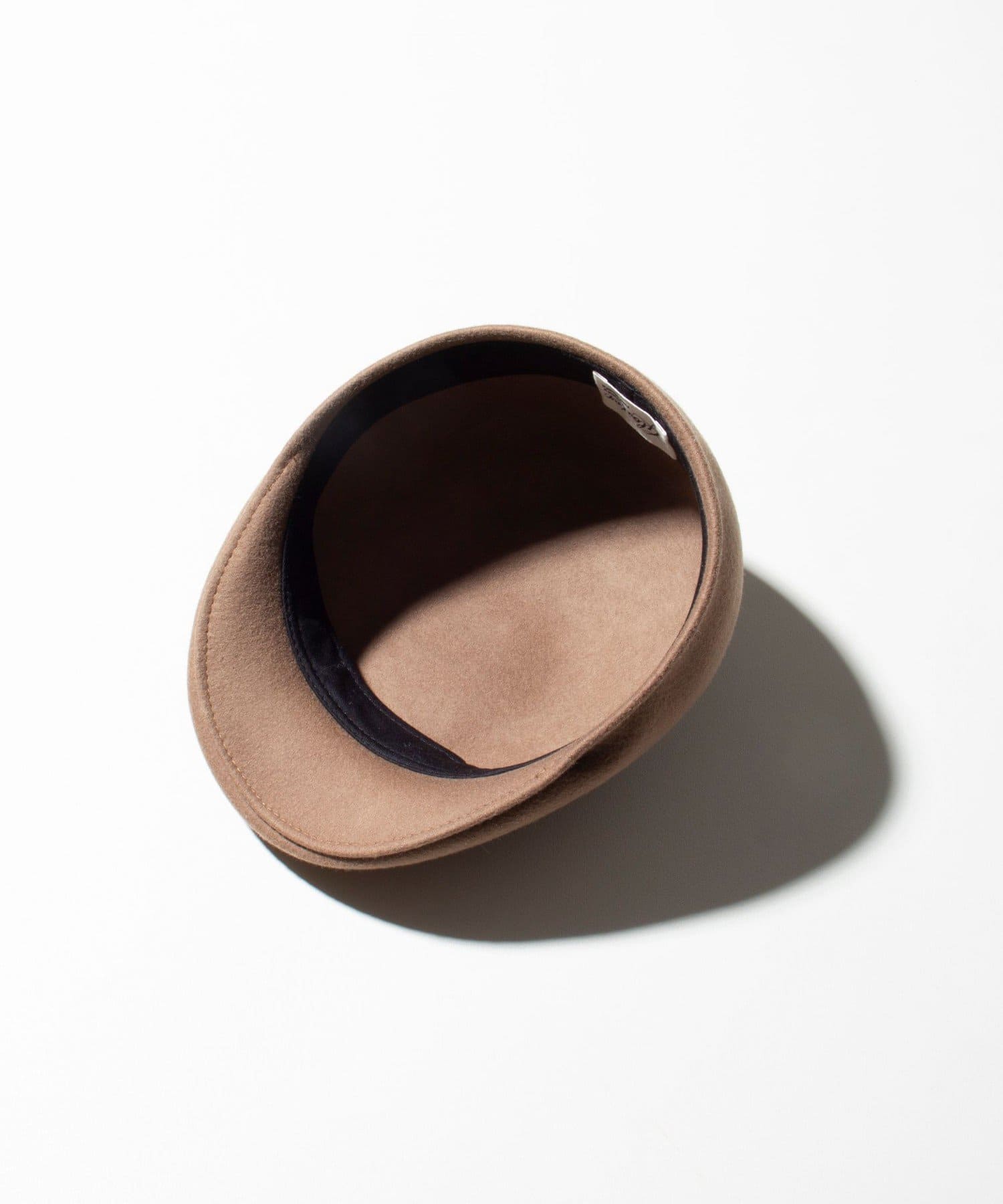 ハンチングの特徴である楕円形の天面は、より円形に近いシルエットに変更し、ツバはカーブの少ないフラットなシルエットを採用。