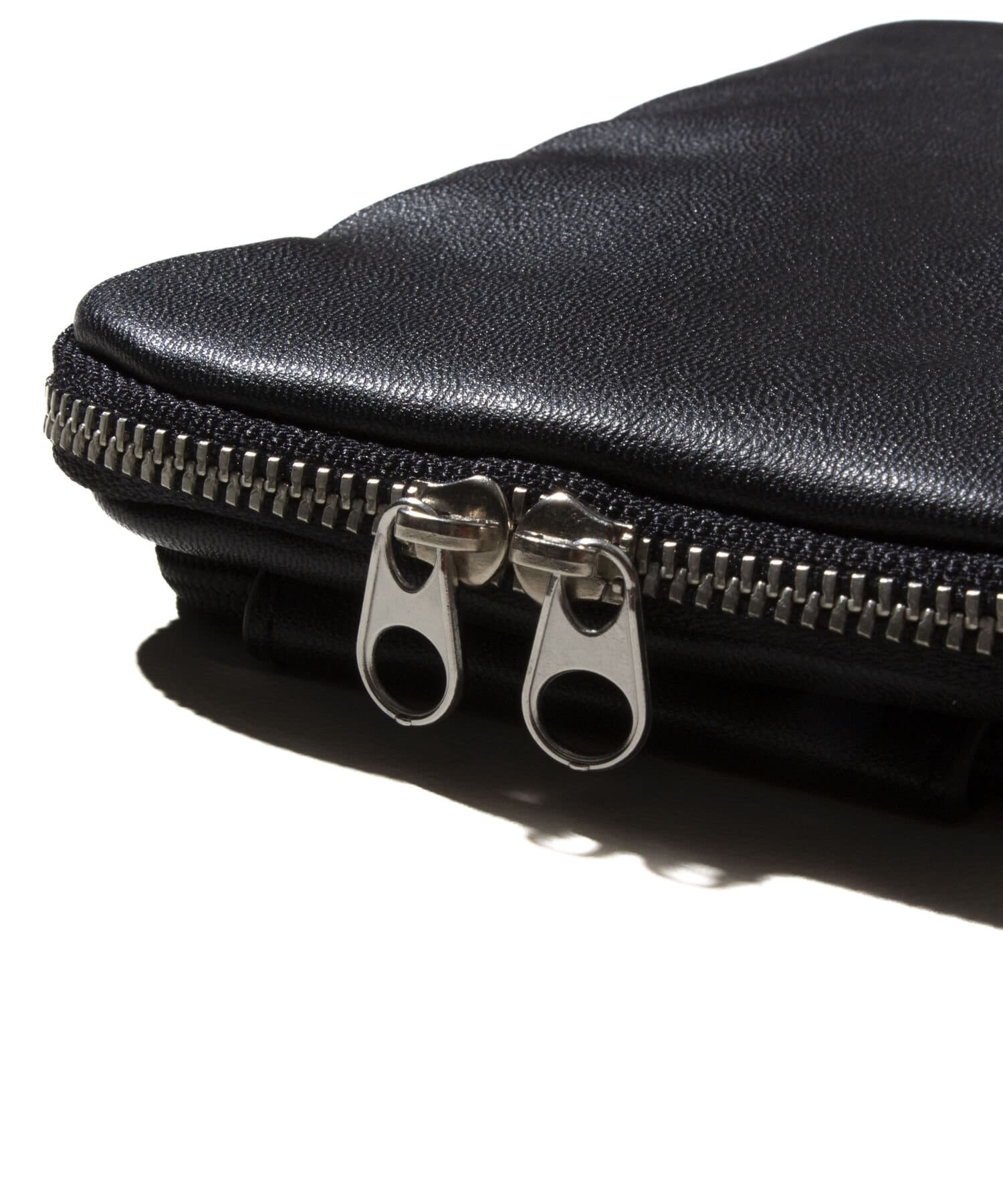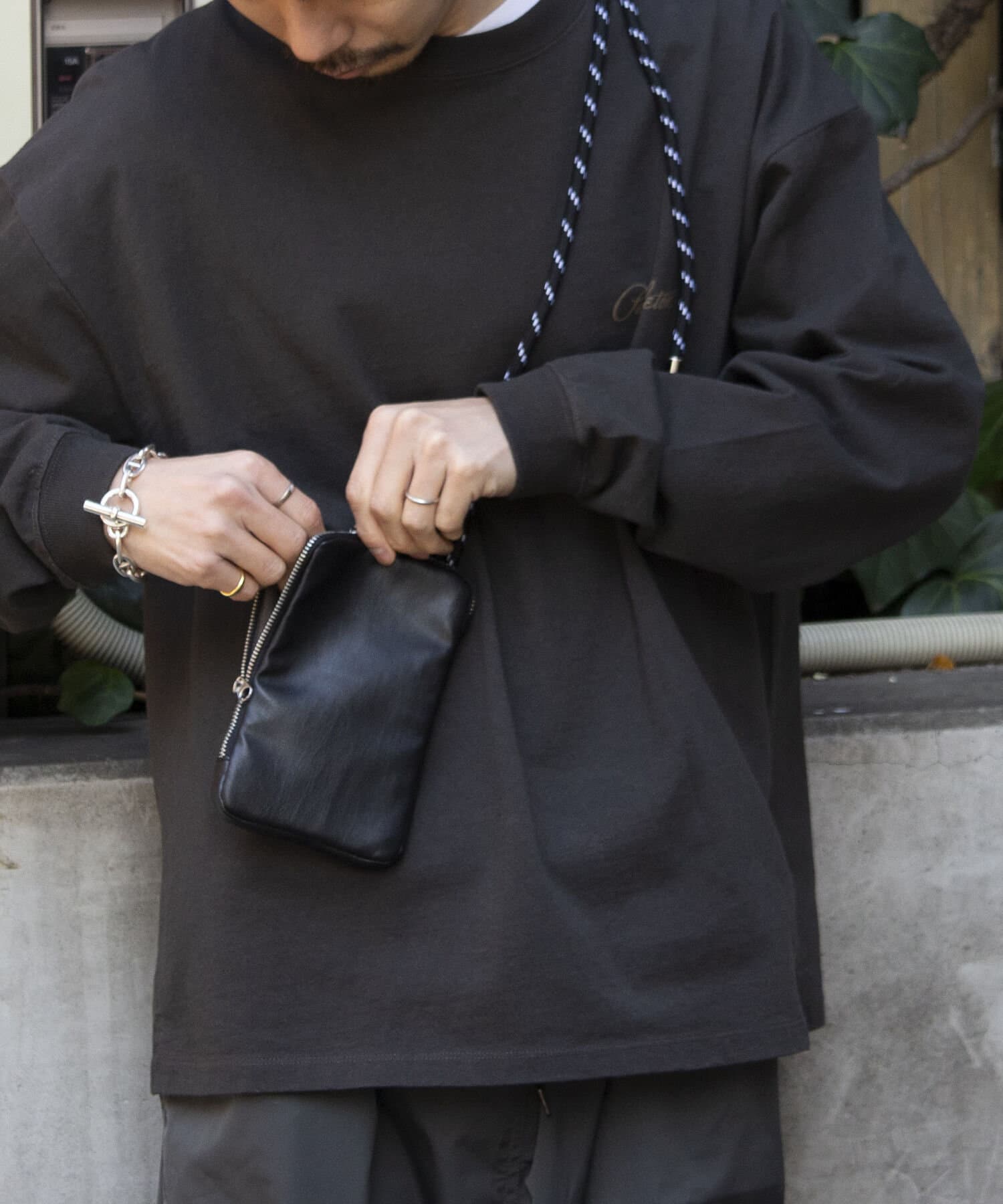 シンプルな見た目ながら、ファスナーを開けると3段のカード入れポケットとジップ付きコインケースが付属している機能性抜群のアイテム◎