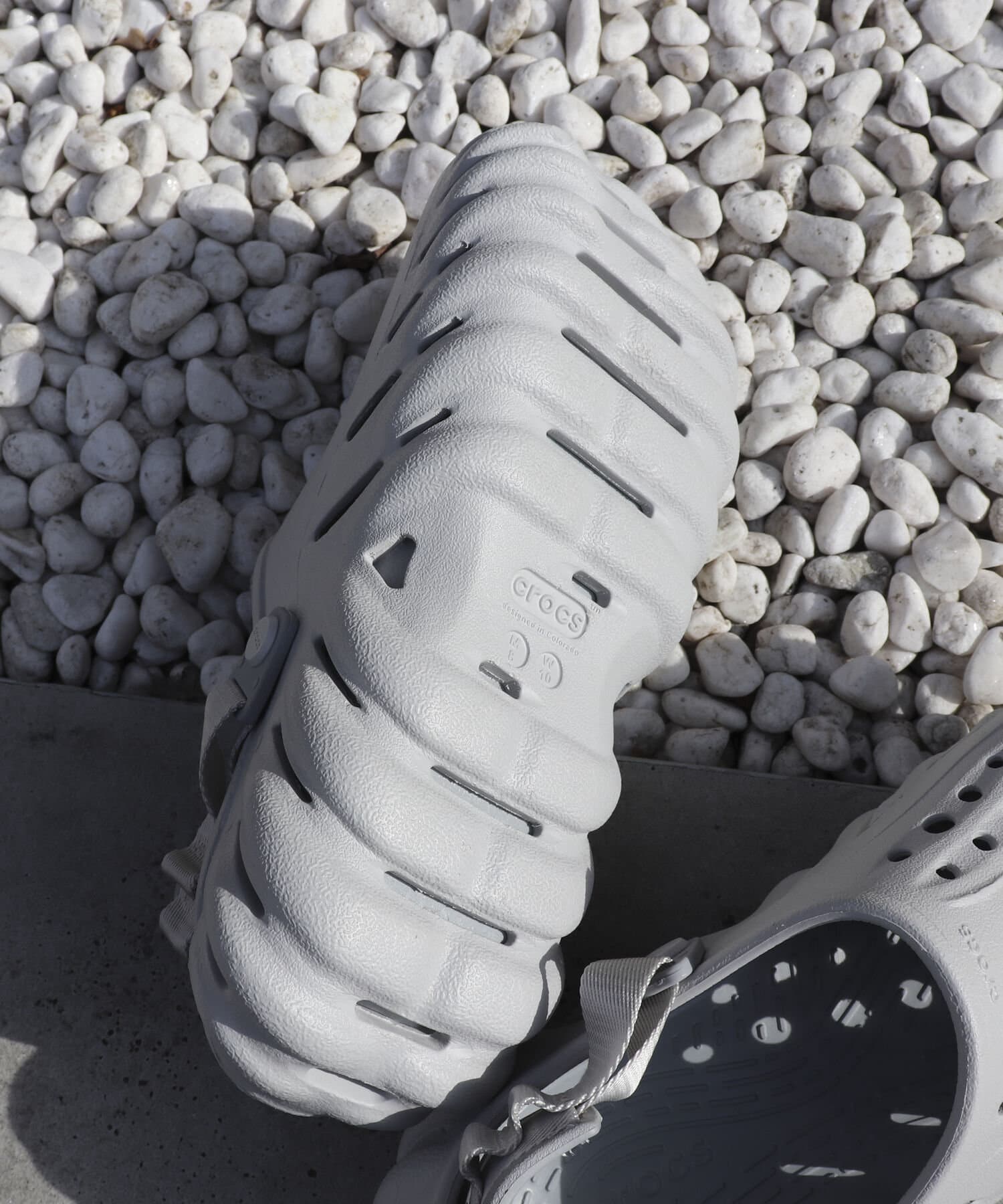 クロックスは2002年、独自の性質を持つ革命的な素材「クロスライト」技術を取り入れることで、陸でも水中でも履ける靴を実現。