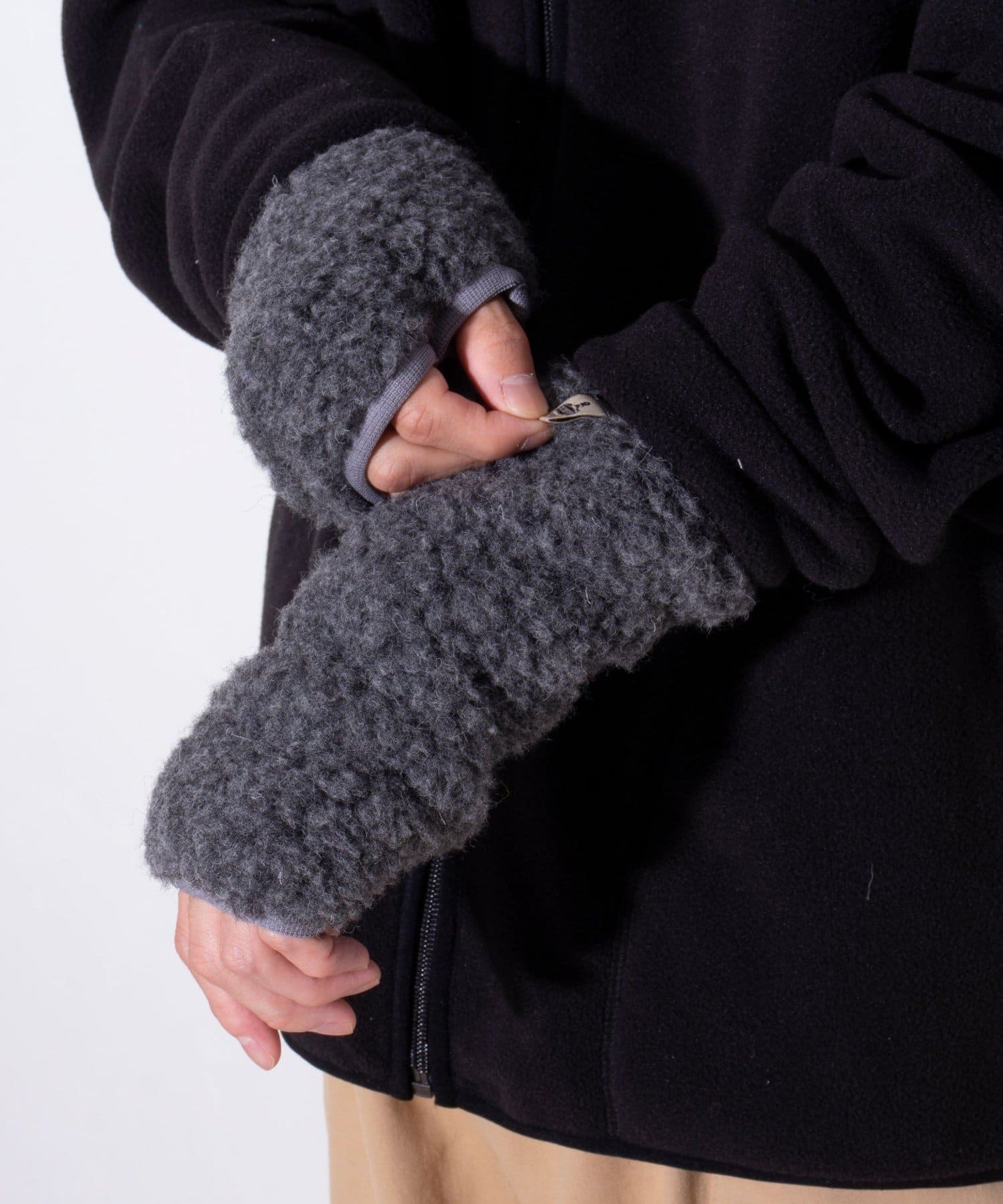 ボアの質感が暖かみのあるハンドウォーマー。