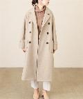 生地をたっぷりと贅沢に使用したオーバーシルエットが魅力のコート。杢調の生地を使用し、ふんわりと暖かみにある風合いに仕上げました。裏地がないので気軽に羽織れて、寒い冬には厚手のニットの上からも羽織りやすい1枚です。幅広の袖に袖口の折り返しデザインがちょっとしたアクセントに。シンプルなので、どんなスタイリングにもマッチします。