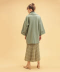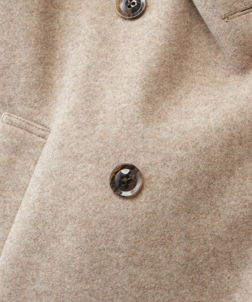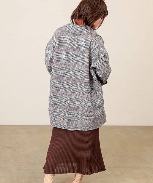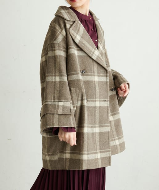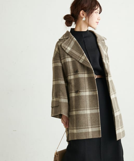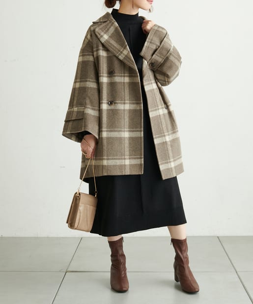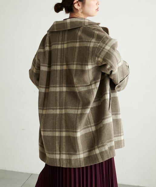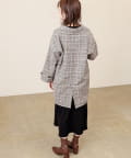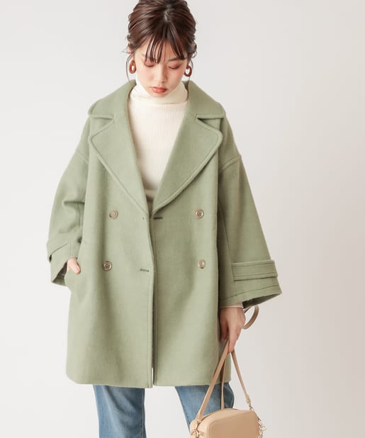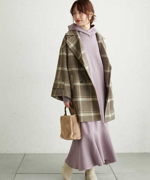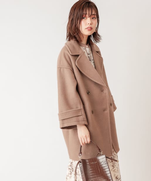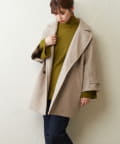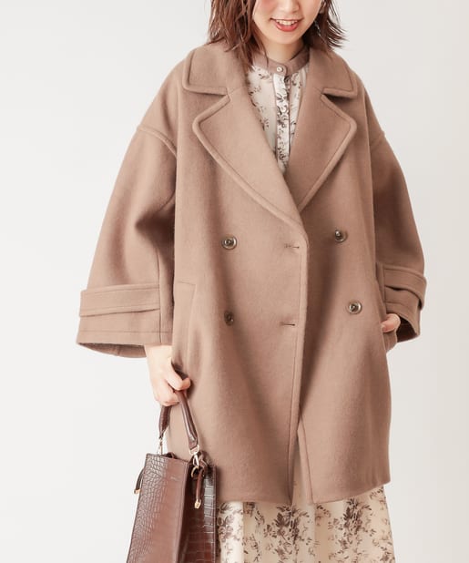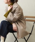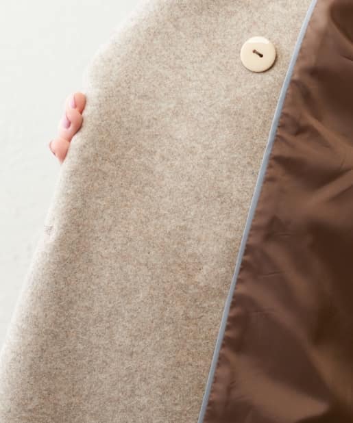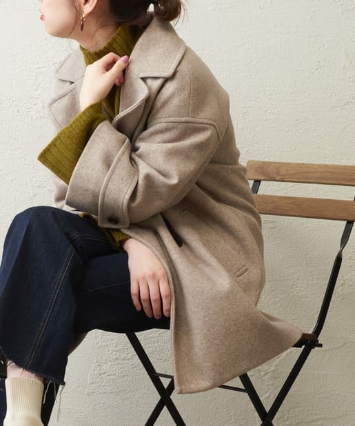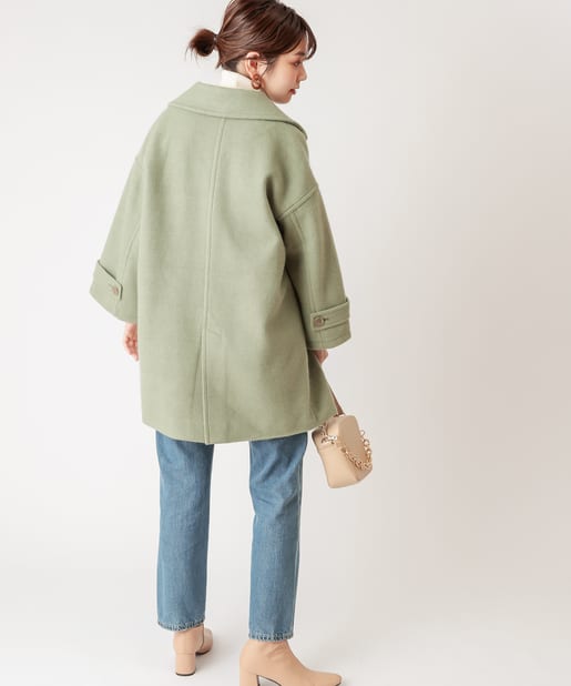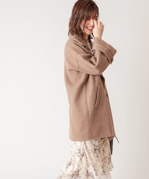 ころんとしたシルエットに大きめの衿が愛らしいコート。お尻が隠れるミドル丈はワンピースやパンツとも相性が良く、どんなスタイルにもマッチします。幅広の袖口や大きくドロップしたショルダーラインが羽織るだけで垢抜けた印象に。また、オーバーサイズなのでしっかりめのニットにも羽織りやすく、裏地付きで冬までお召しいただけます。