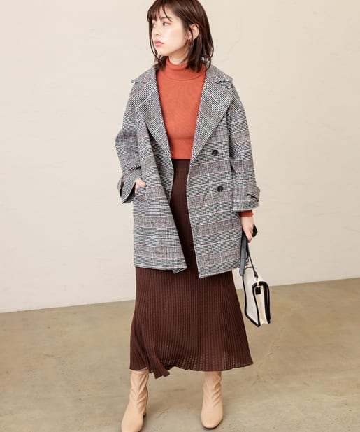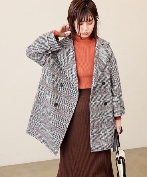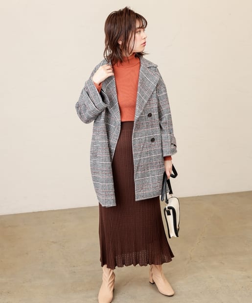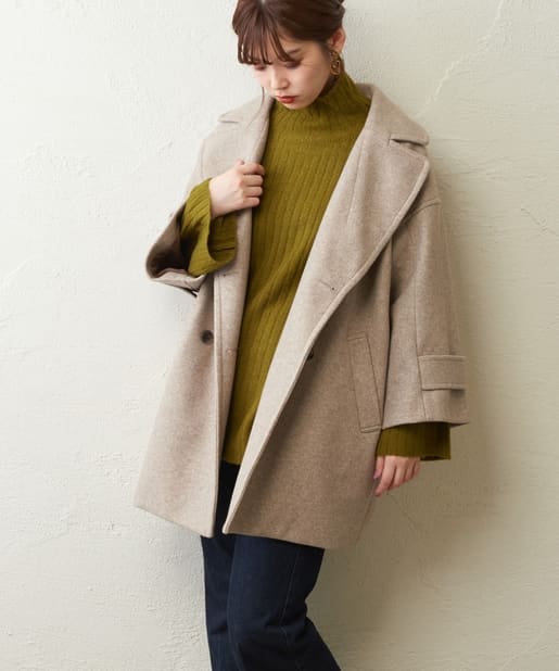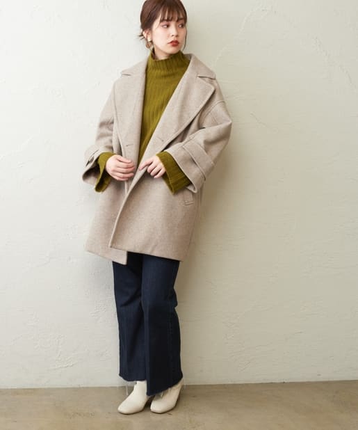 大きな衿がポイントのミドル丈コート