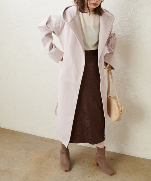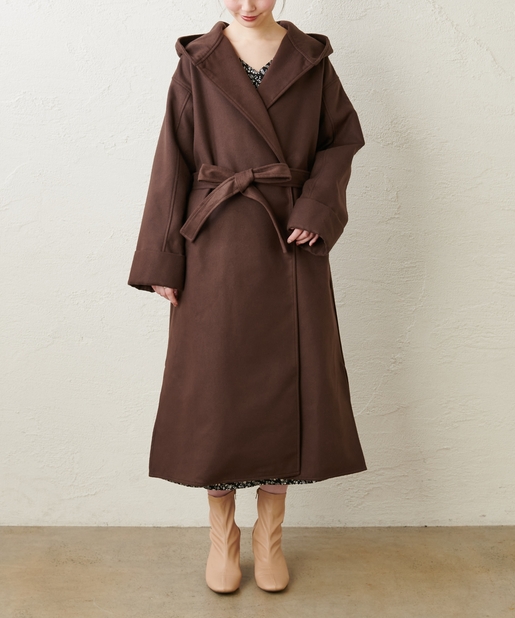 • natural couture(ナチュラルクチュール) ウエストベルト付きフードガウンコート