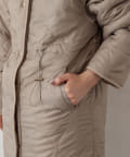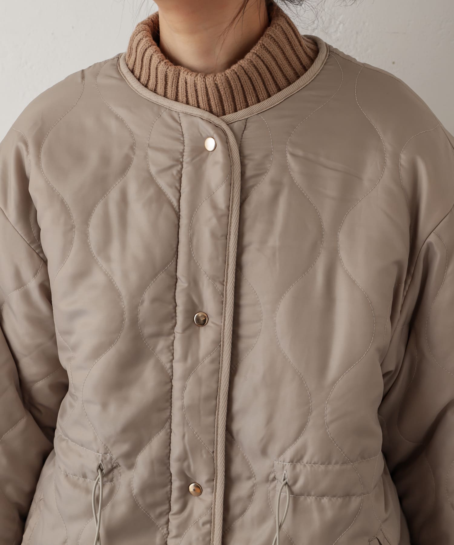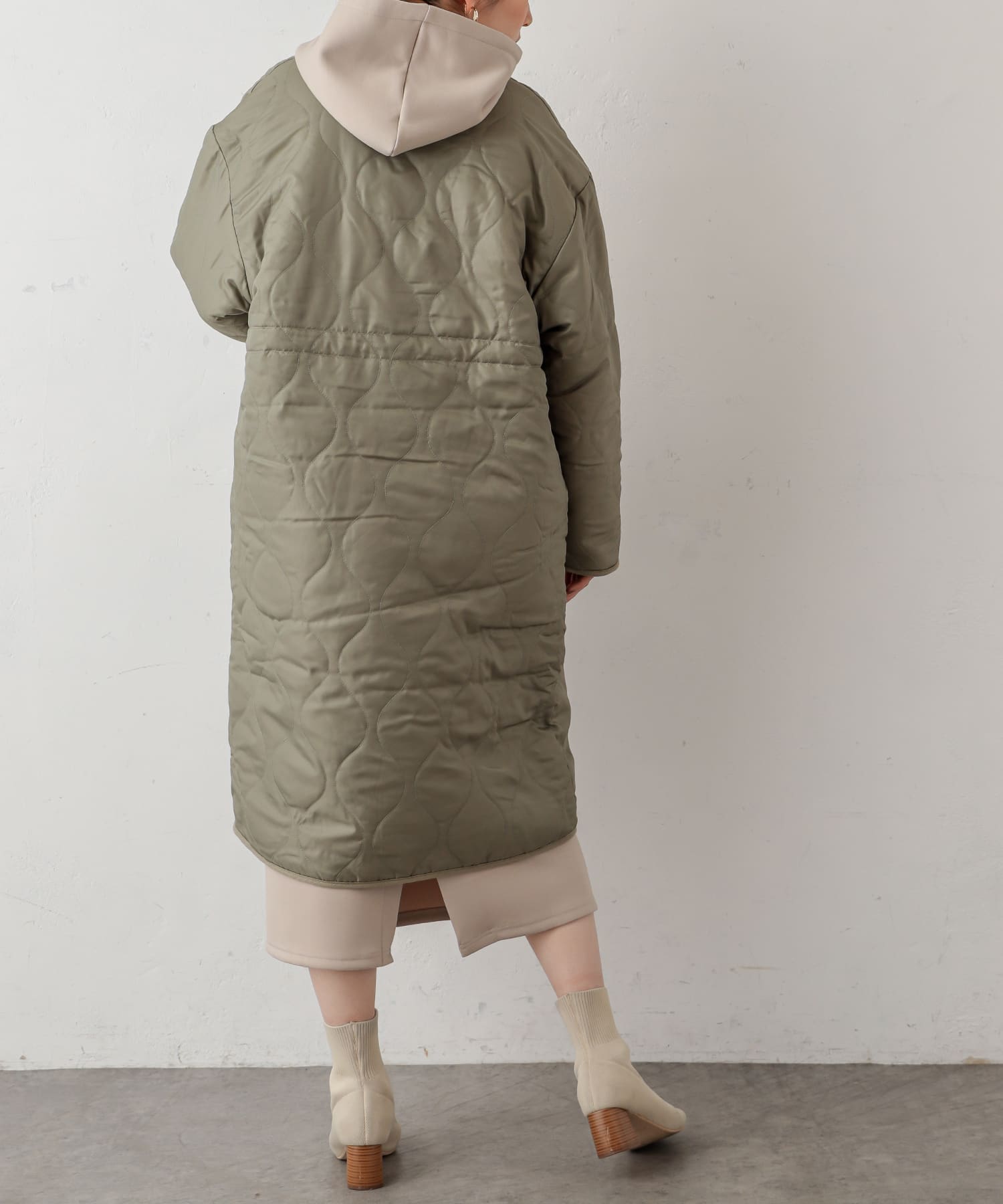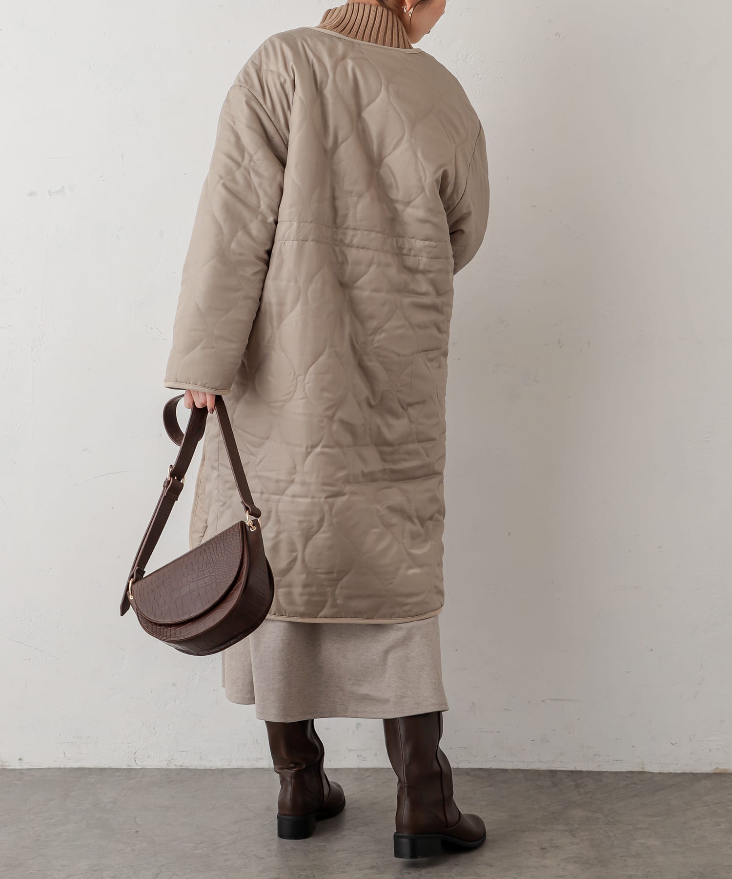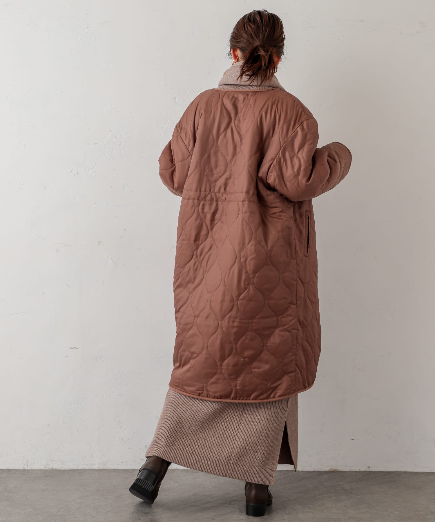 カジュアルな印象になりやすいキルト地のコートを、ナチュラルクチュールらしい大人上品な印象に