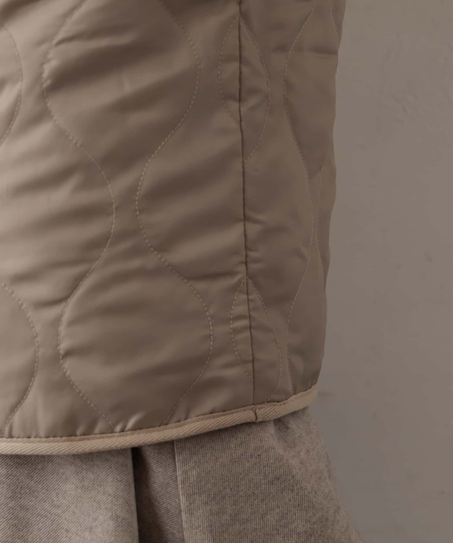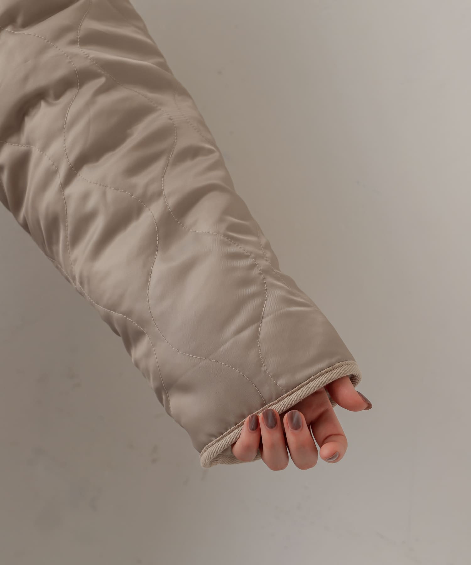 キルト部分は程よい光沢感のある生地を採用し、綺麗めなワンピースやスタイリングにも馴染みやすい仕様