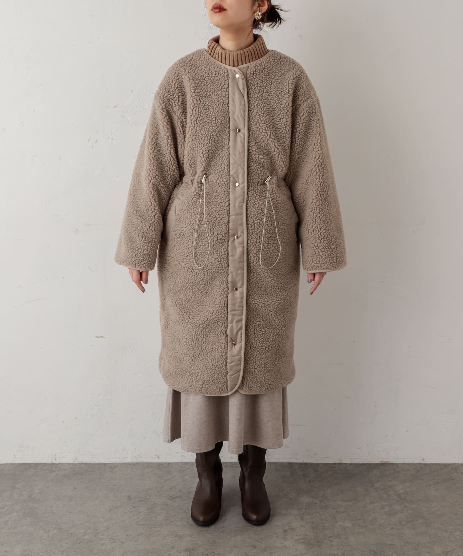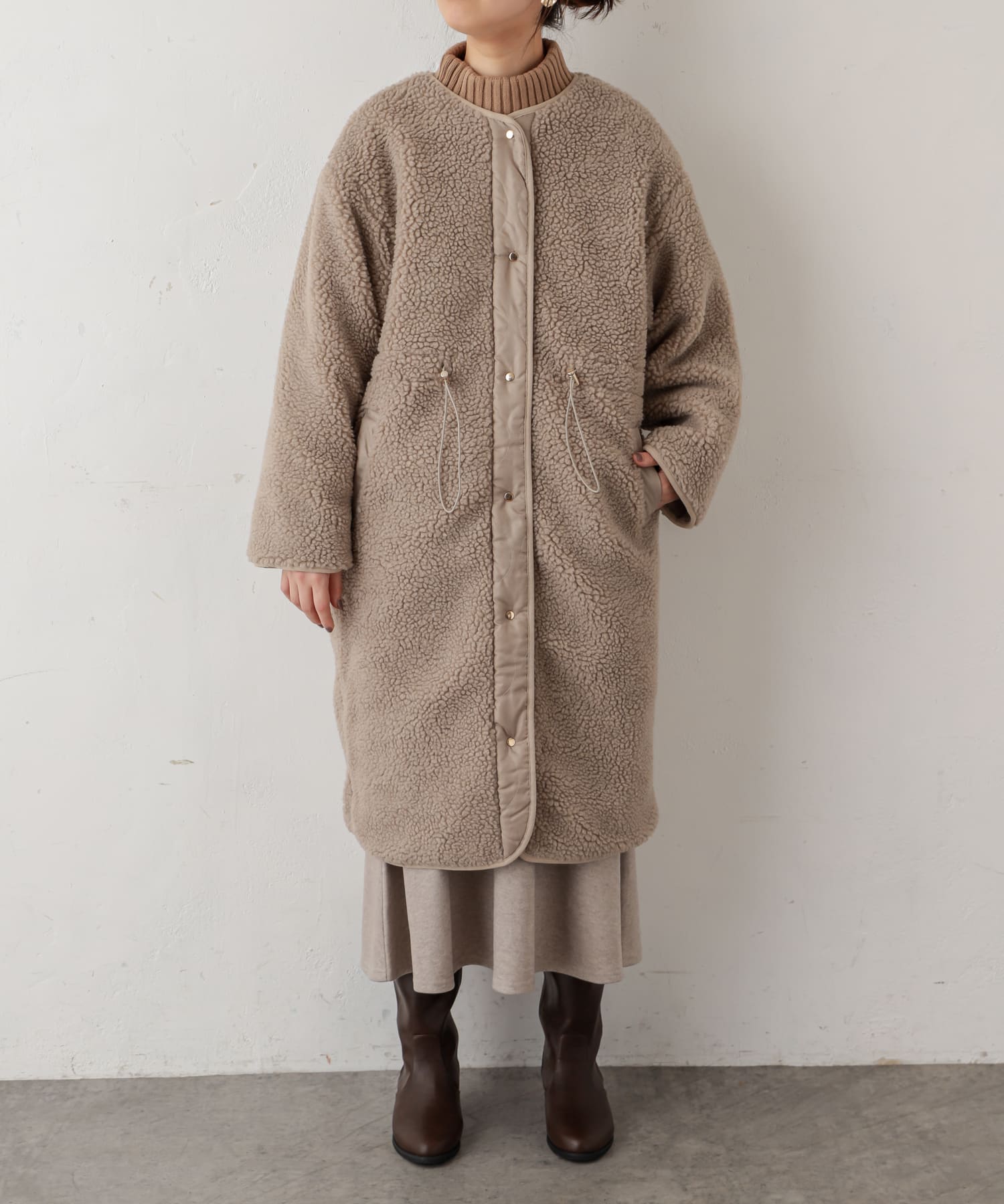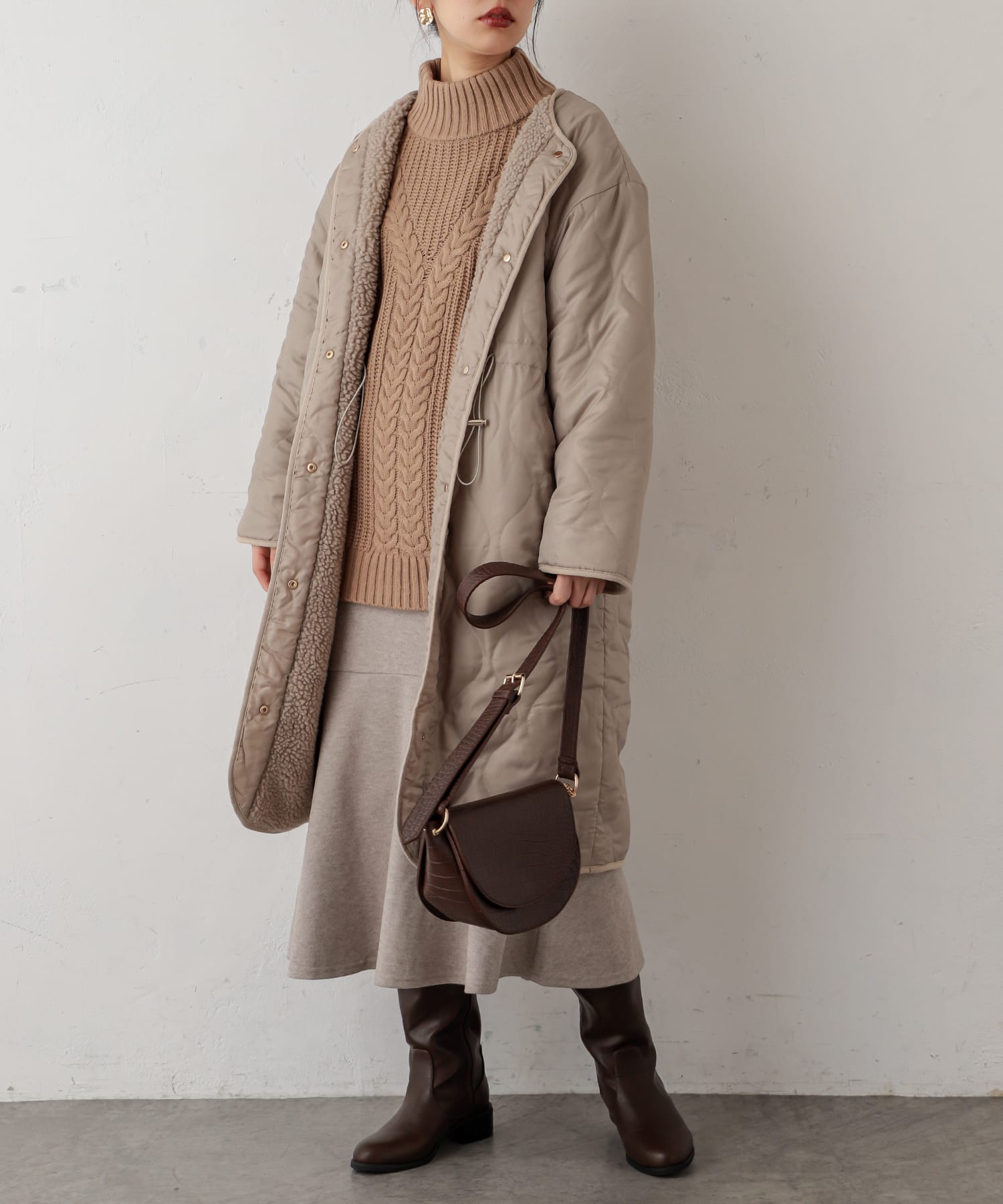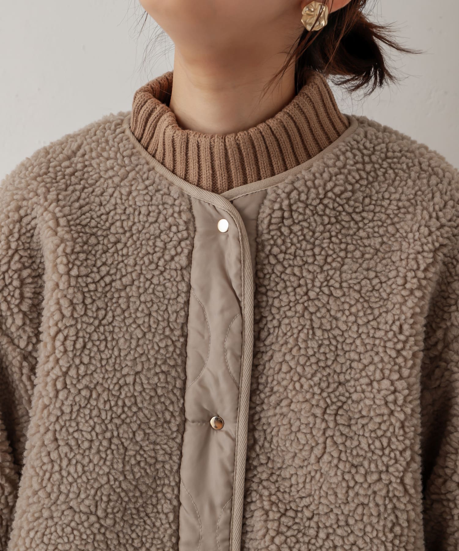 ボア部分もあたたかみのある落ち着いた色合いを選び、キルト地とのバランスにもこだわった1着。