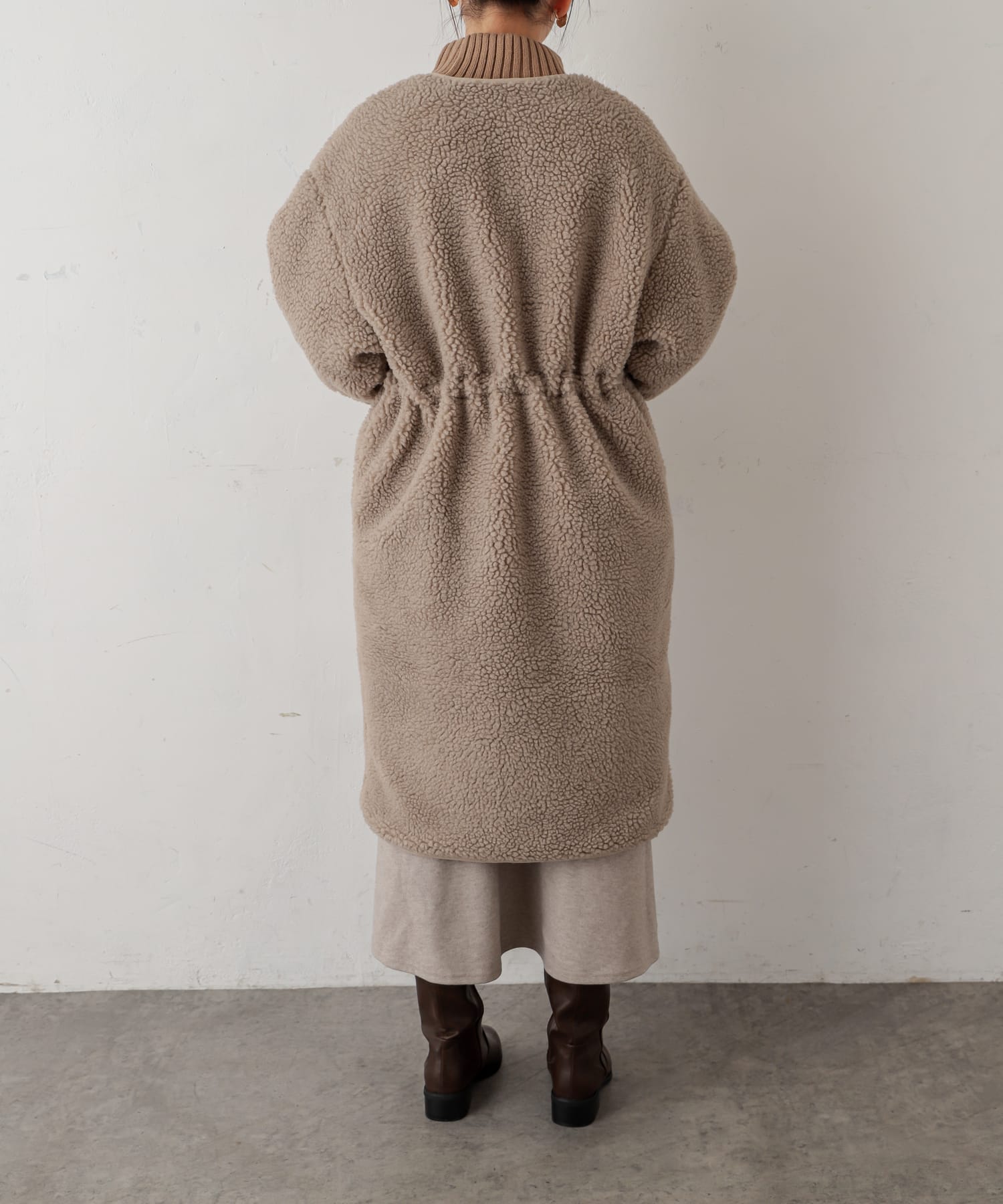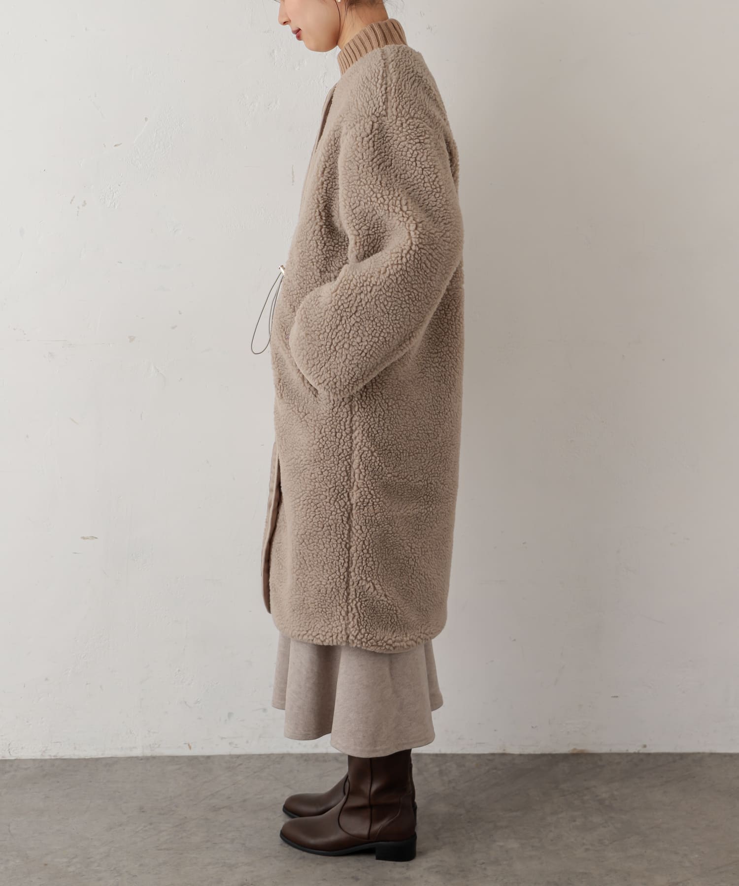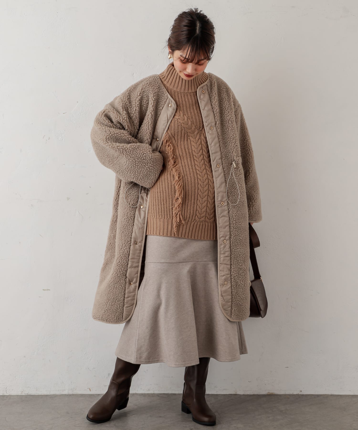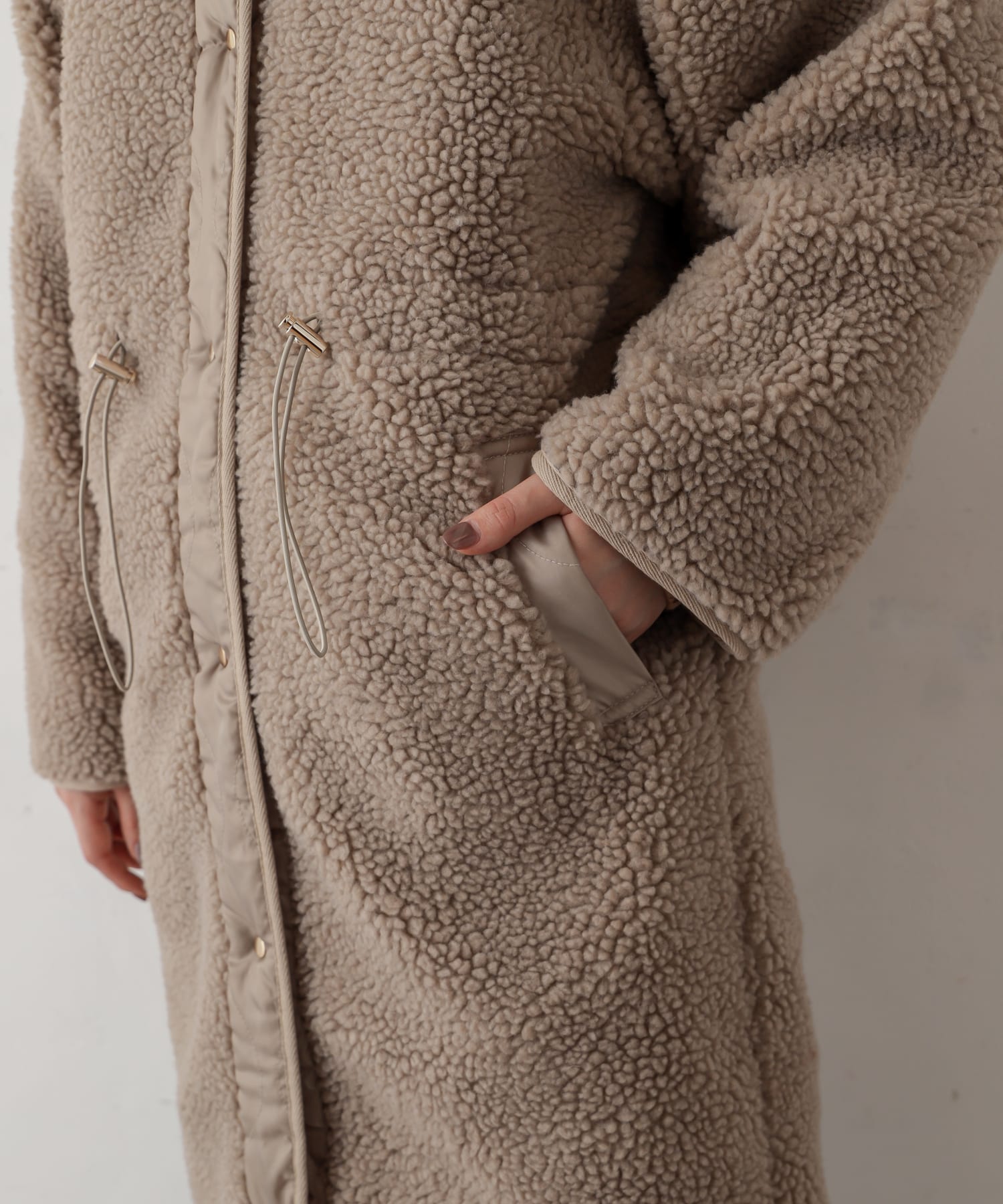 ボア部分もあたたかみのある落ち着いた色合いを選び、キルト地とのバランスにもこだわった1着。