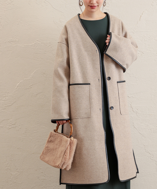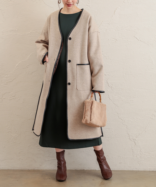 品番 321200190 素材 本体:ポリエステル80% レーヨン10% アクリル10% パイピング部分:合成皮革 インナー:ポリエステル100% パイピング部分:ポリエステル100% 原産国 中国 サイズ FREE カテゴリ ジャケット/アウター > その他コート タイプ レディース ギフト ラッピング 可 取り扱い アイテムサイズ