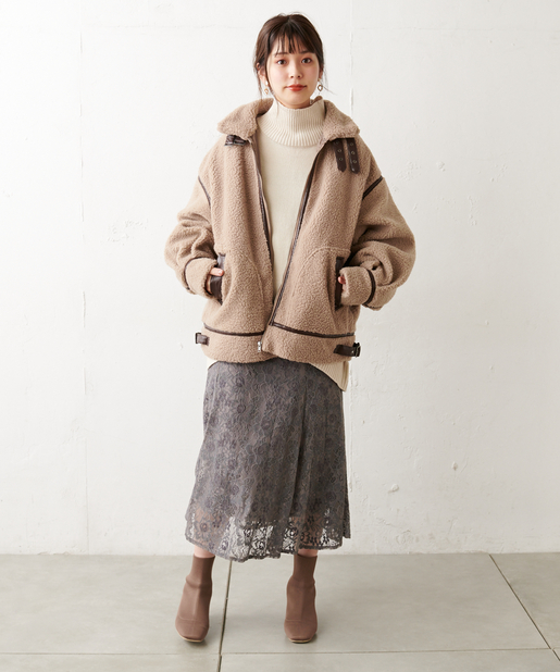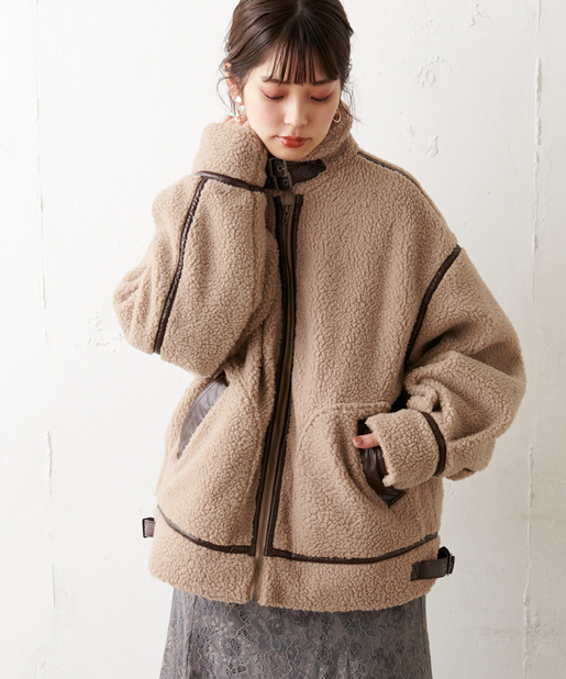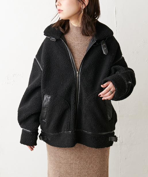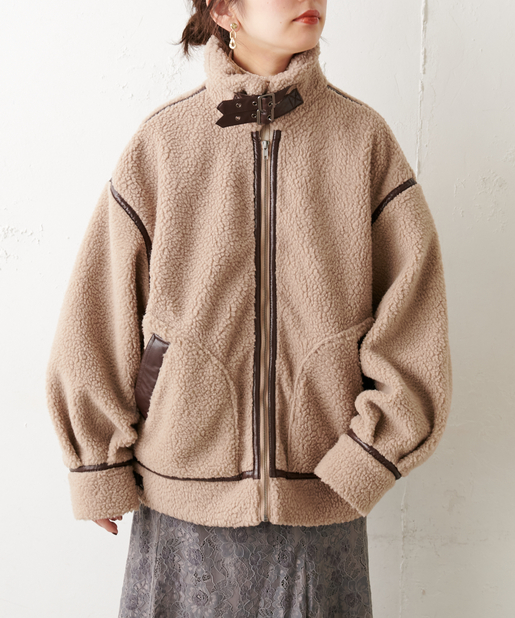 フェイクレザーのパイピングがポイントになった、今季注目のボアフライトジャケットの登場です。