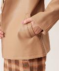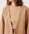 この秋のコーデにトレンド要素を足してくれる、注目のフェイクレザージャケットが登場です。ナチュラルクチュールが得意とするワンピースアイテムや、今季トレンドのシアーニットと合わせれば、大人レディなトレンドスタイルが完成します。ハードすぎず女性らしいアイテムともマッチしやすいノーカラーのデザインに仕上げました。カジュアル、きれいめ、お好きなスタイルに合わせ表情を変えてくれる、ベージュ、ブラックの2色展開でご用意しました。今季1枚は持っておきたいマストアイテムです。