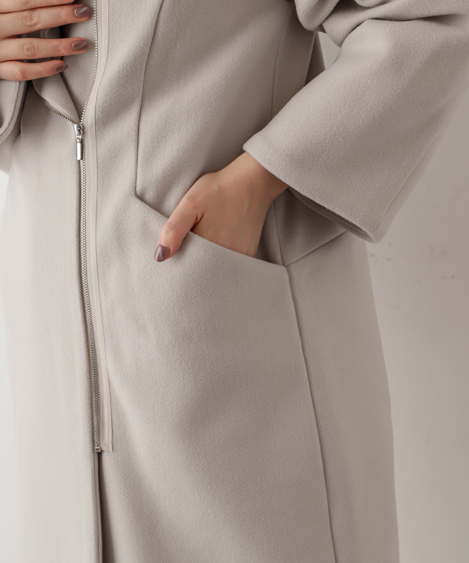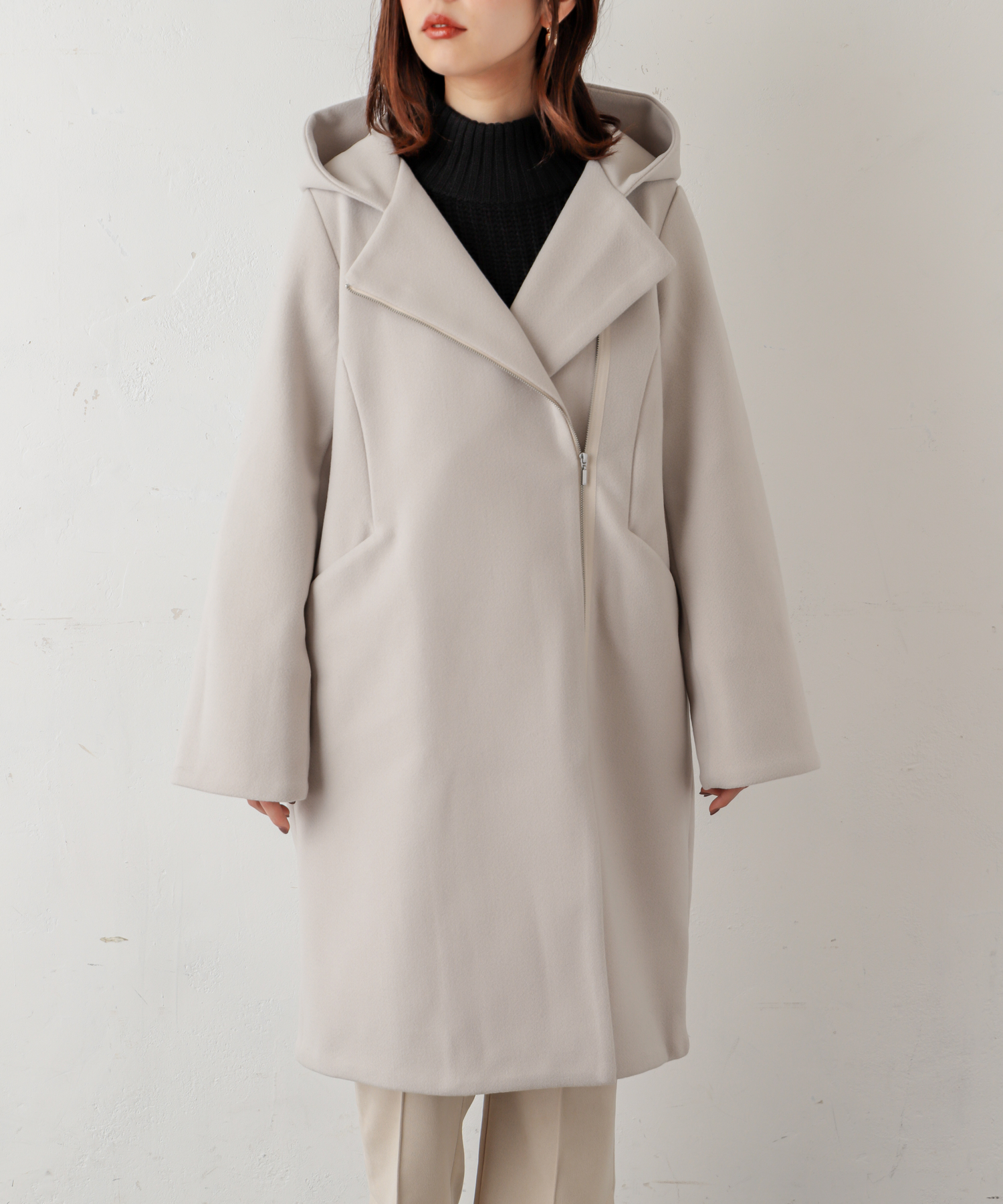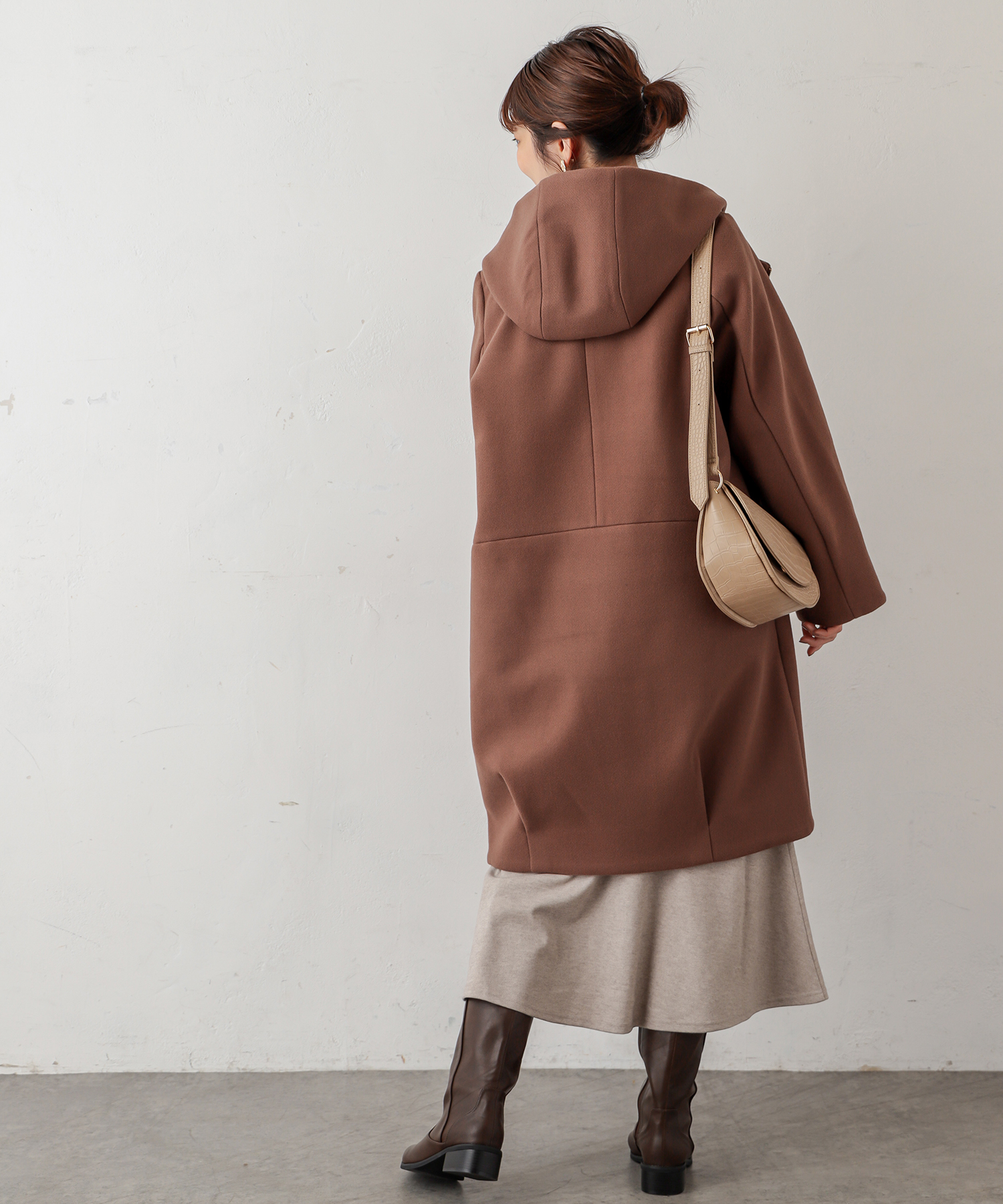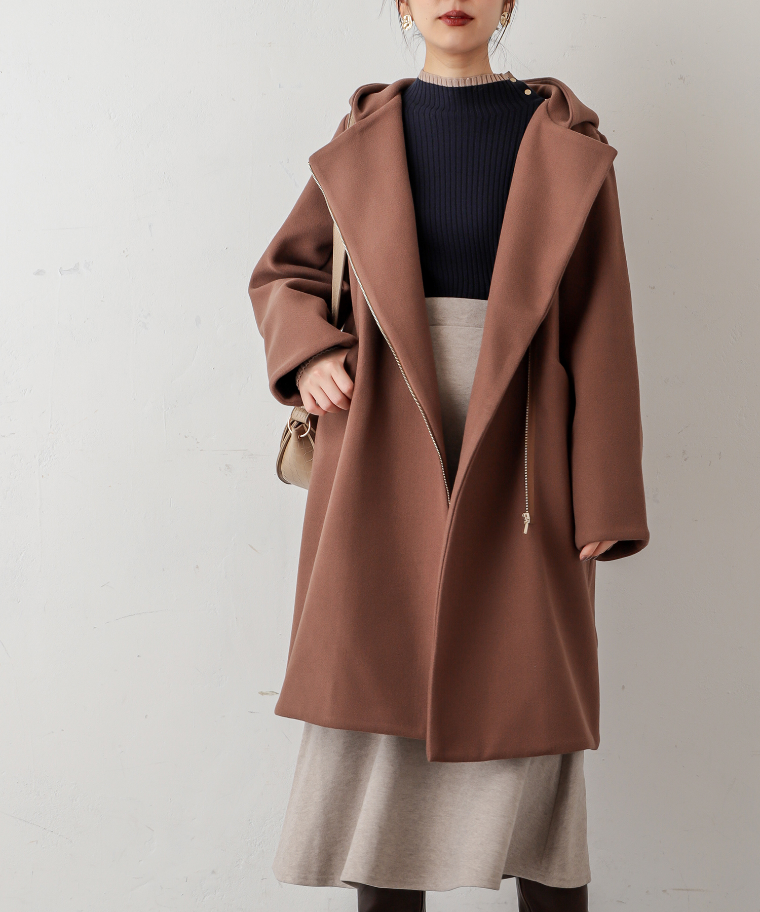 フード部分は程よく立ち上がるので、小顔効果と顔周りが華やぐ印象。