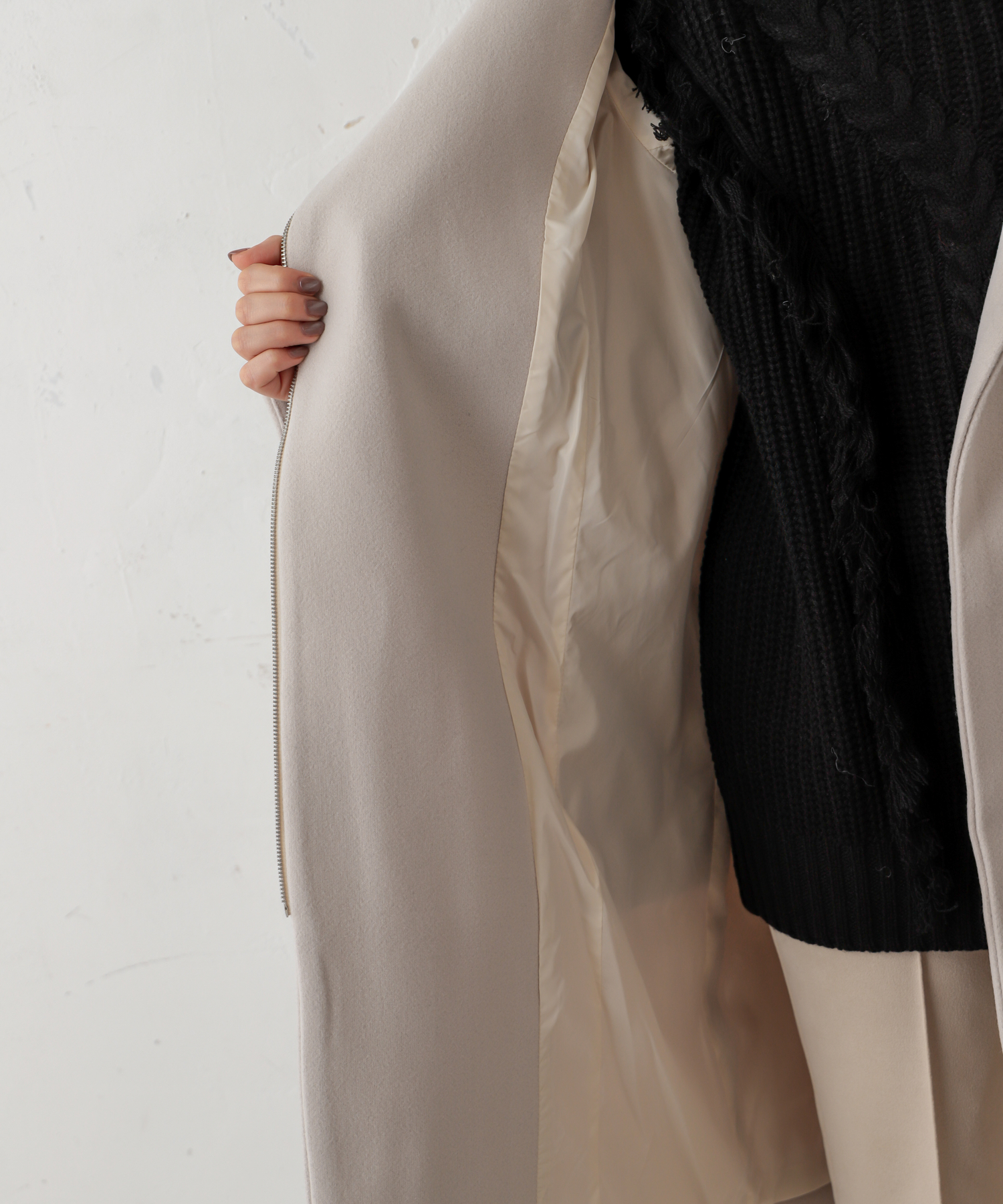 フェイクウールコートでは、他にはないデザインなのでお洒落見え間違いなしです。