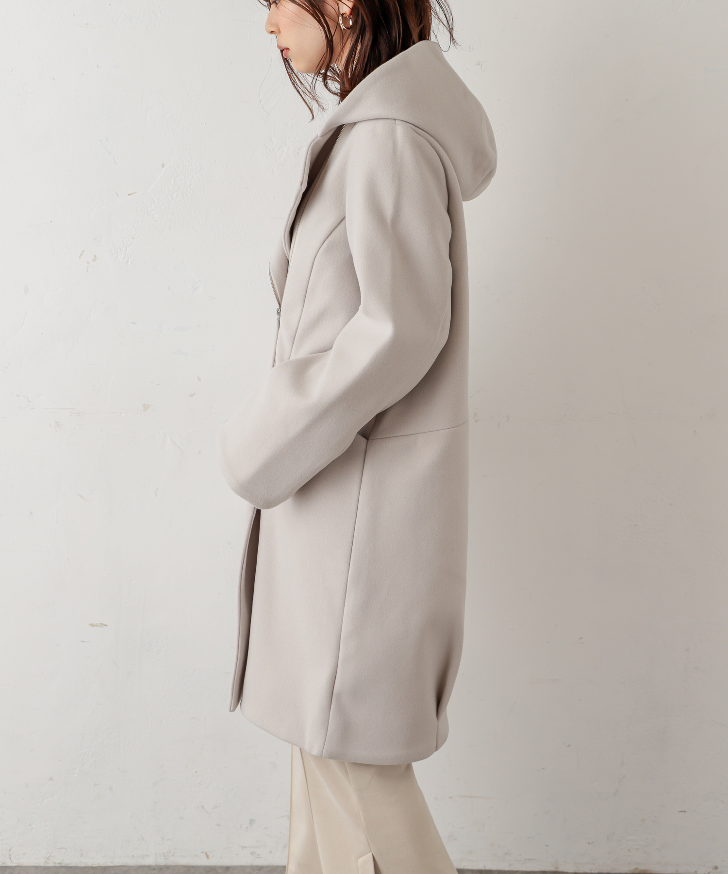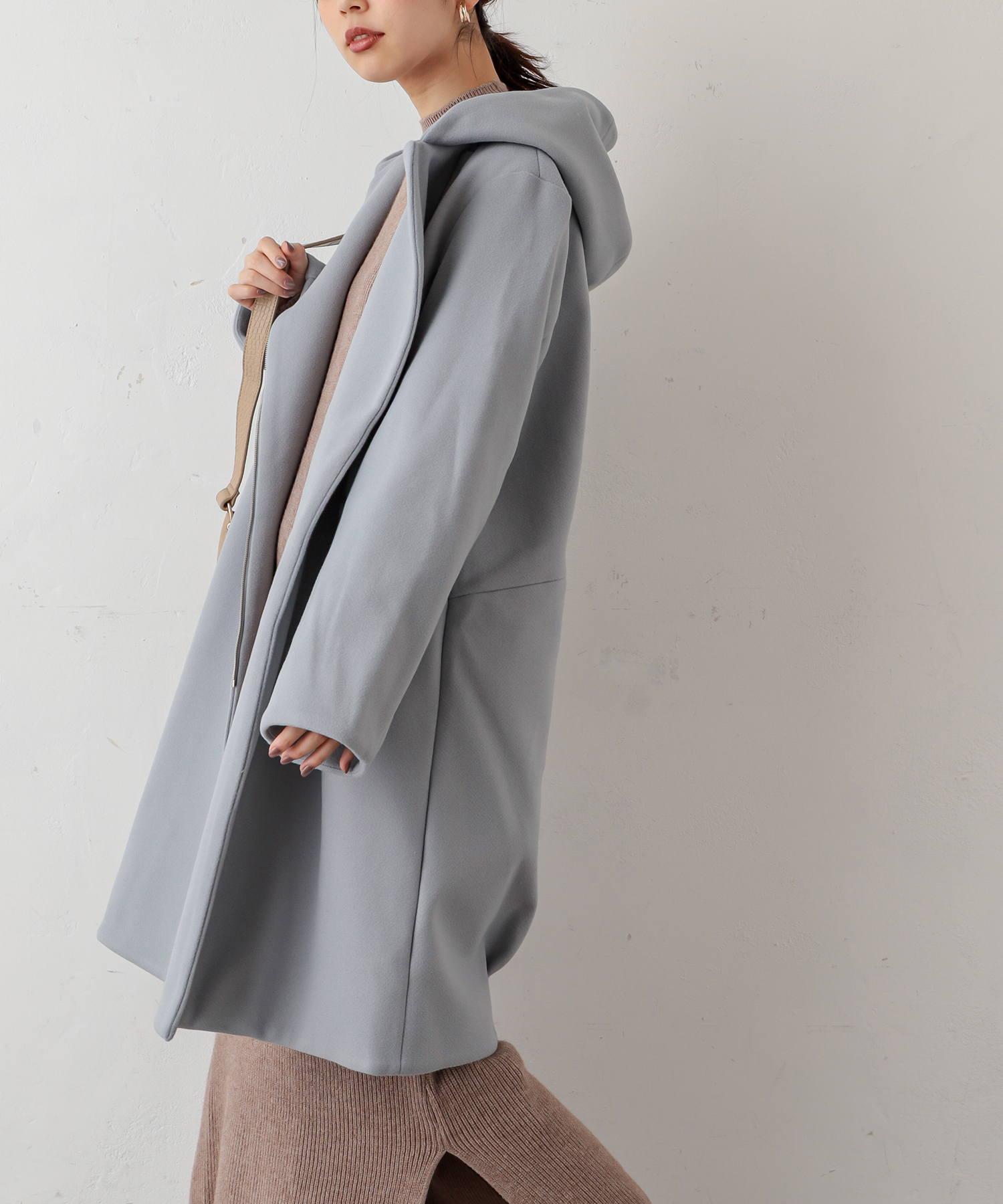 柔らかな素材感も相まって、フード=カジュアルだけにさせないデザインです。